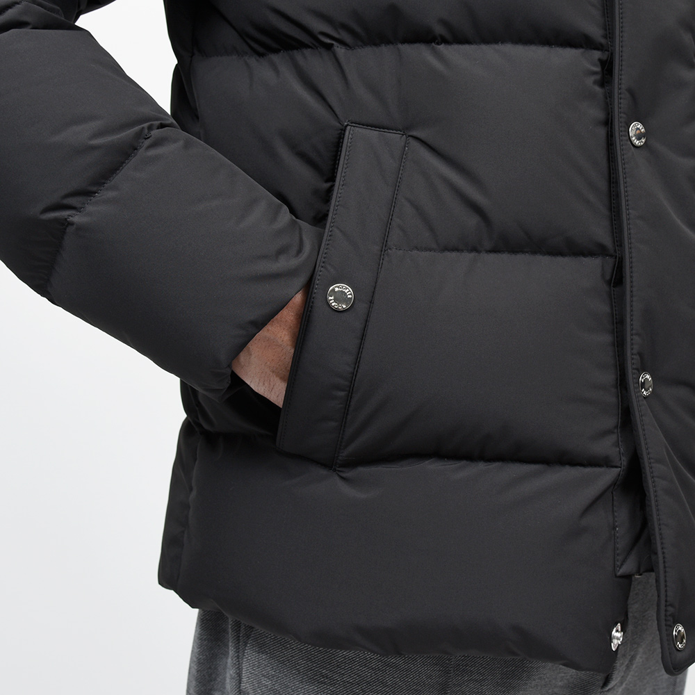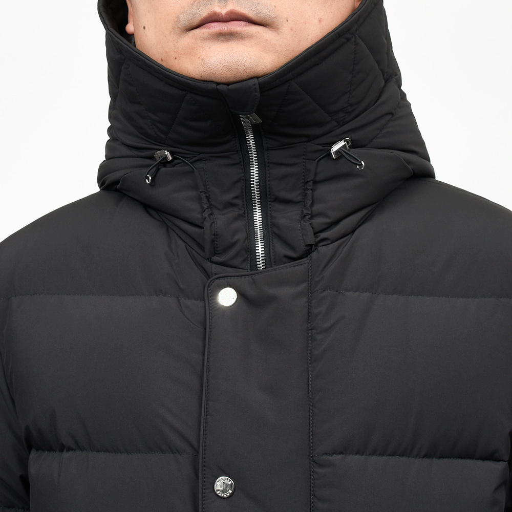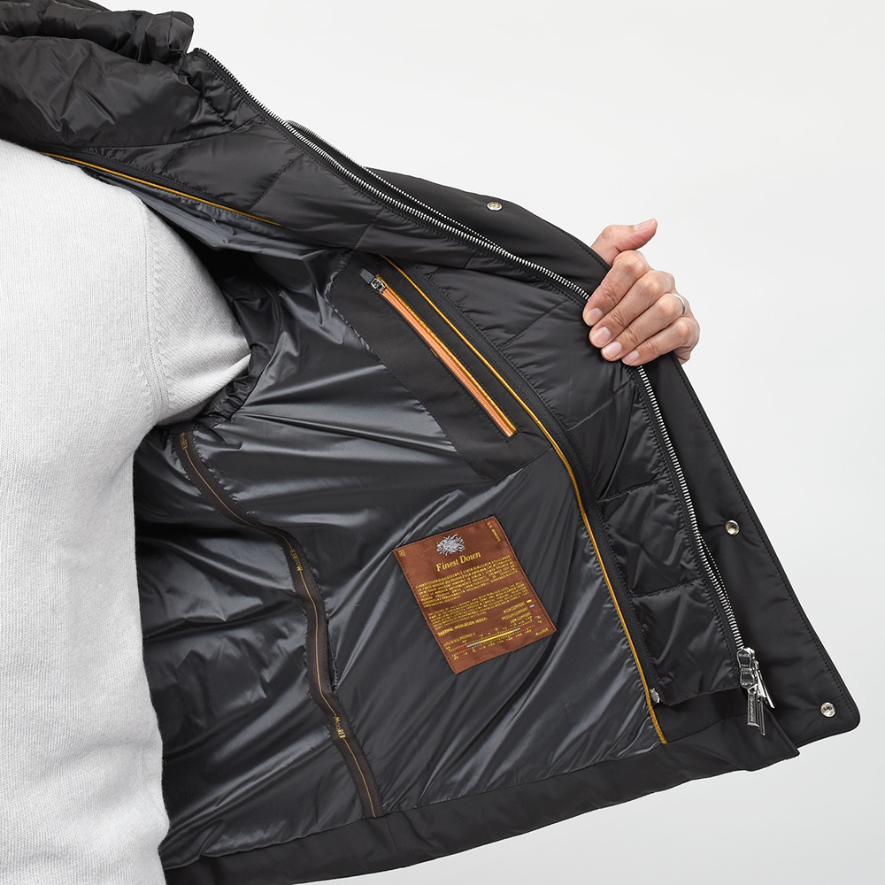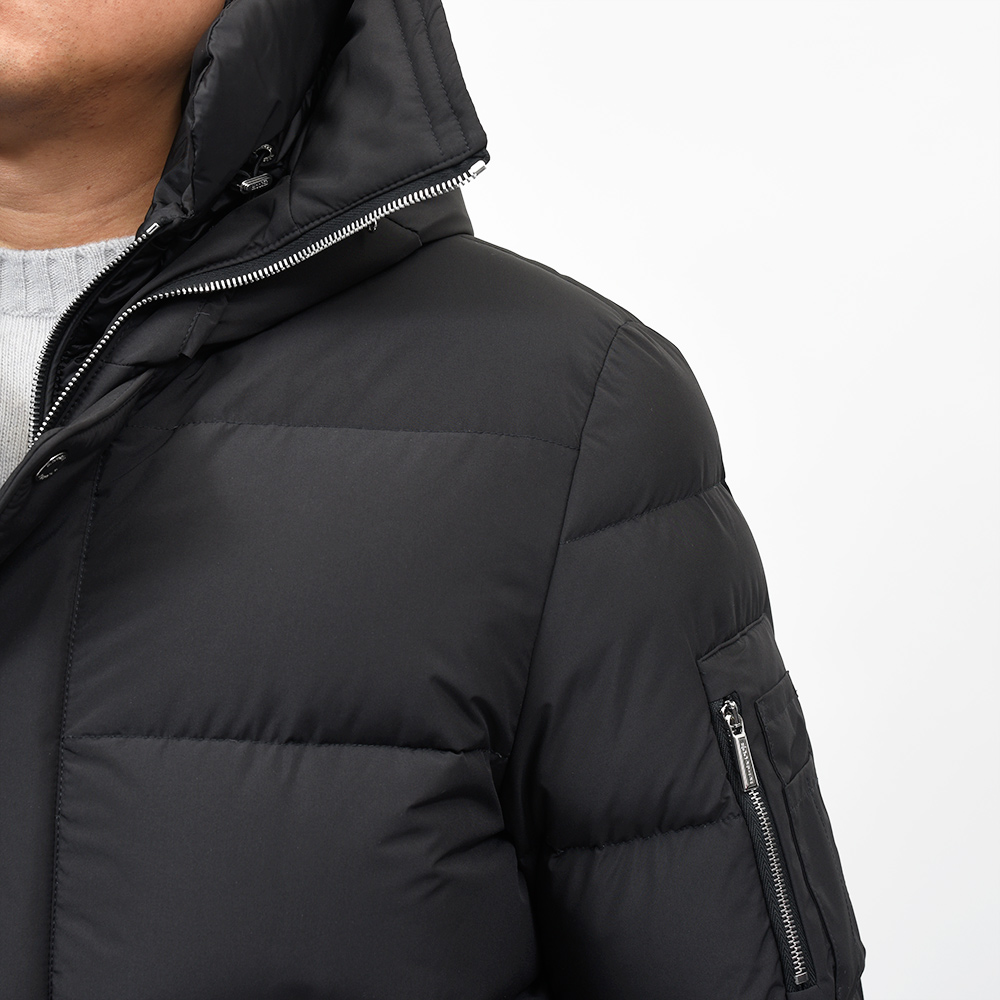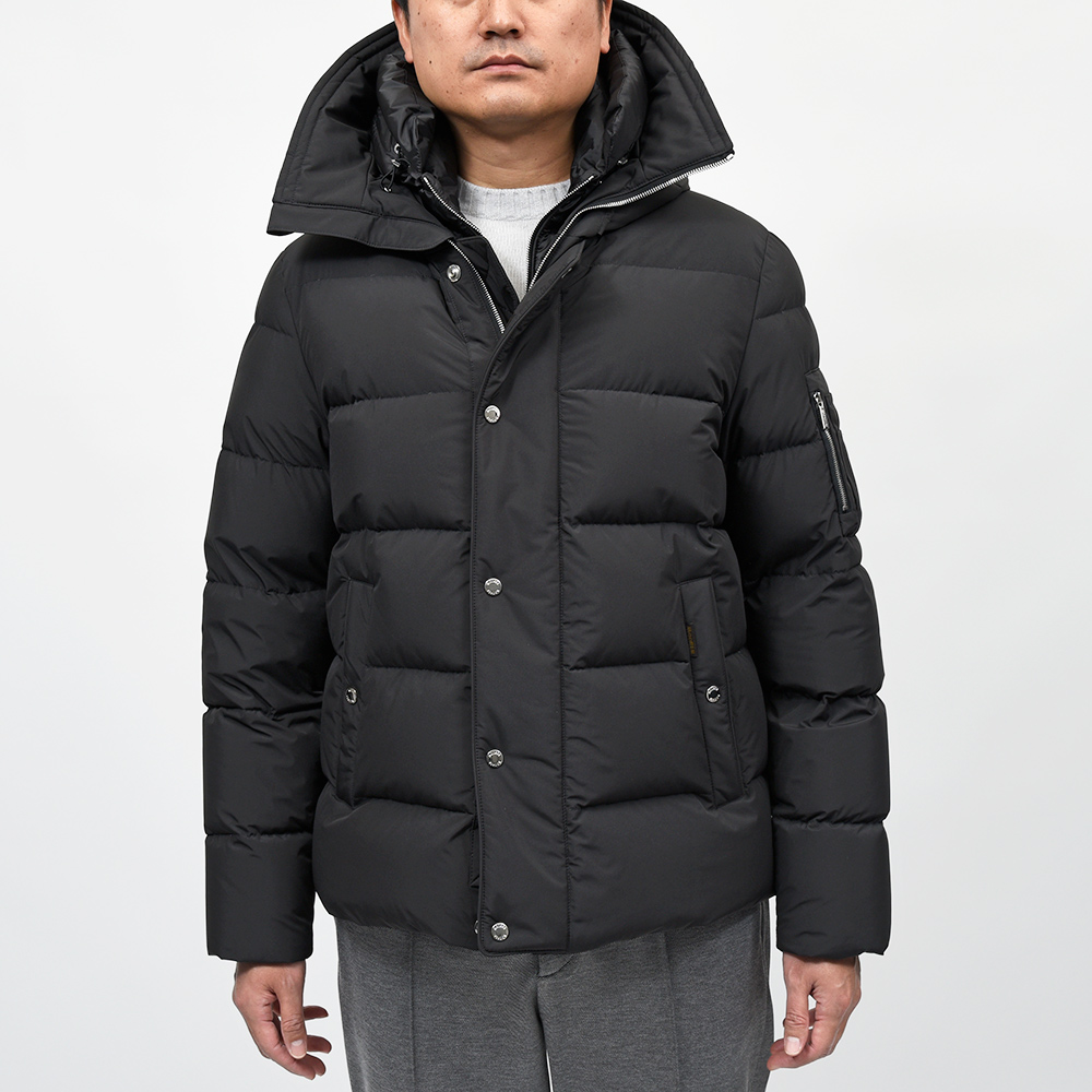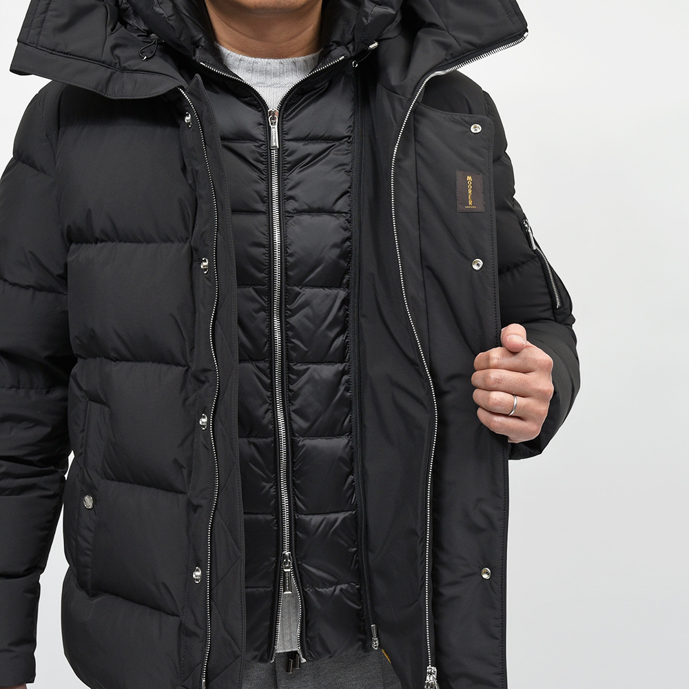 MooRERは最高のフィルパワーを誇るシベリア産の最高級ホワイトグースダウンを贅沢に使用。特注のファスナーに、裏地のナイロン素材の美しさ加えてパイピング処理を施した丁寧な仕上げ、またダウンにとって必要不可欠な防寒性に隙はなく、かといって着膨れしないシルエットは秀逸としか言いようがありません。