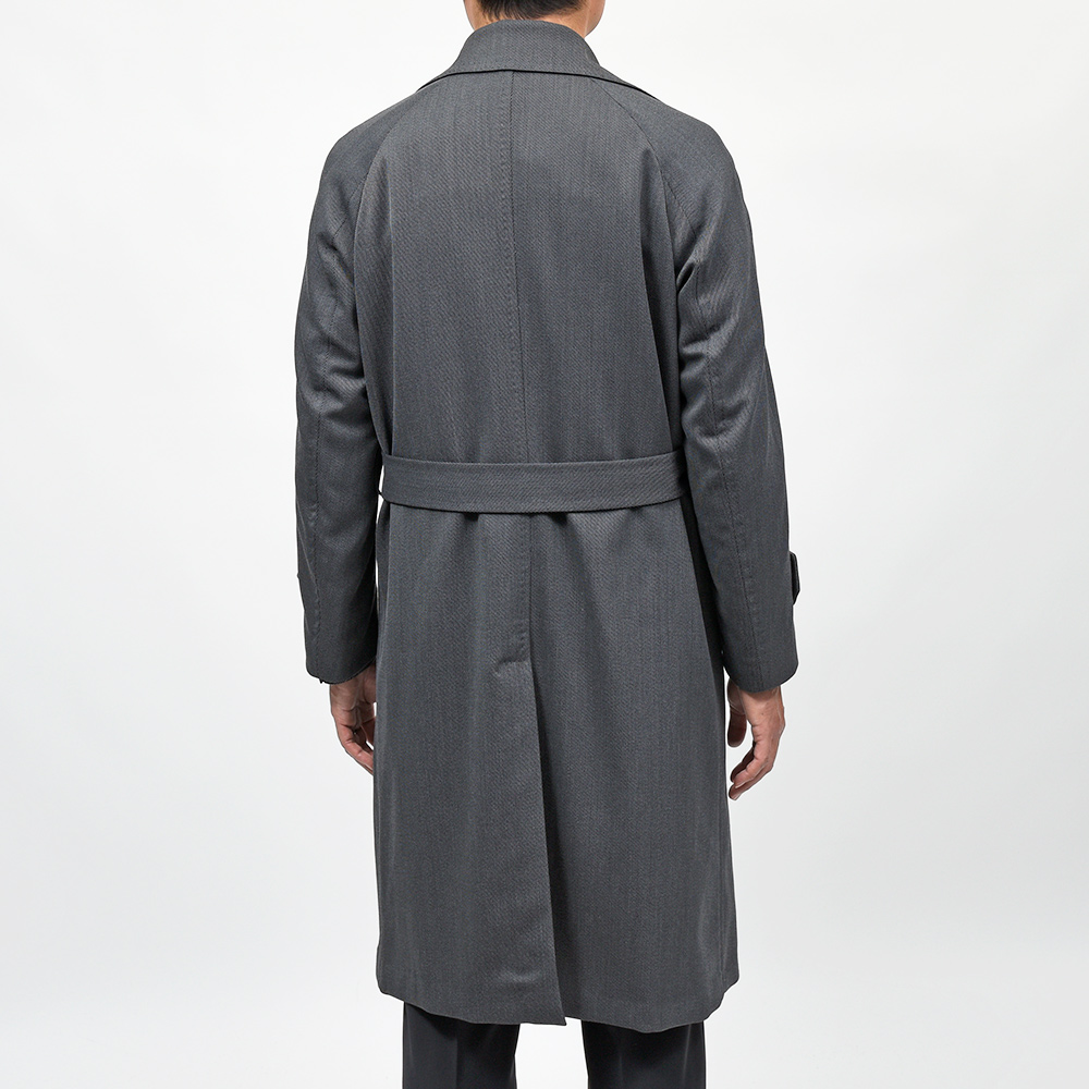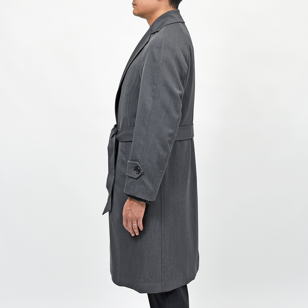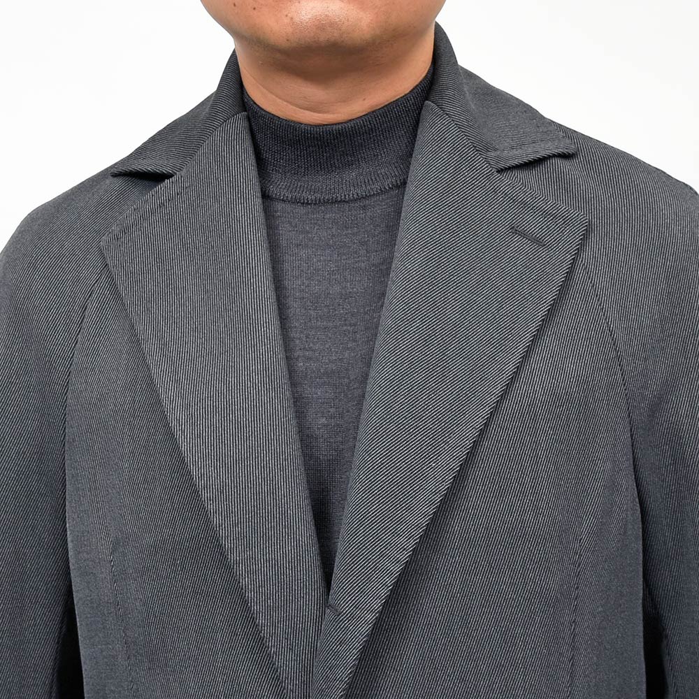 こちらのラグランスリーブコートは、いつも通りのサイズを着るとオーバーサイズシルエット。ワンサイズ落とすとややドレスライクなキレイめにも着れるシルエットになります。袖は可動域を確保した3枚はぎ仕立て、さらにラグランスリーブで一番の難所である肩付けは非常に美しく、そしてナチュラルな落ち感に仕上げた秀逸なモデルになります。