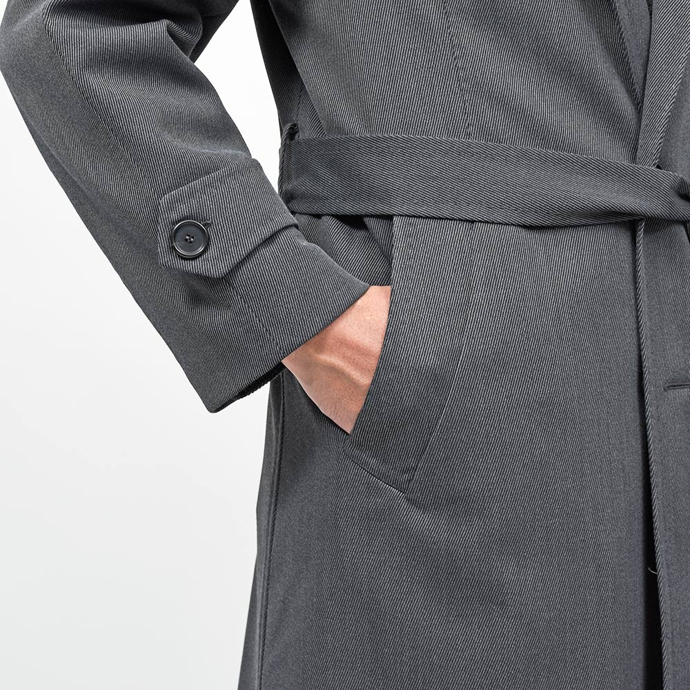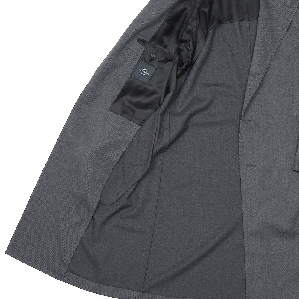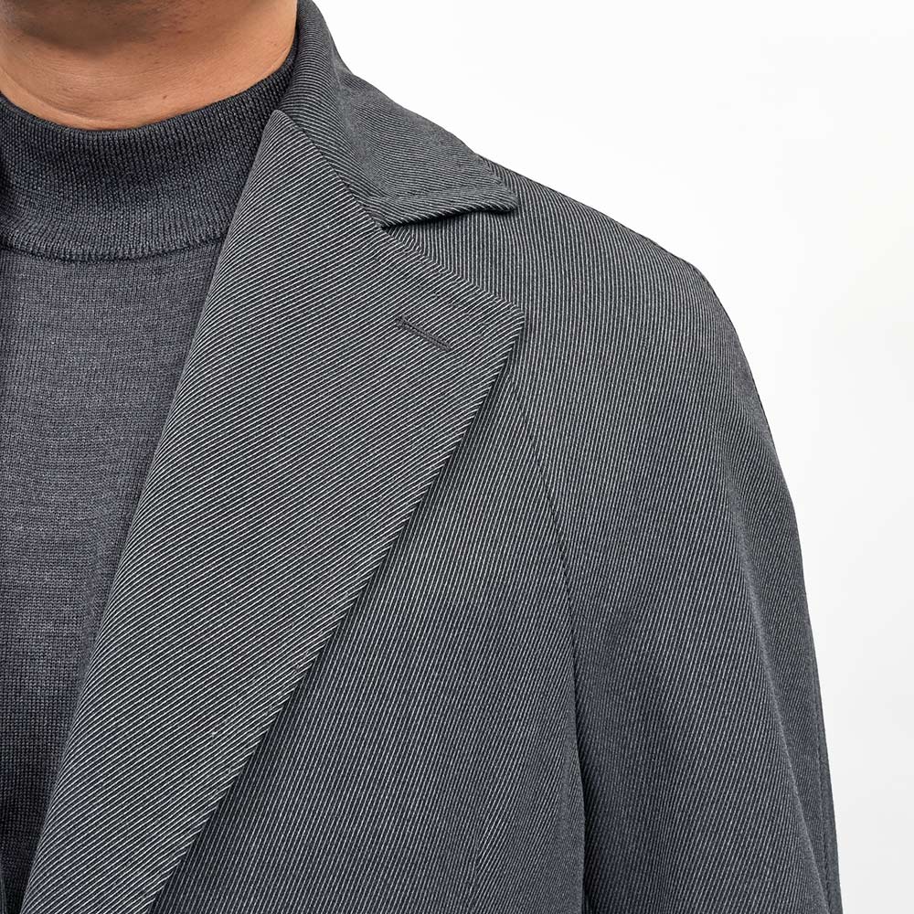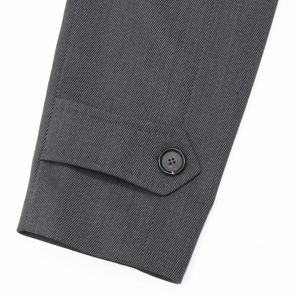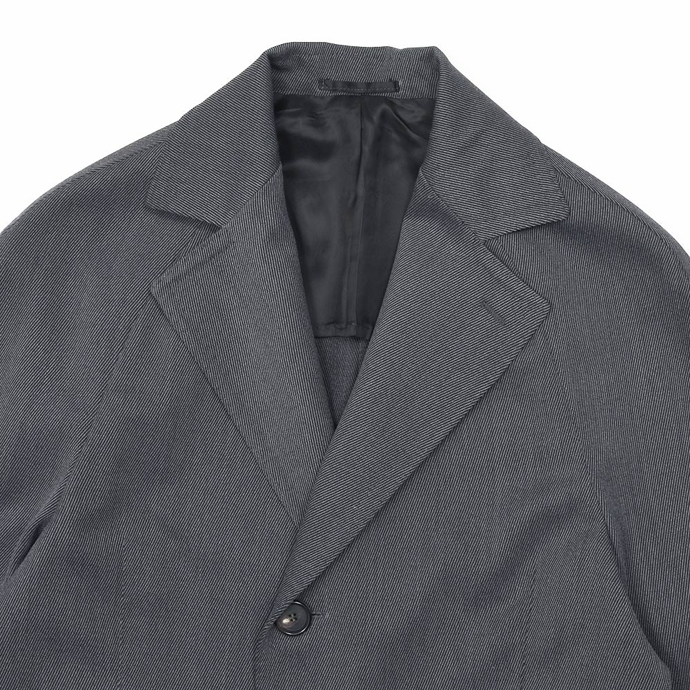 目付け400gのヴァージンウール×ポリエステル素材を使用したこちらは、イタリアの服地メーカー“MARLANE社”製のツイル生地になります。ブラック×グレーのツイル織りは奥深い表情。起毛感の少ないハリのあるタッチに、ナチュラルストレッチが効いているため着心地の良い一着となっています。