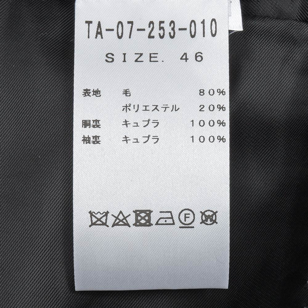 サイズ44でジャストサイズです。全体的なシルエットはゆったりとしており、綺麗なドレープが出るサイズ感です。ジャケットの上に着用して肩まわりや身幅などゆとりのあるフィット感です。