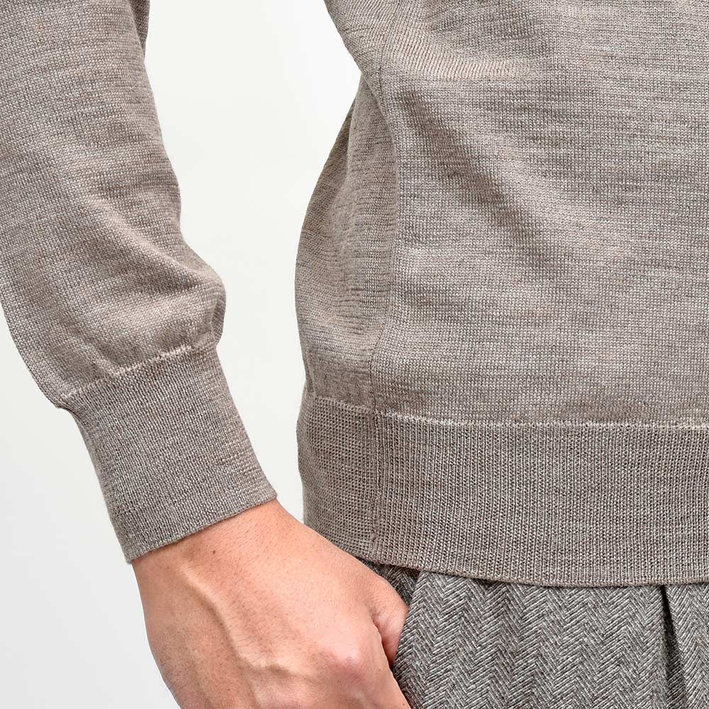 美しい艶感と非常に滑らかなタッチが特徴のエクストラファインメリノウールを使用した12ゲージニット。morganoでは定番の一つで、ロロピアーナ社が母体となる生地メーカー“Tollengo 1900(トレーニョ)”の糸を使い、ドイツ製の編み機で仕立てられています。やや肉感のあるハイゲージは、インナーは勿論、サイズアップして少しゆとりを持って一枚で着ても映える一着となっています。