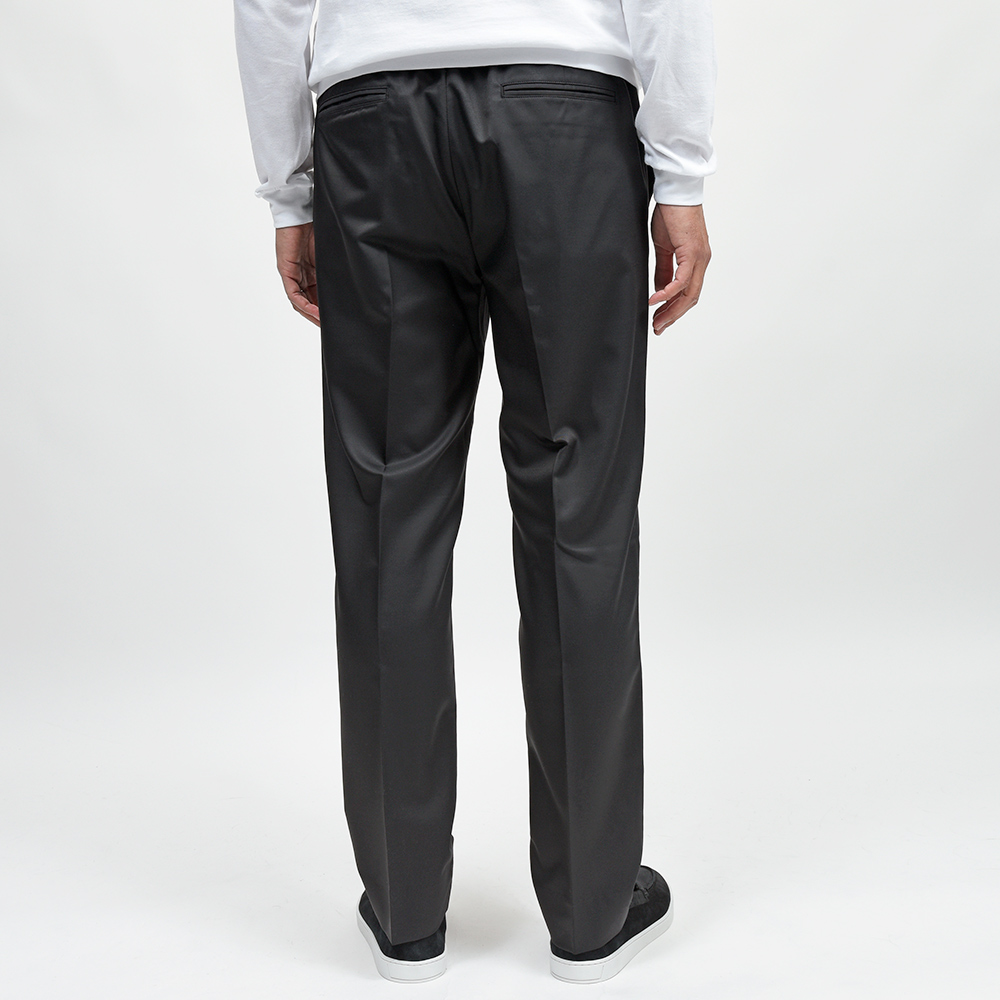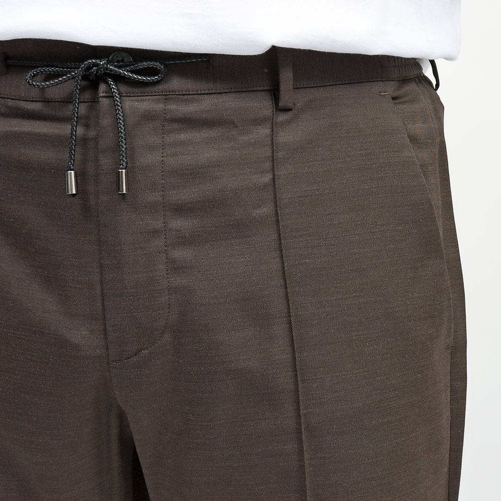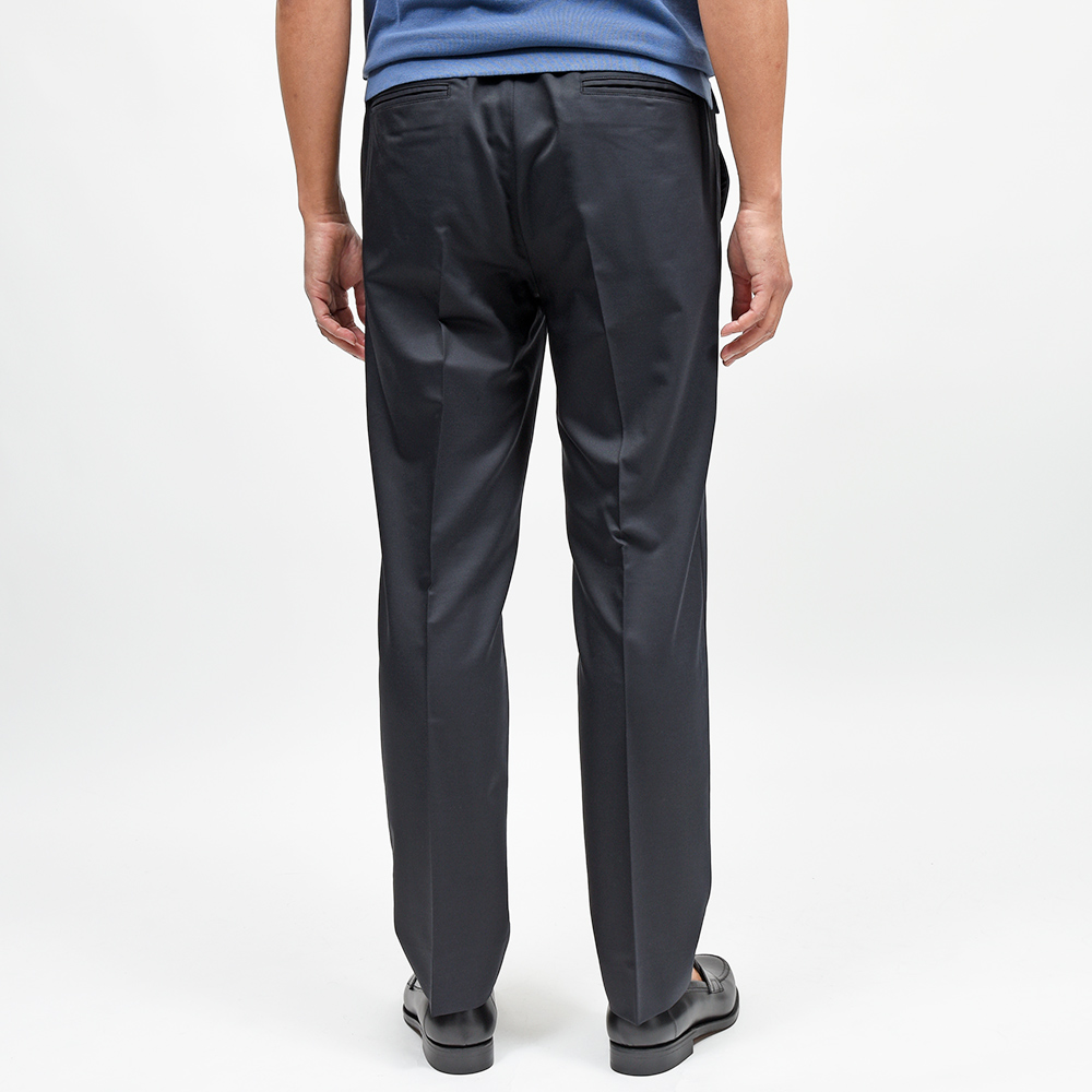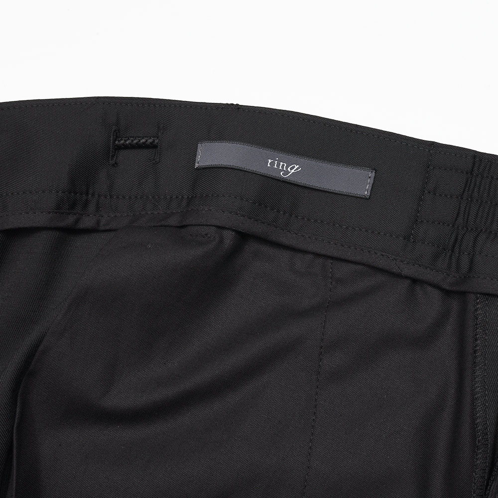 MASACCIO/3GはMASACCIOの特徴である永久クリースや、内側に隠せるドローコードなどのディティールを継承しつつも、現代的なフィッティングに再解釈したモデルになります。こちらの別注モデルでは、通常ウエストのサイドのみに施されたゴムを、後半身がシャーリング仕様となりより高い伸縮性を持たせています。