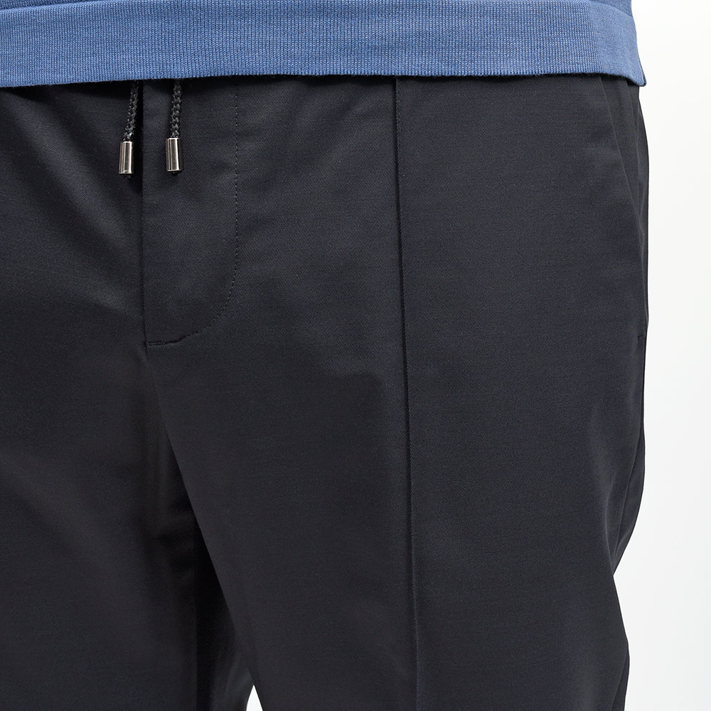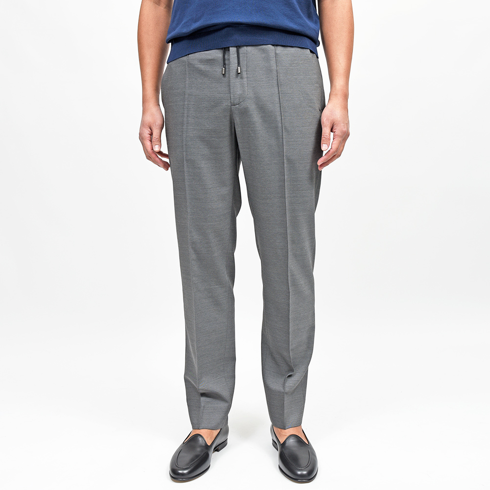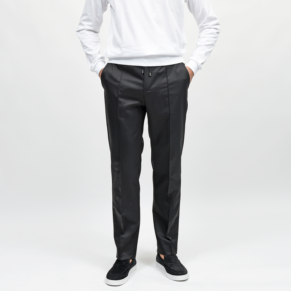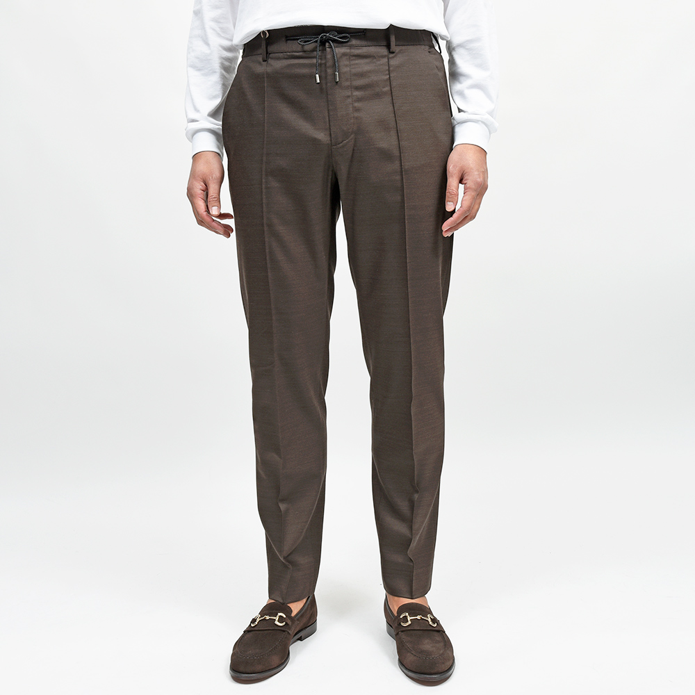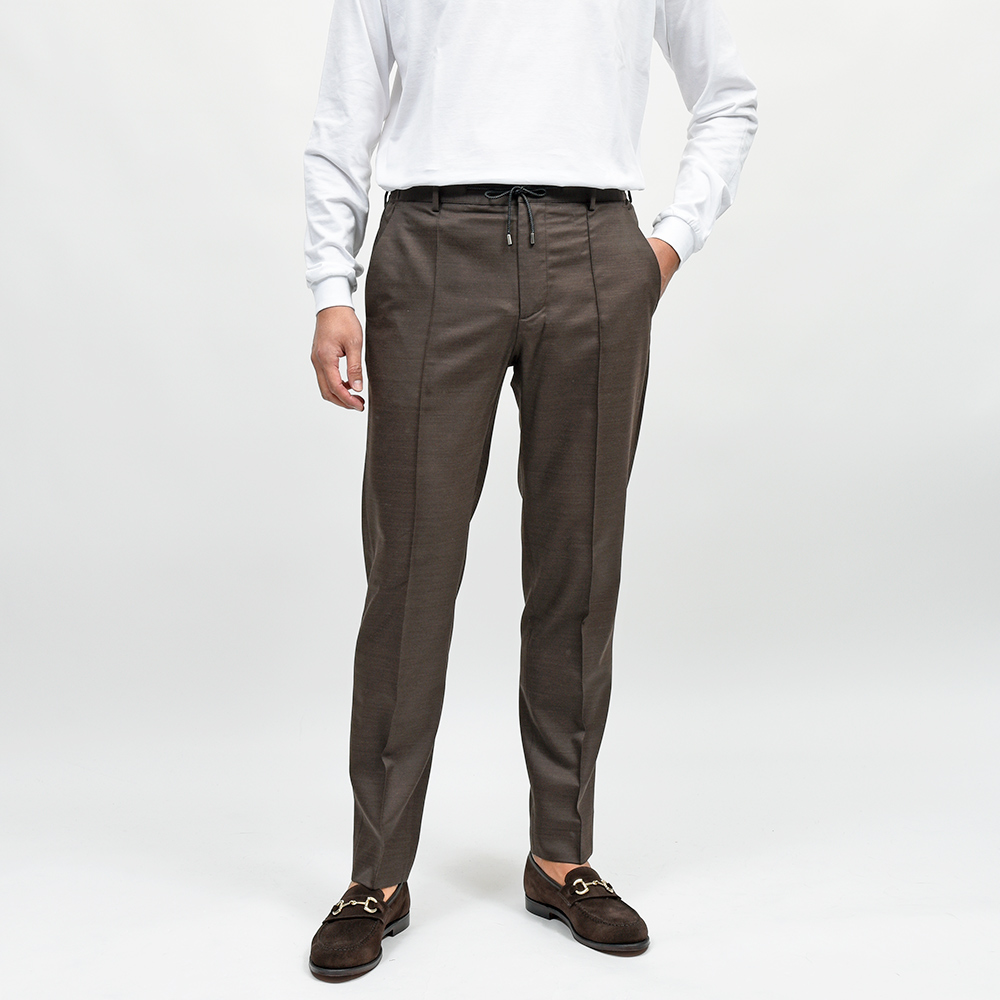 MASACCIO/3GはMASACCIOの特徴である永久クリースや、内側に隠せるドローコードなどのディティールを継承しつつも、現代的なフィッティングに再解釈したモデルになります。こちらの別注モデルでは、通常ウエストのサイドのみに施されたゴムを、後半身がシャーリング仕様となりより高い伸縮性を持たせています。