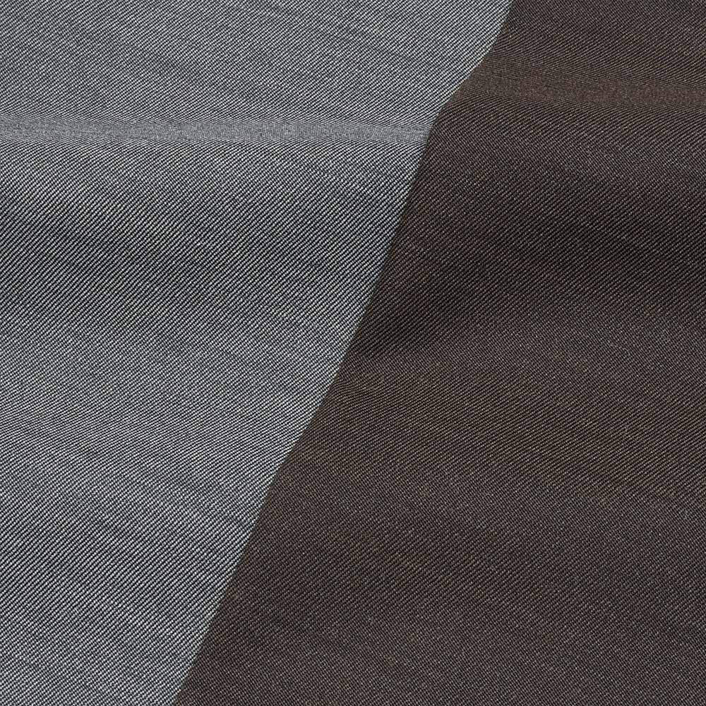 シャカウールといえば、ほんのりとした上品な光沢感に、シャリっとしたドライな質感。ナイロンを混紡することでシワがつきにくく、またシワも取れやすい生地。さらに、冬以外で着用できる生地感というメリットだらけの伝説的なファブリックになります。