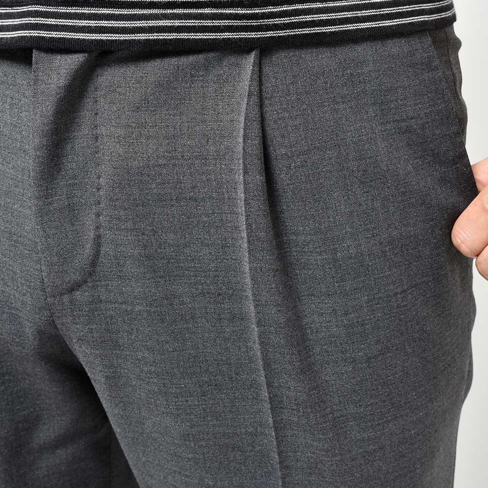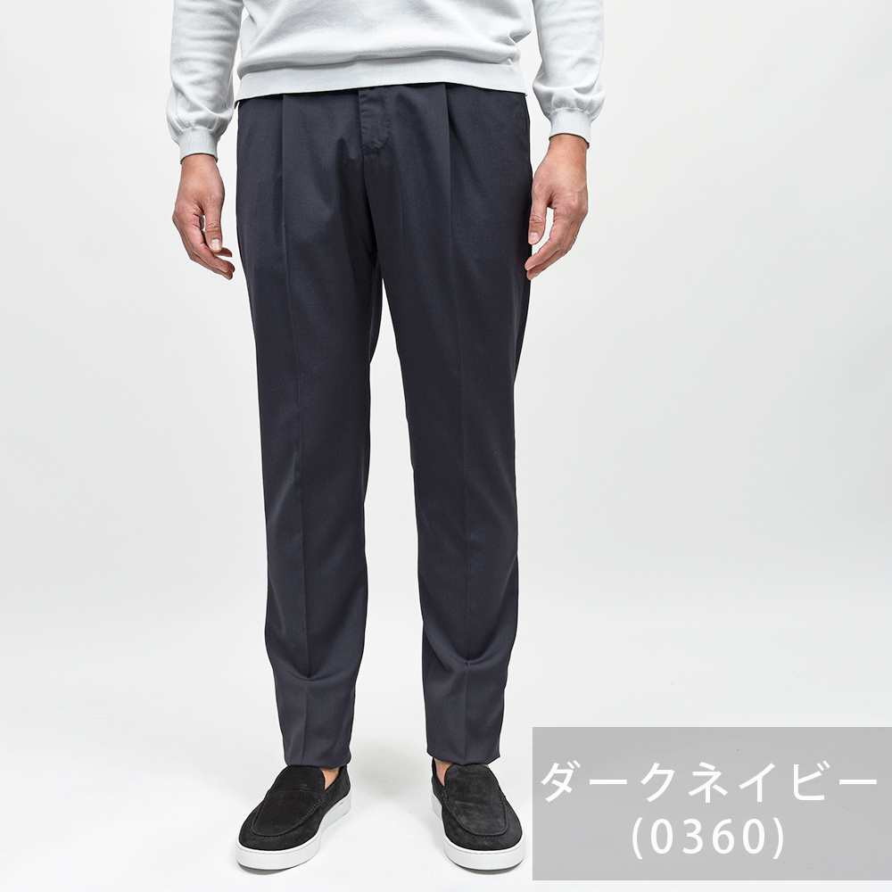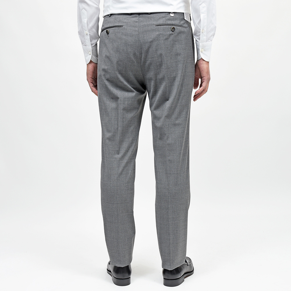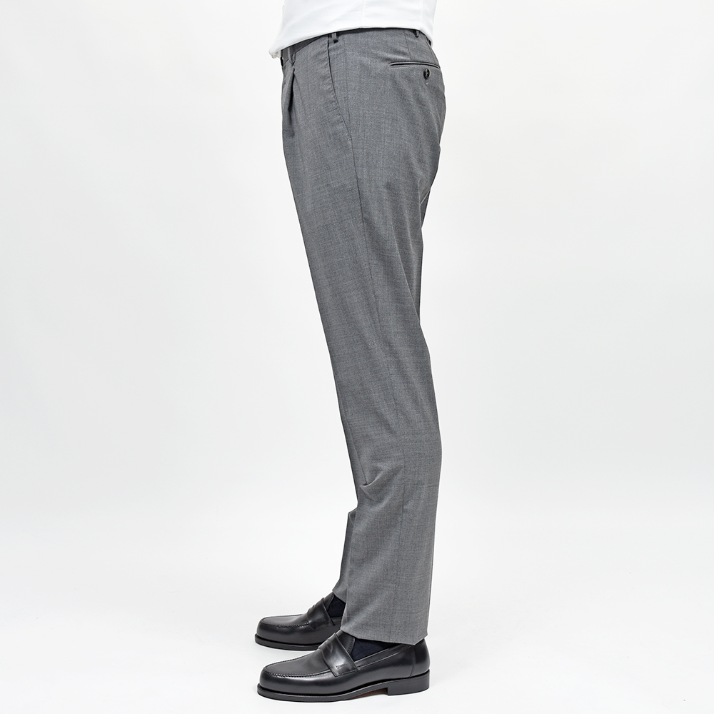 PT TORINOには欠かせないFITとなった“GENTLEMAN FIT”は、プリーツが入り、少し股上が深く程よいゆとりの腰回り。テーパードを効かせスッキリとした裾幅は、モダンな香りが漂うニュークラシックな佇まいです。