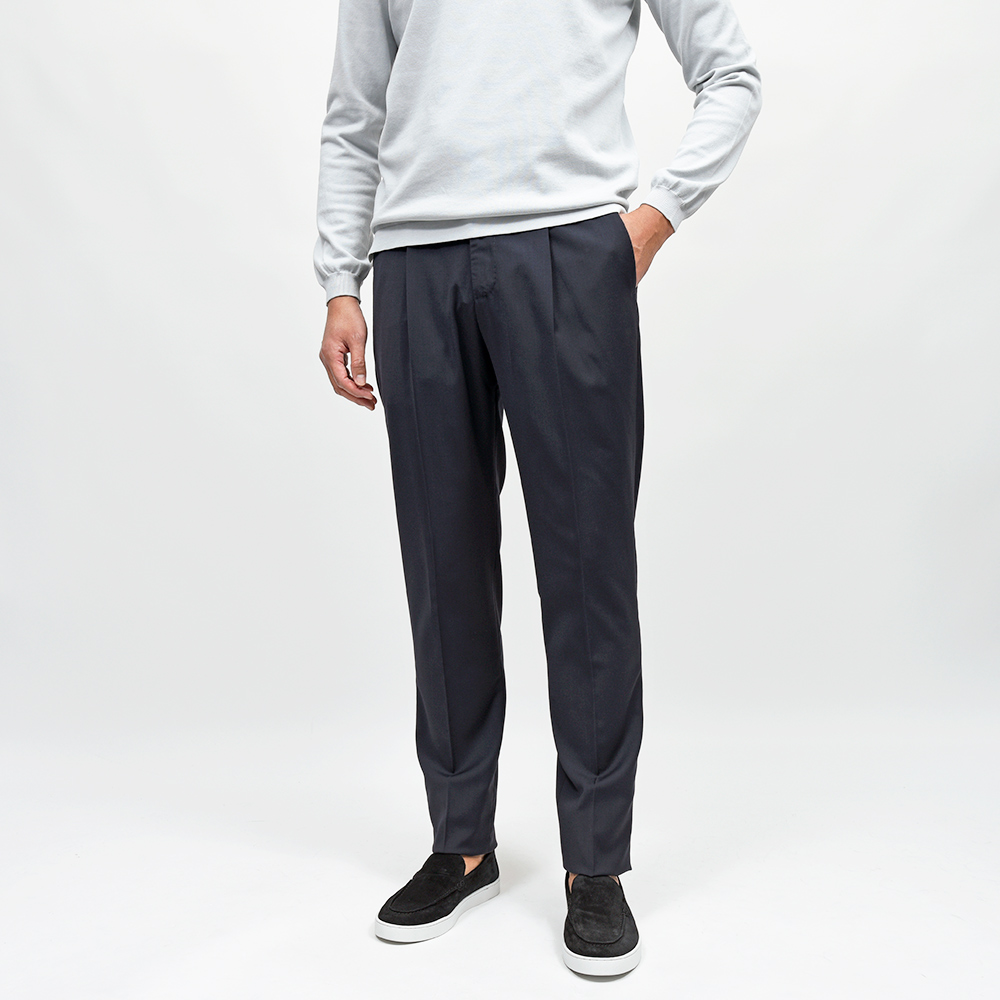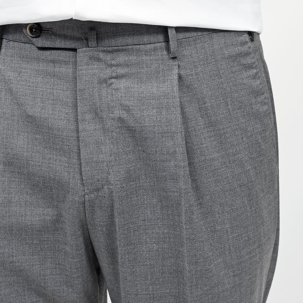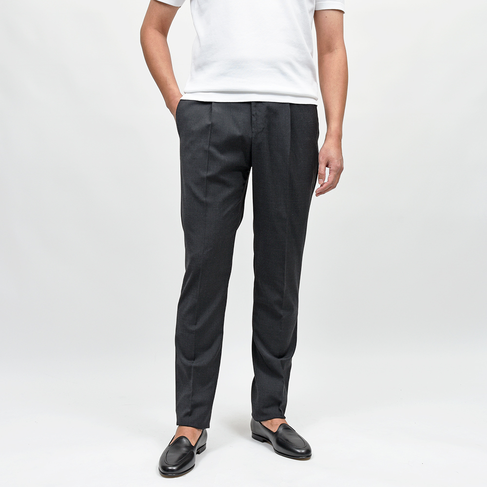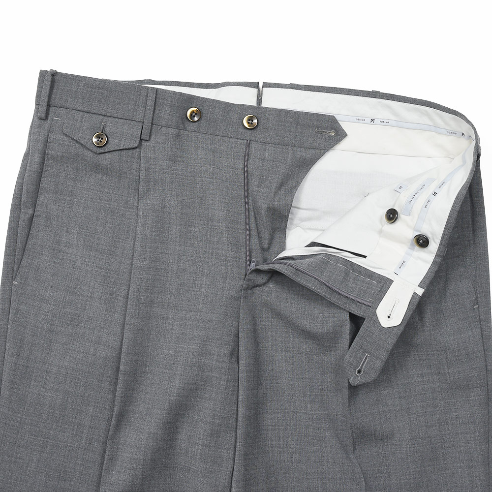PT TORINOには欠かせないFITとなった“GENTLEMAN FIT”は、プリーツが入り、少し股上が深く程よいゆとりの腰回り。テーパードを効かせスッキリとした裾幅は、モダンな香りが漂うニュークラシックな佇まいです。
