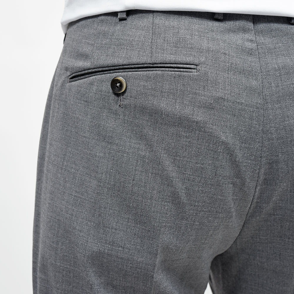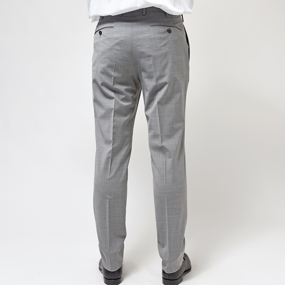 目付け260gの“WASHABLE STRETCH TECHNO WOOL”と名付けられたこちらは、一度穿くとやめられないビジネスパンツの金字塔”Travel”シリーズ。言わずもがなのストレッチが効いたバツグンの穿き心地に、トロピカルウールのドライなタッチは蒸れる日本の風土にぴったり。使用されているポリエステルとウールの混紡素材は柔らかでシワになりにくく、立ったり座ったりを繰り返すビジネスシーンにおいて必須となる機能性。そして何よりも自宅で洗濯でき、アイロンをかける事でシワもスムーズに伸びます。