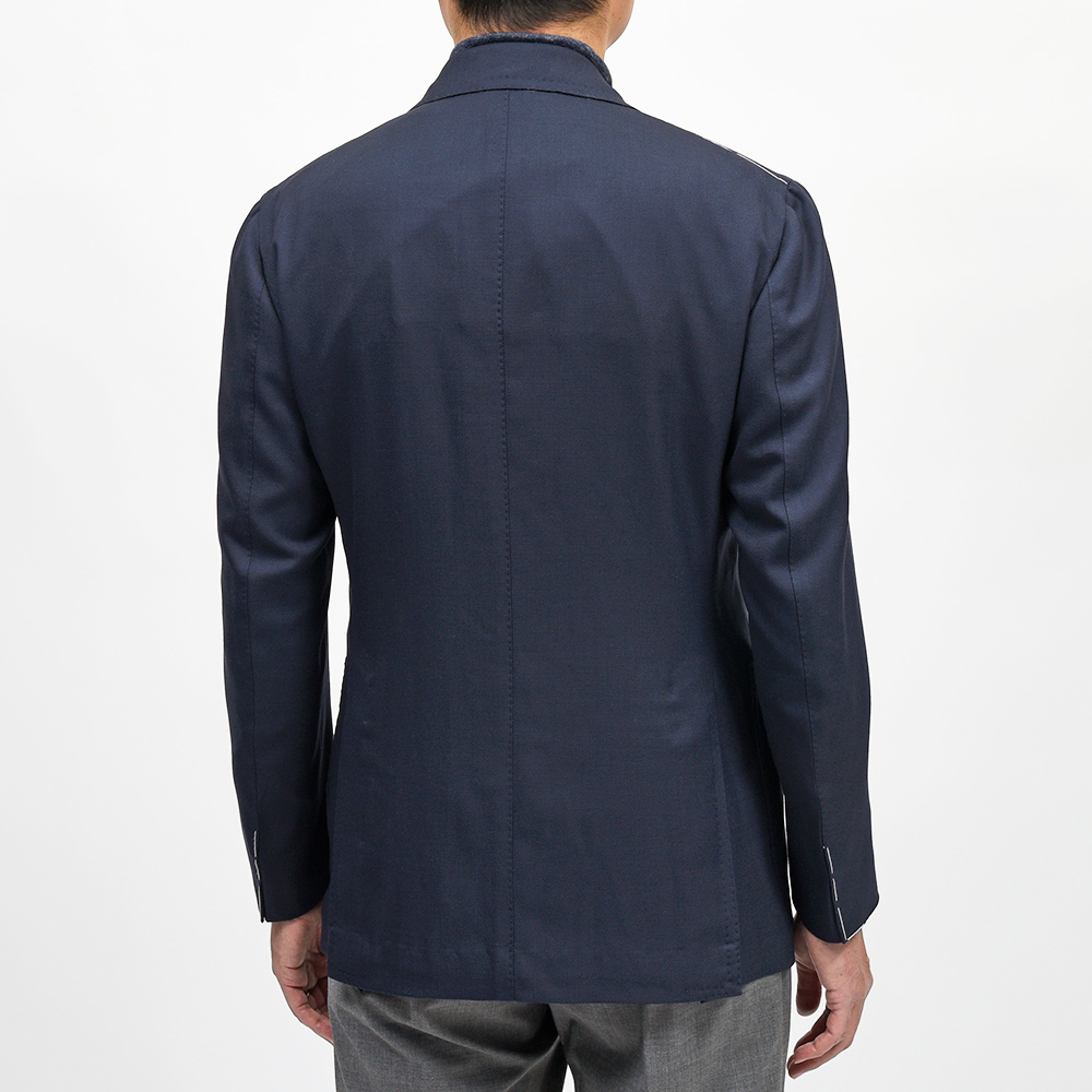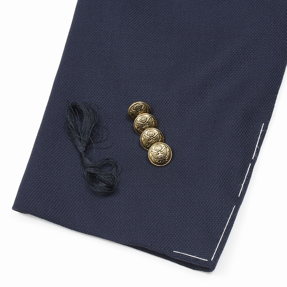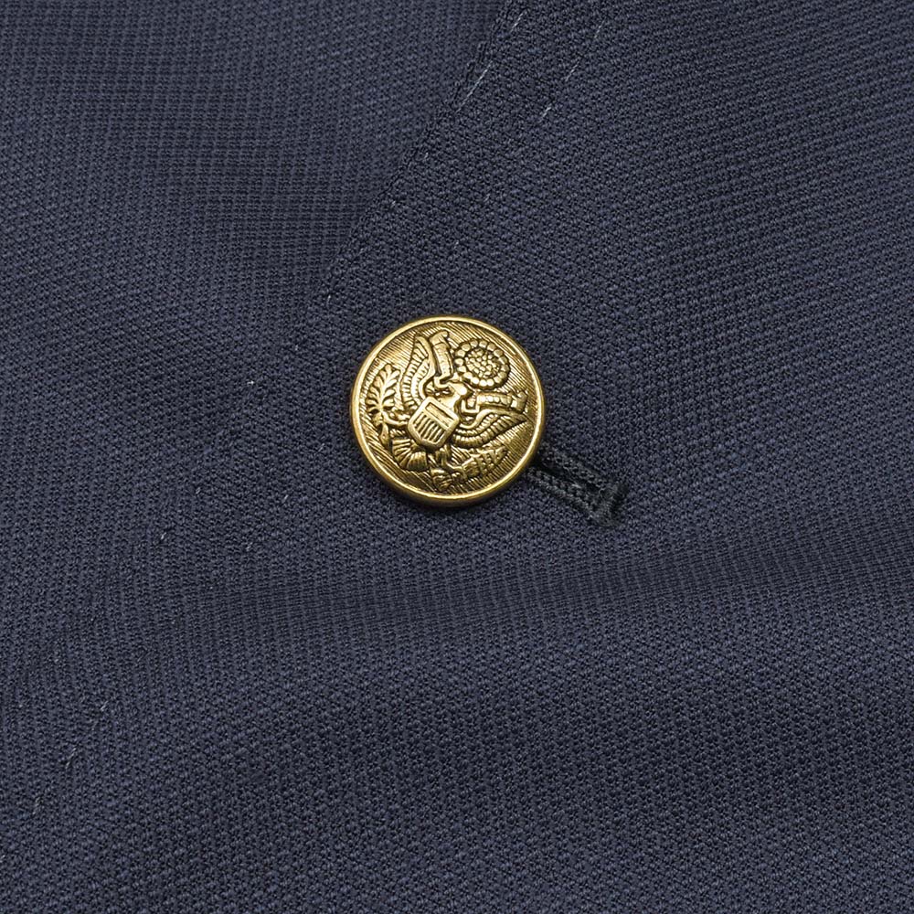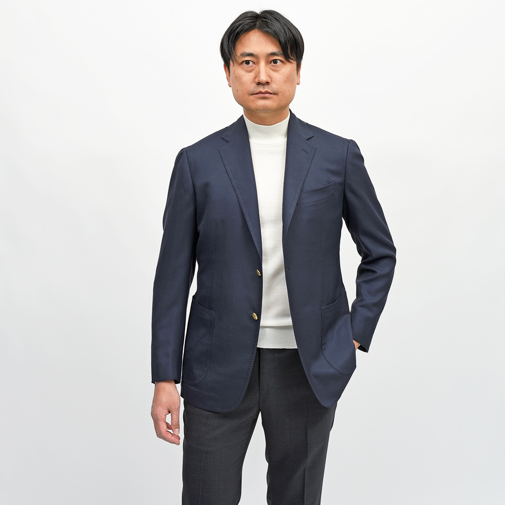 通年で着用できるやや軽めの目付けのホップサックジャケット。ヴァージンウールを使用した柔らかで滑らかな質感に、ほんのりと上品な光沢感を持った上質な逸品です。ボタンはゴールドのメタルボタンでブレザーの仕上がりとなっていますが、ホーンボタンが付属で付いているため、その時々の気分やシーズンによって付け変えることが可能です。長い期間愛せるパートナーのような存在になる一着と言えます。
