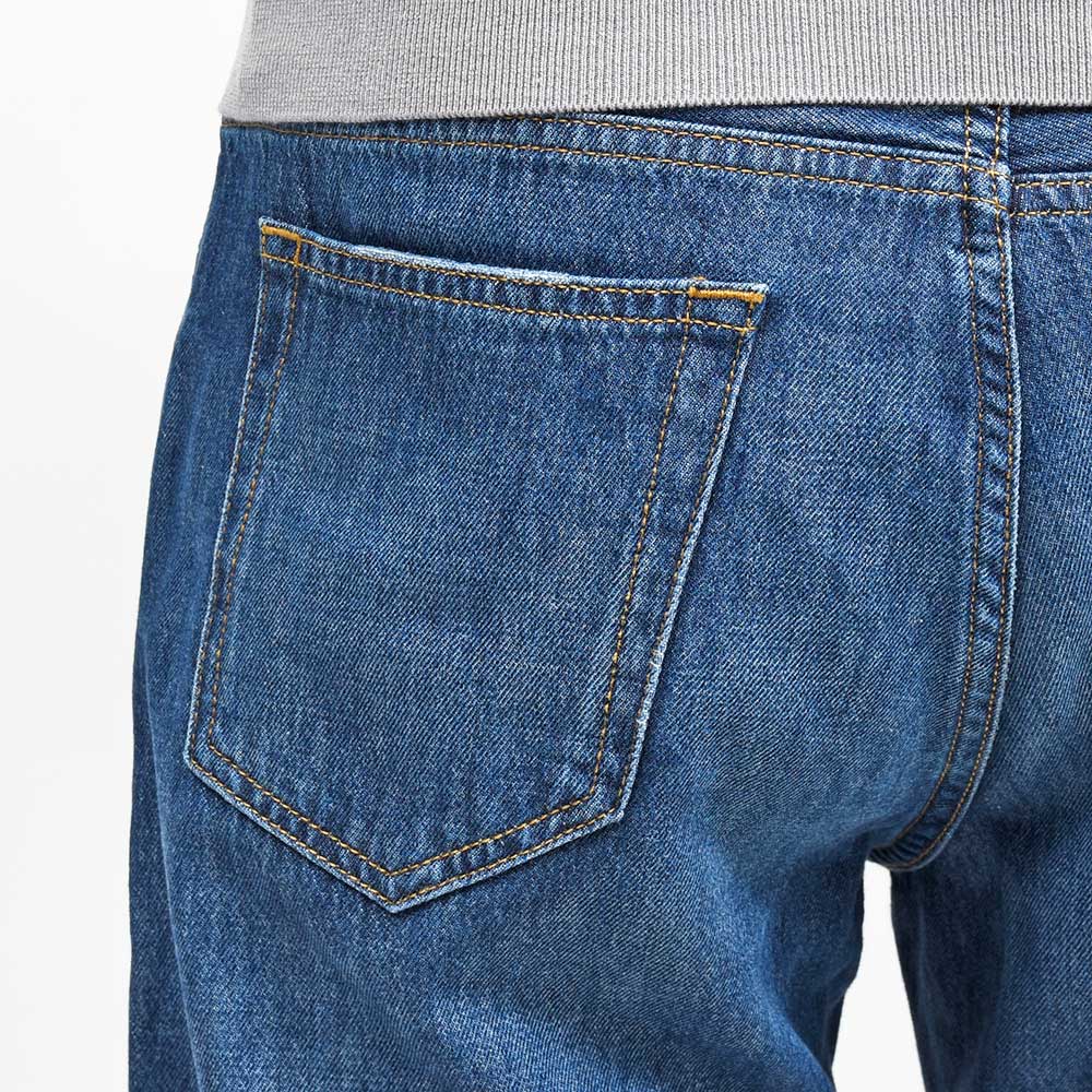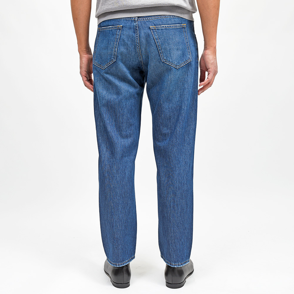 サイズ32がジャストサイズです。股上が深く、腰からヒップ上にかけてはスッキリと、ヒップ下からワタリはゆとりがありテーパードしたシルエットになります。使いやすいミディアムな色落ちのインディゴです!