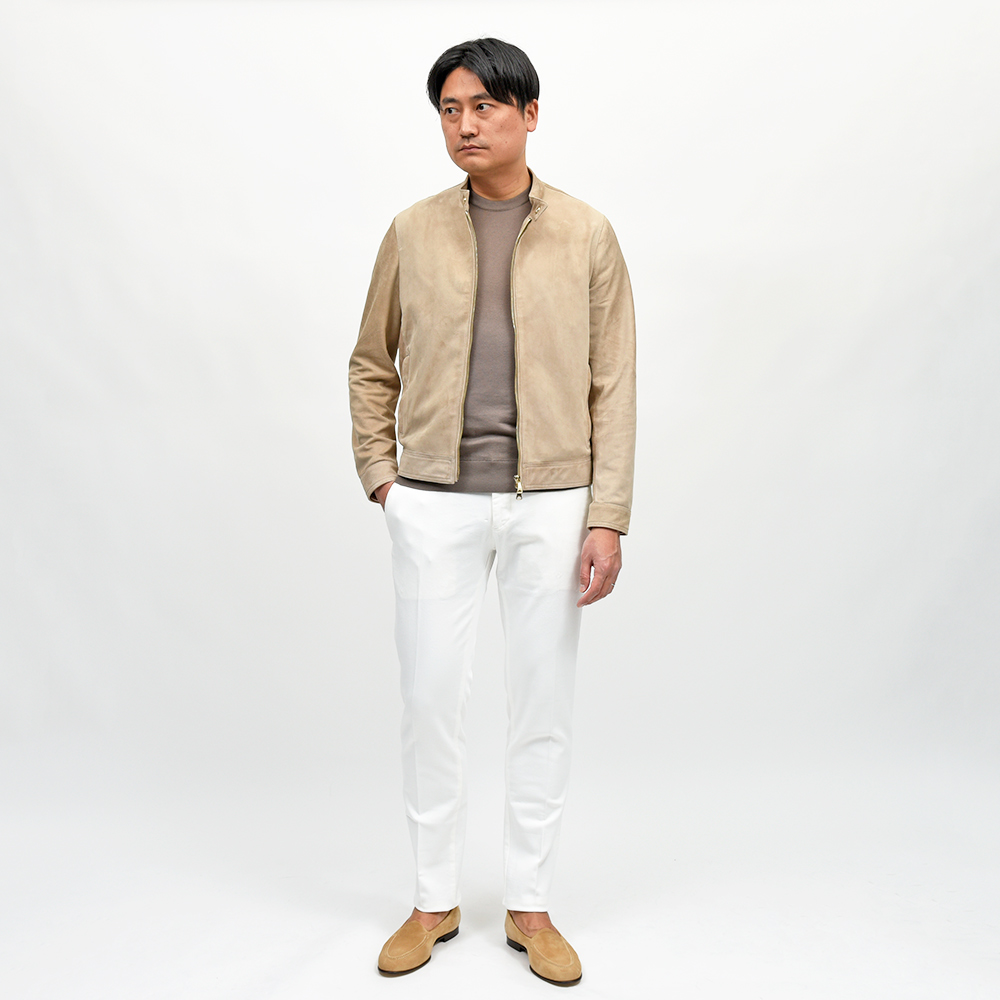 ベージュカラーを使用したスエード素材は、素材感の良し悪し次第で野暮ったく見えてしまいますが、こちらのゴートスエードにとってその心配は杞憂となります。