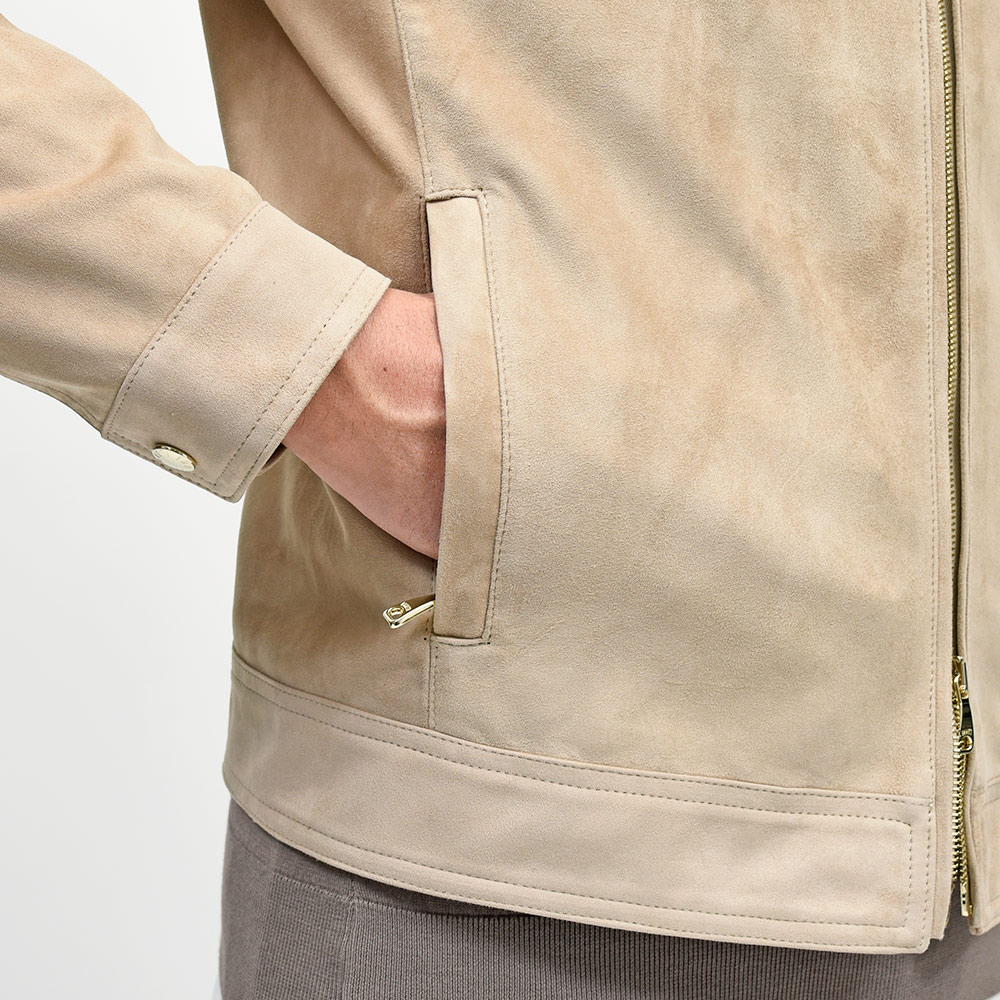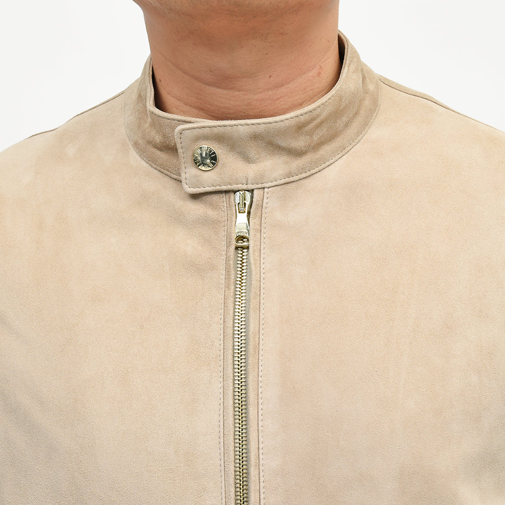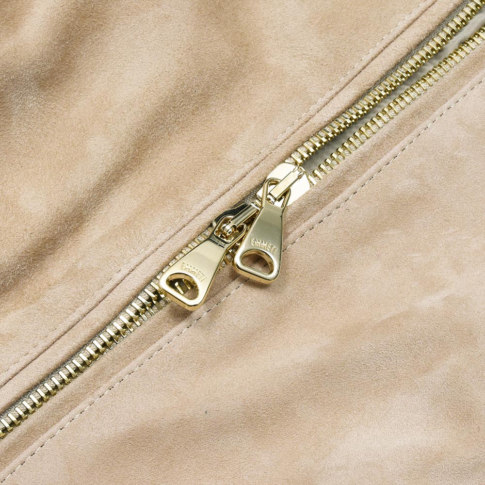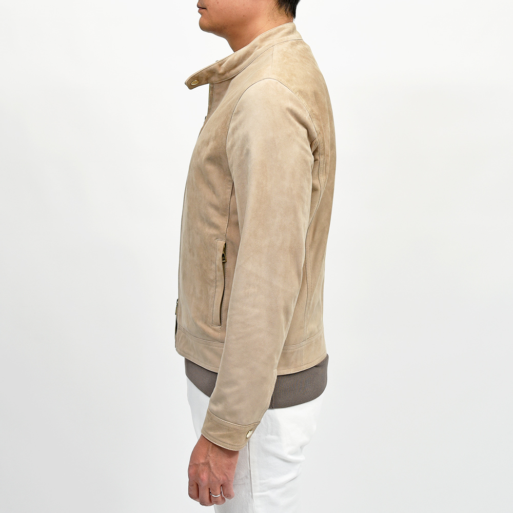 通常ラグジュアリーブランドで使用されているクオリティのレザーを、限りある着数分だけオーダーできる“SPレザー”シリーズ。こちらはEMMETI社で定番のゴートスエードよりも、一格高いクオリティのファブリックになります。滑らかで柔らかな質感に、非常にきめ細やかでしっとりとした滑りのあるタッチ。スエードのJURIをすでにお持ちの方には勿論、一着目からでも高い満足感を得ることのできるスペシャルな一品となっています。