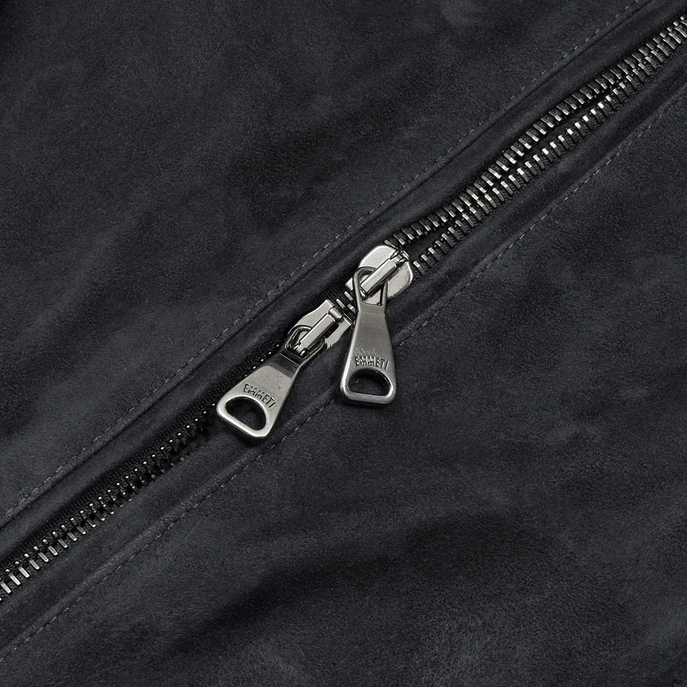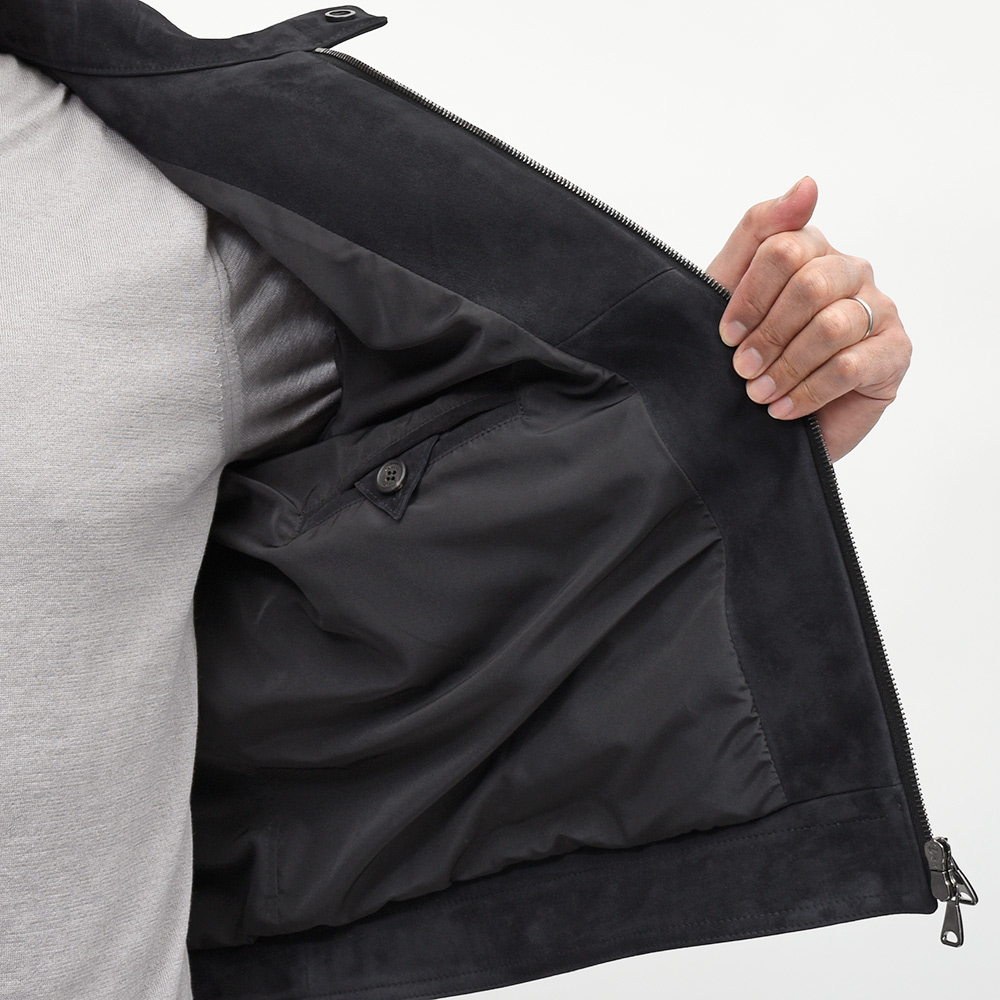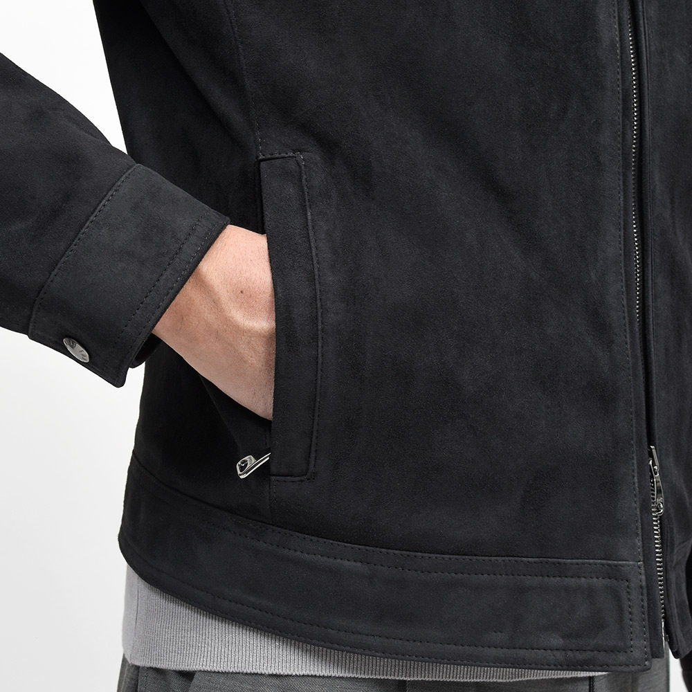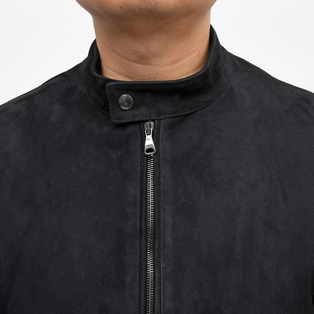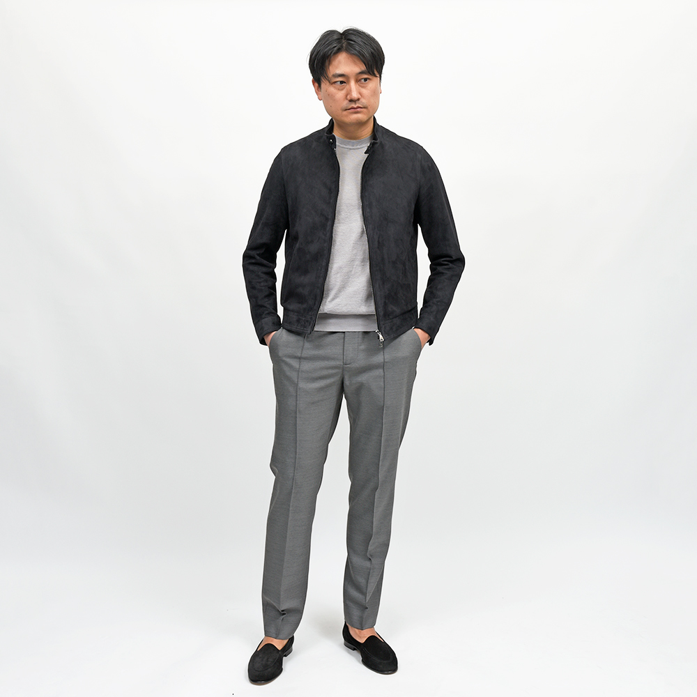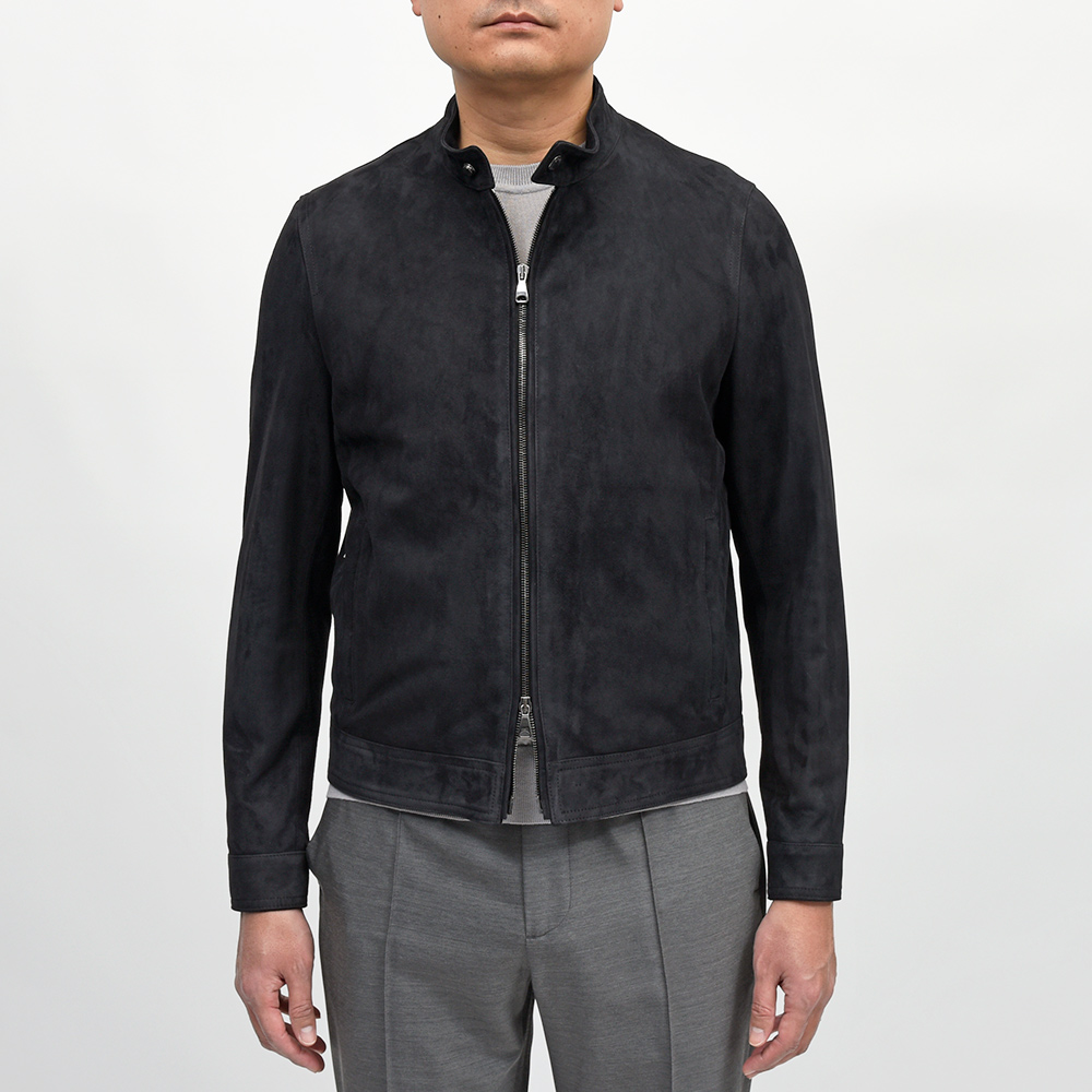 通常ラグジュアリーブランドで使用されているクオリティのレザーを、限りある着数分だけオーダーできる“SPレザー”シリーズ。こちらはEMMETI社で定番のゴートスエードよりも、少しだけ薄手なラムスエードを使用しています。滑らかで柔らかな質感に、非常にきめ細やかでしっとりとした滑りのあるタッチ。スエードのJURIをすでにお持ちの方には勿論、一着目からでも高い満足感を得ることのできるスペシャルな一品となっています。