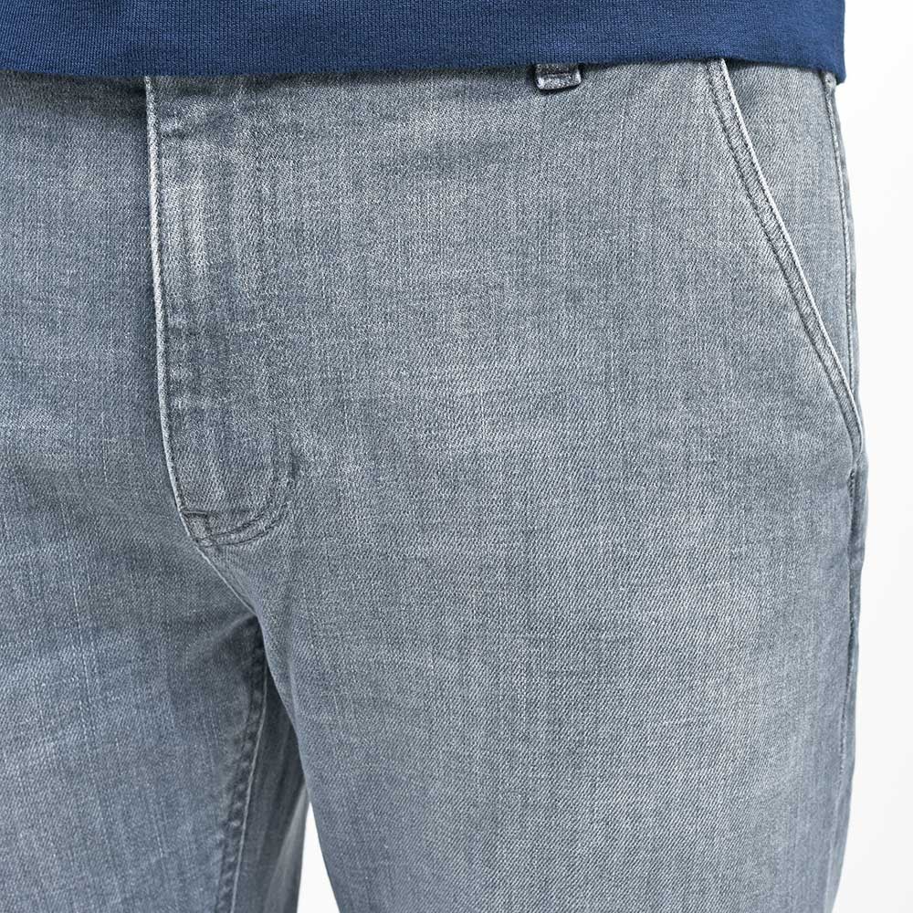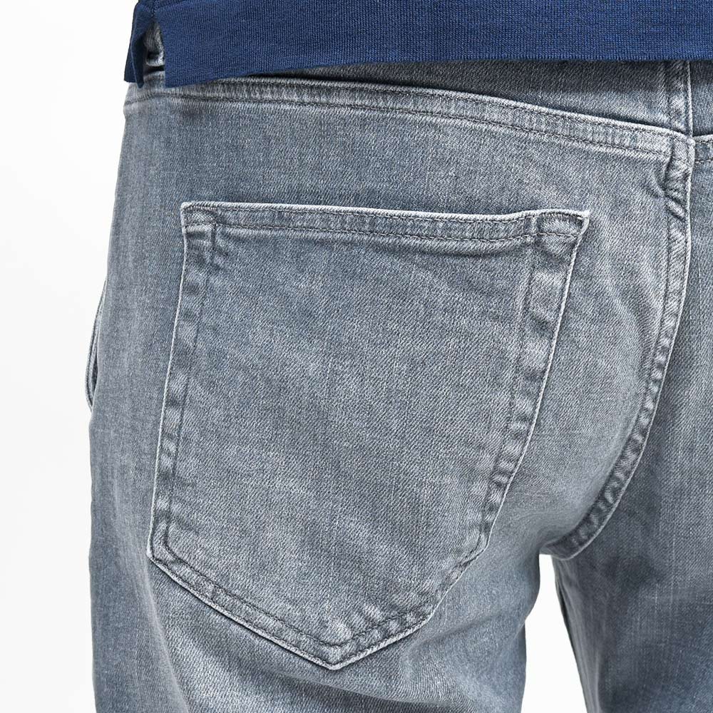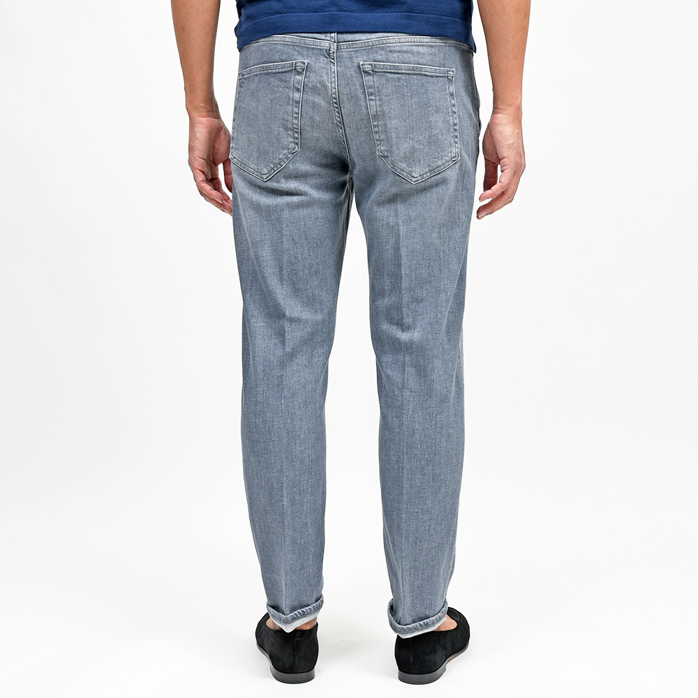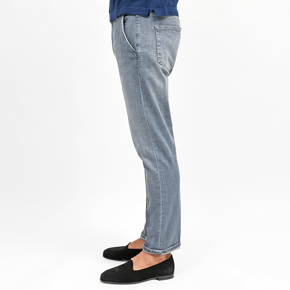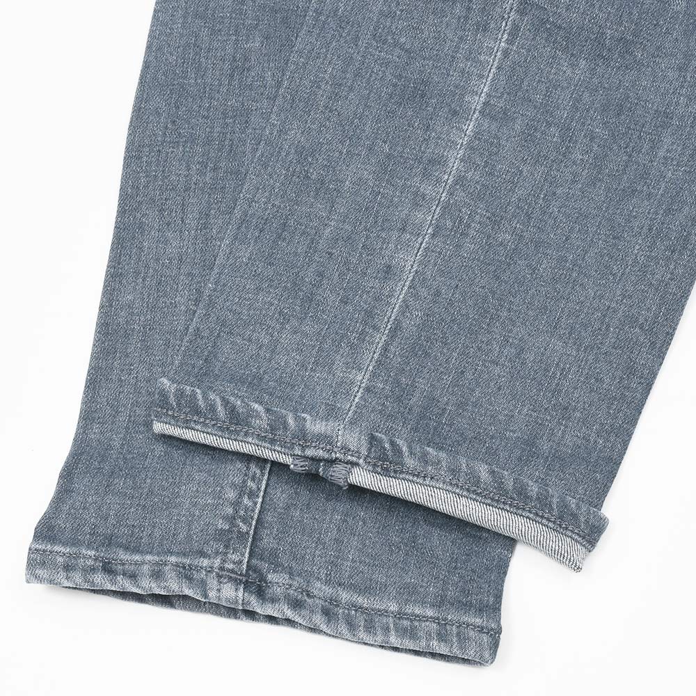 少し淡いグレーカラーまでウォッシュド加工を施したこちらは、アタリ感を抑えることでモダンな雰囲気を作り上げています。また、しっかりとストレッチの効いたコットン主体のファブリックを使用していますので、その穿き心地は言わずもがな。ガンメタリックのボタンに、同色のステッチ、高級感のあるスエードの革パッチが大人の色気を演出してくれます。