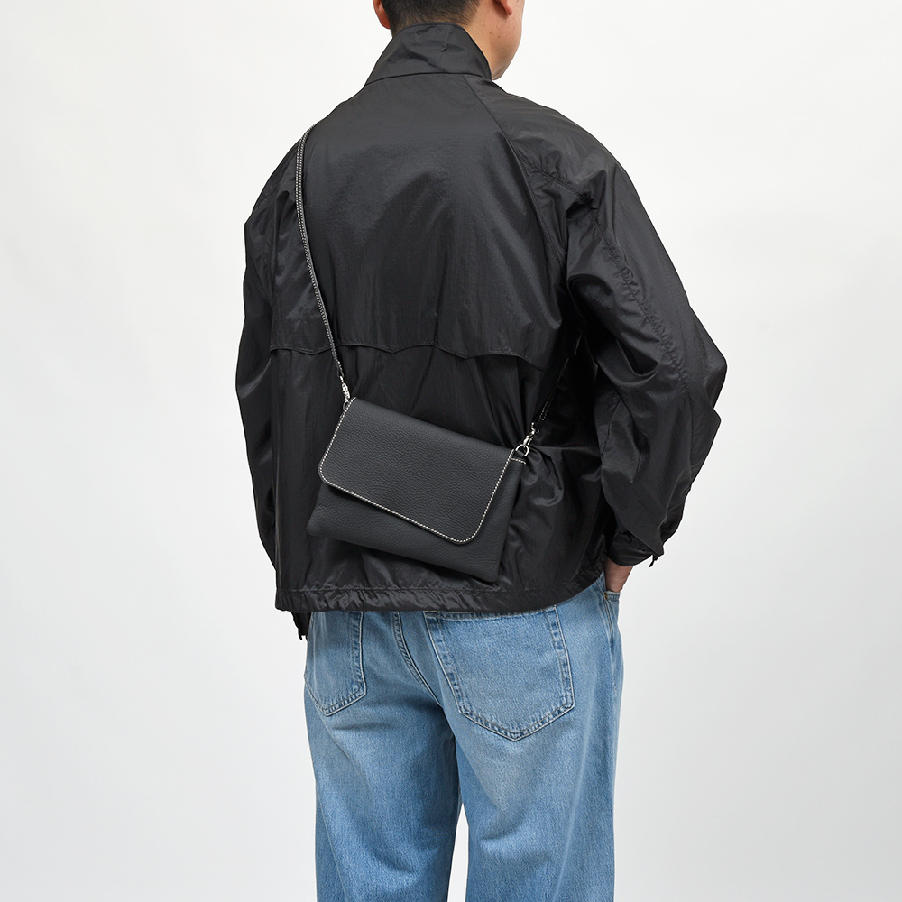 カジュアルな印象が強くなるサイズ感のバッグですが、上質なグレインレザーがその印象を変えてくれます。