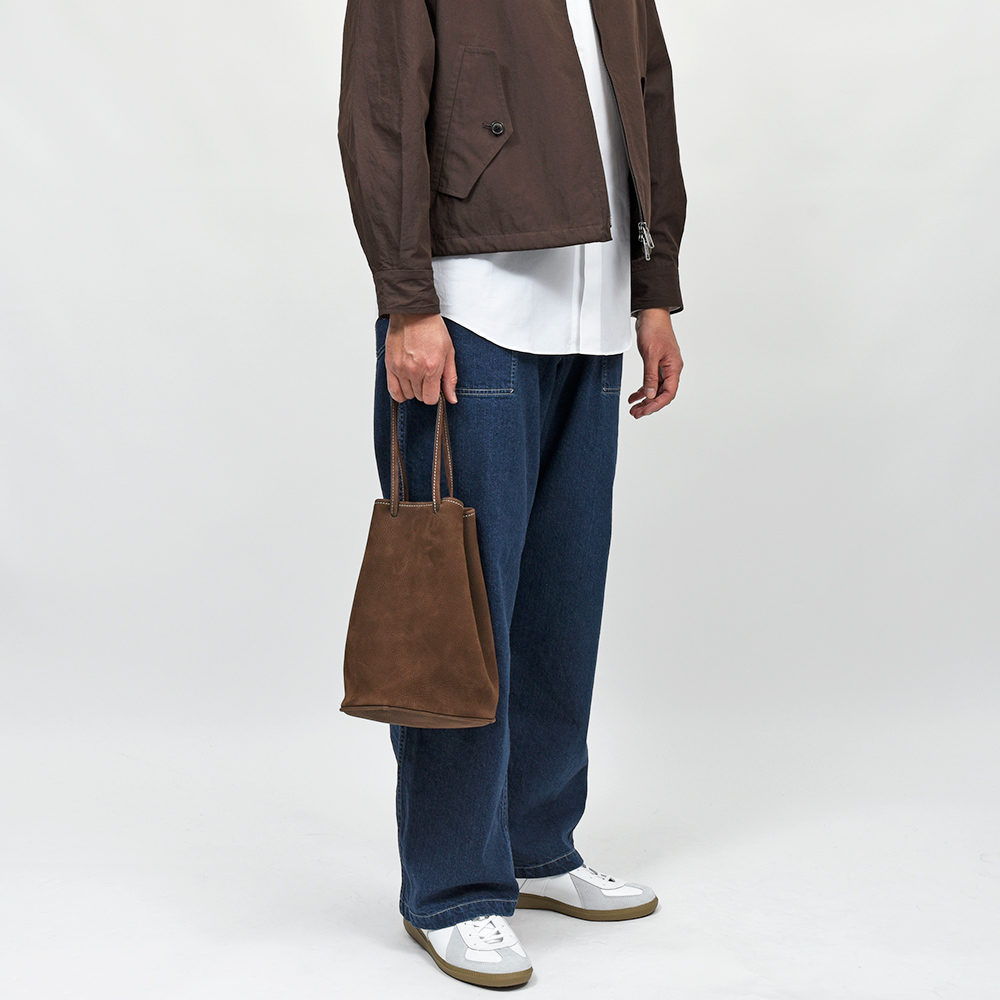 フランスのレミーカリア社のトップグレードの ヌバックレザーを使用。非常に柔らかく、かつハリがありモチッとした高級感のある風合いに、ライニングなしのアンライドで使用することで、上質な革の質感を余すことなく感じることができます。革の裁断はほどんどが手作業で行われており、すべての工程を一人の職人が仕上げることで高い品質を維持し、妥協のない物作りを今なお続けています。