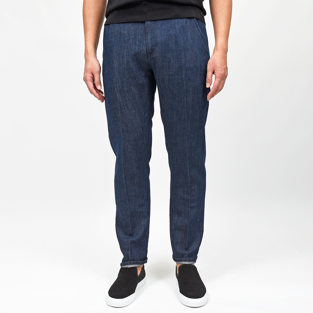 春夏に打って付けの少し清涼感のあるデニム生地は、ジャケパンにも使いやすいデニムスラックスでご用意しました。