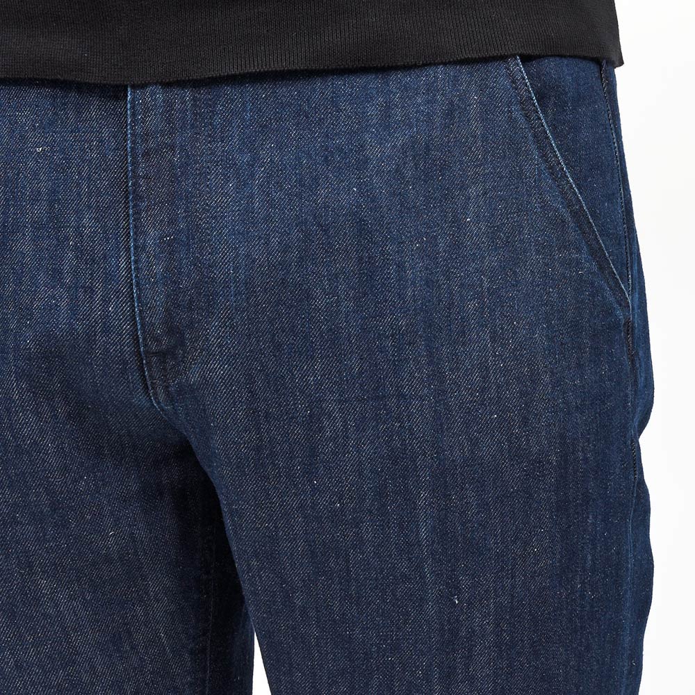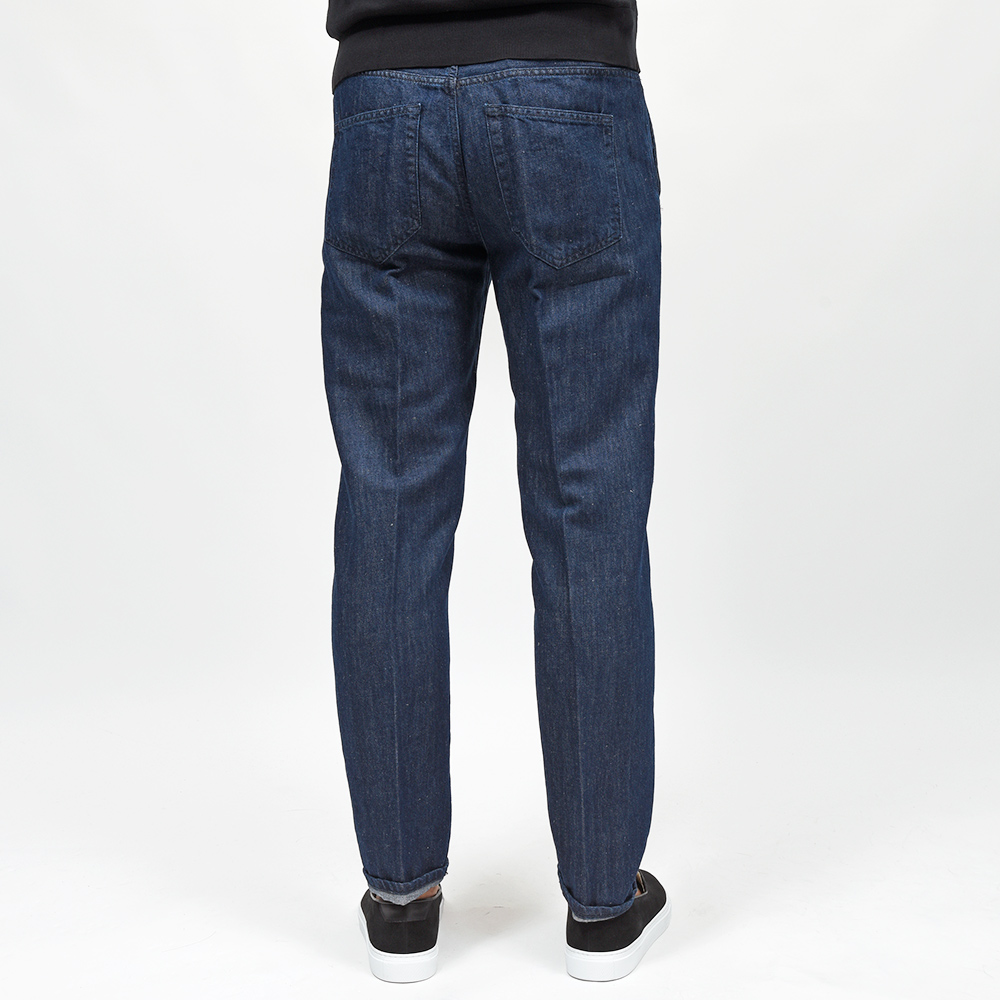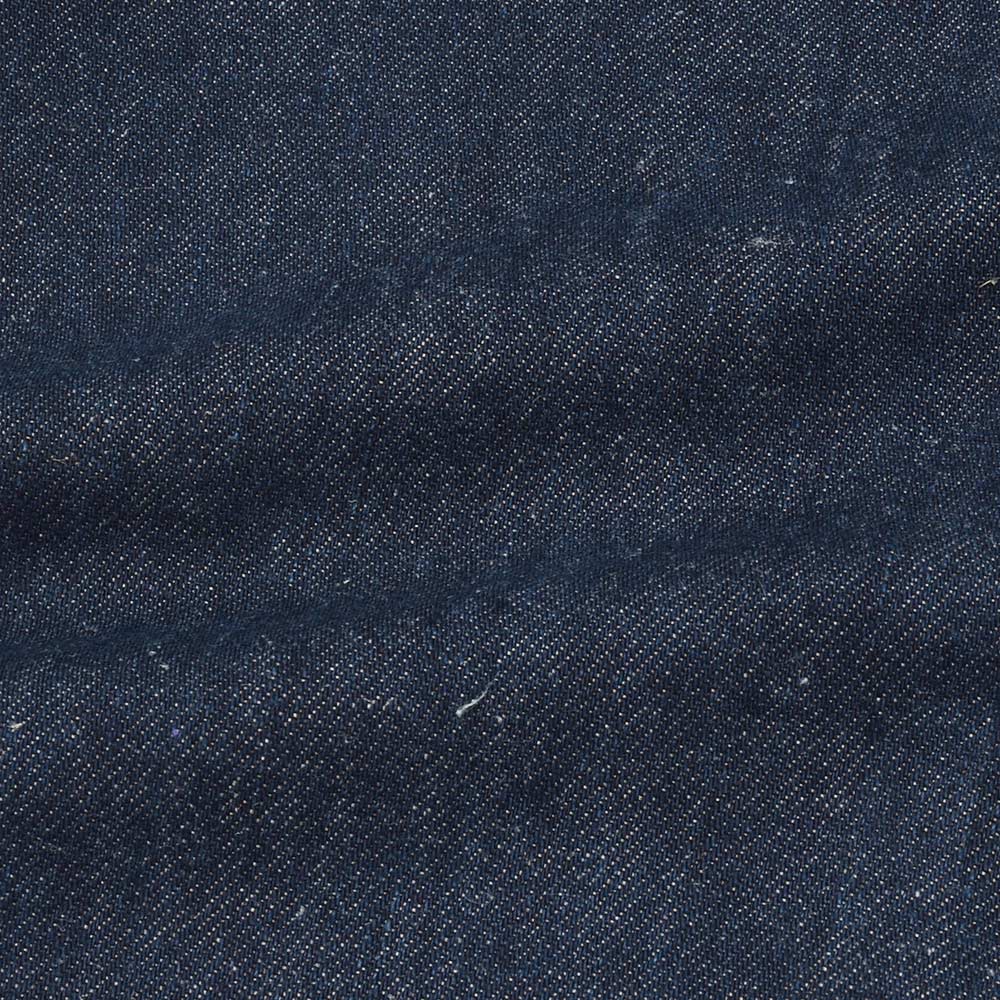 ワンウォッシュに近い色味のウォッシュド加工を施したこちらは、色落ちを抑えることで上品な雰囲気を作り上げています。また、リネンを混紡したデニム生地を使用しているため、リネンらしい少し節の残った表情に、少しドライなタッチが、通常のデニム生地に比べて夏でも清涼感を持って着用できます。ガンメタリックのボタンに、同色のステッチ、高級感のあるブラックスエードの革パッチが大人の色気を演出してくれます。