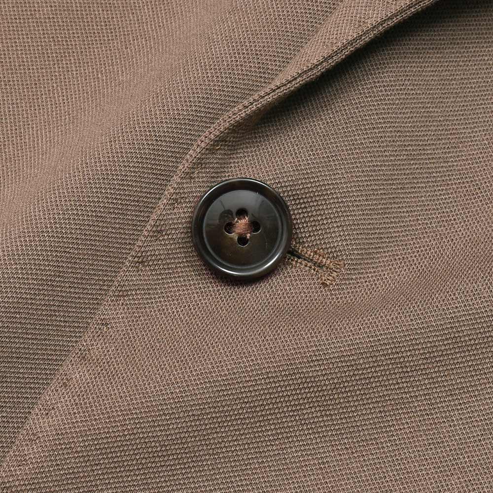サイズは48でジャストサイズです。肩まわりとダキがタイトですが、伸縮してくれるのでノンストレスです。ボディはちょうどいいサイジングです。定番ピケジャージーのジャケットです!