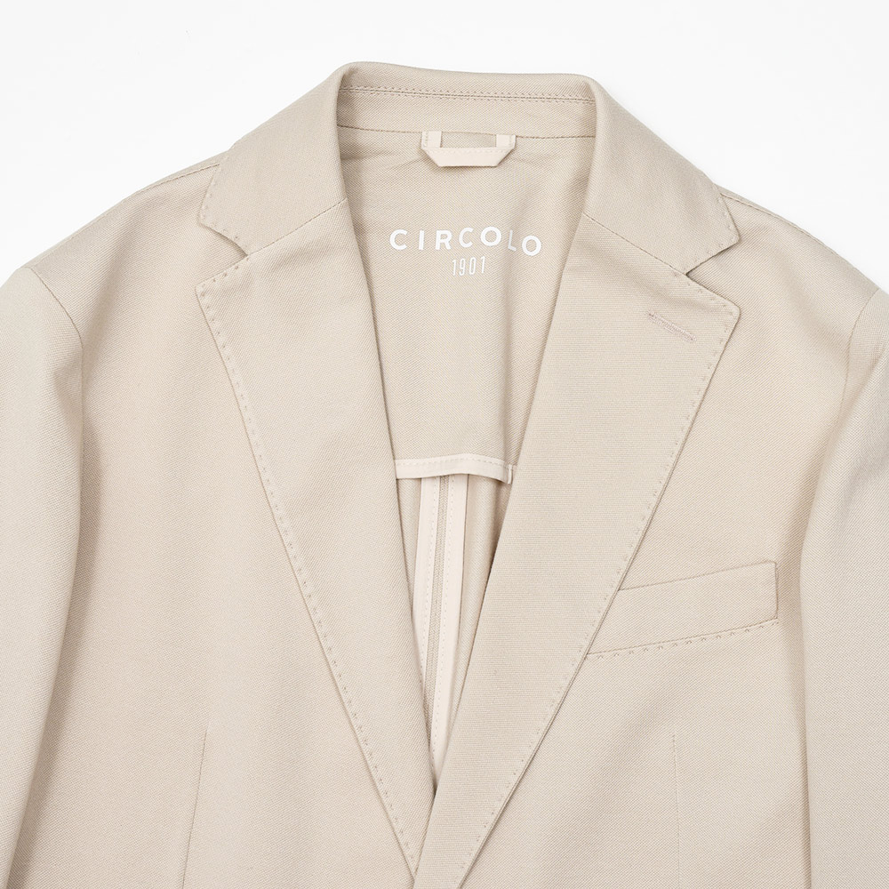 コンフォート素材を使用したセットアップの先駆者である、CIRCOLO 1901。コチラは、定番である“ピケ=鹿の子”よりもさらに目付を軽くし、上品な風合いに仕上げた“プレミアムピケ”を使用。清涼感は勿論のこと、さらには伸縮性を持ち合わせたジャージー素材というハイブリットな一着になります。