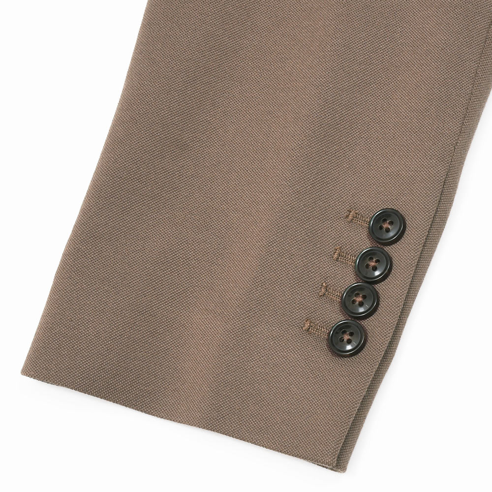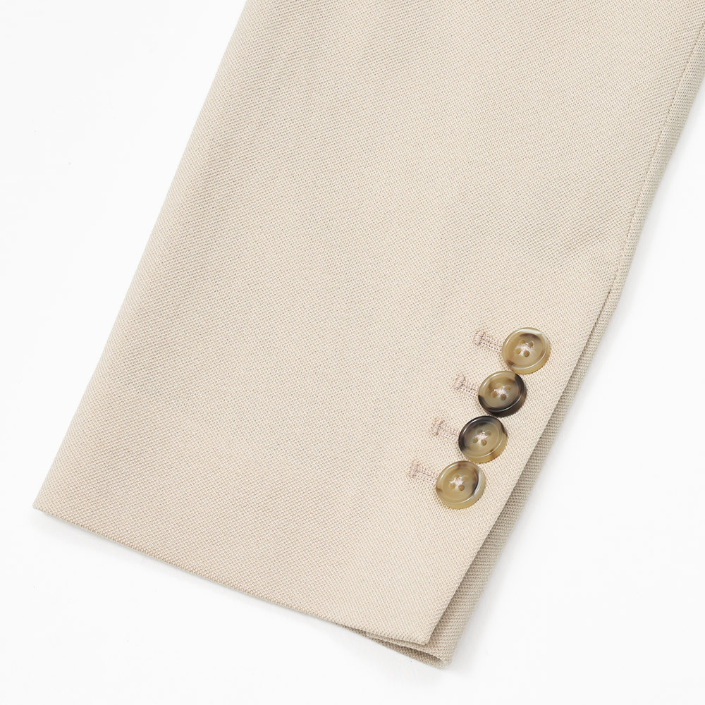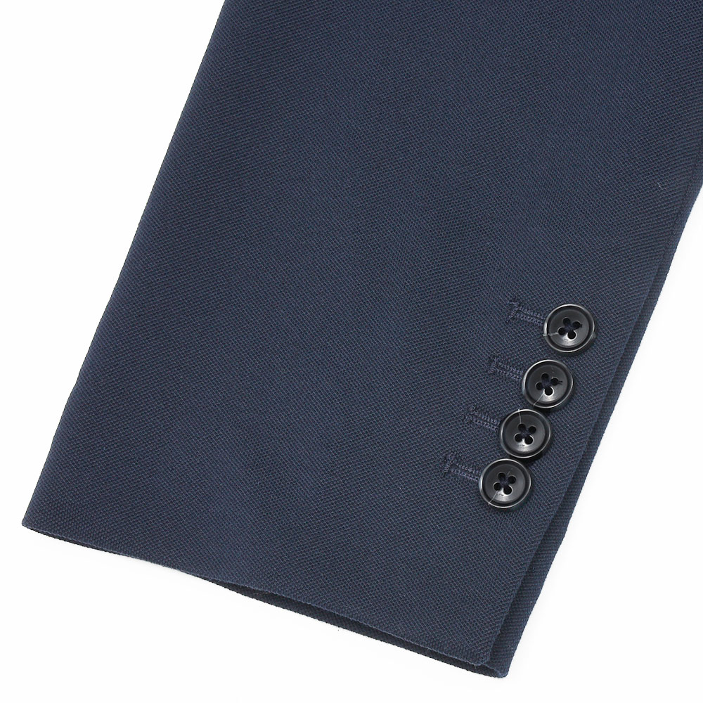 パッチポケット、サイドベンツ、ラペル巾8cm、袖は開き見せ4つボタン並び(袖詰めは肩からになります)です。