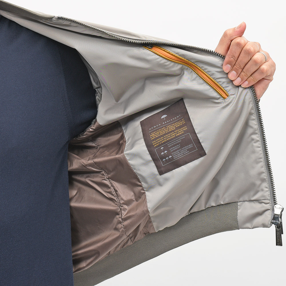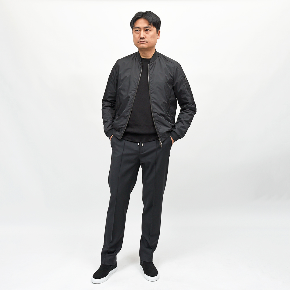 大人のナイロンアウターの代名詞と言っても過言ではない、MooRERによって生み出されたMA-1ブルゾンの“CORELLI(コレッリ)”。しなやかでマットな光沢を放つ上質なポリエステル素材に、ミリタリーブルゾンの定番であるMA-1が合わさったラグジュアリーなオーラ。特にMARMOはライトグレーにほんのりとベージュが合わさったような上品な色合いで、ラグジュアリーなMooRERの雰囲気とはベストマッチです。また、撥水加工を施したナイロン素材は、タフな仕様にも耐えてくれる実用性に富んだ一品となっています。