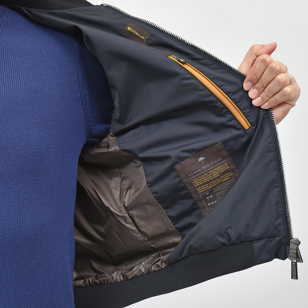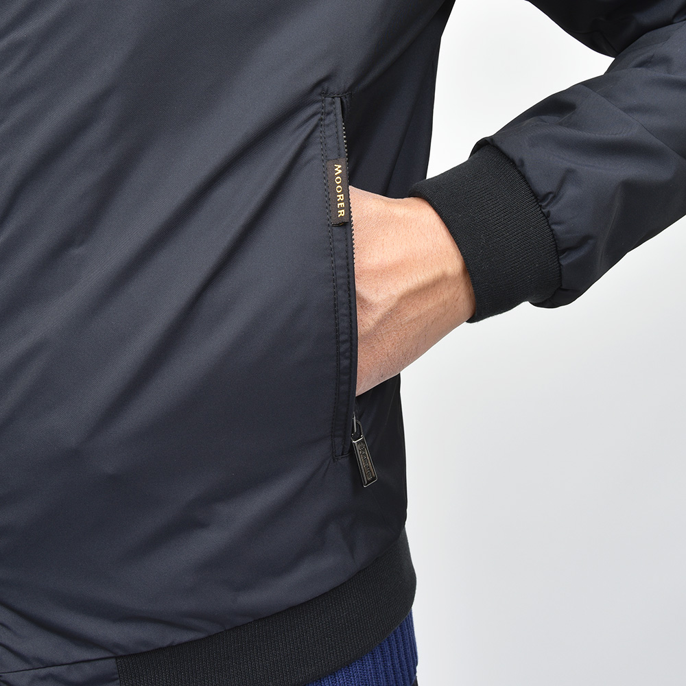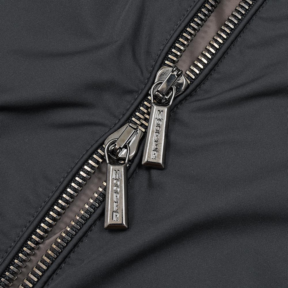 特注のスナップボタン、ファスナーやホーン釦などの拘りに、裏地のナイロン素材の美しさ加えてパイピング処理を施した丁寧な仕上げ。MooRERのアウターに死角はありません。