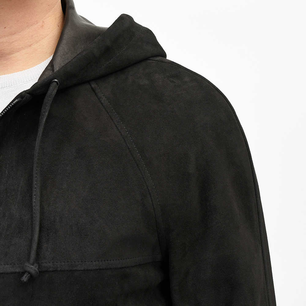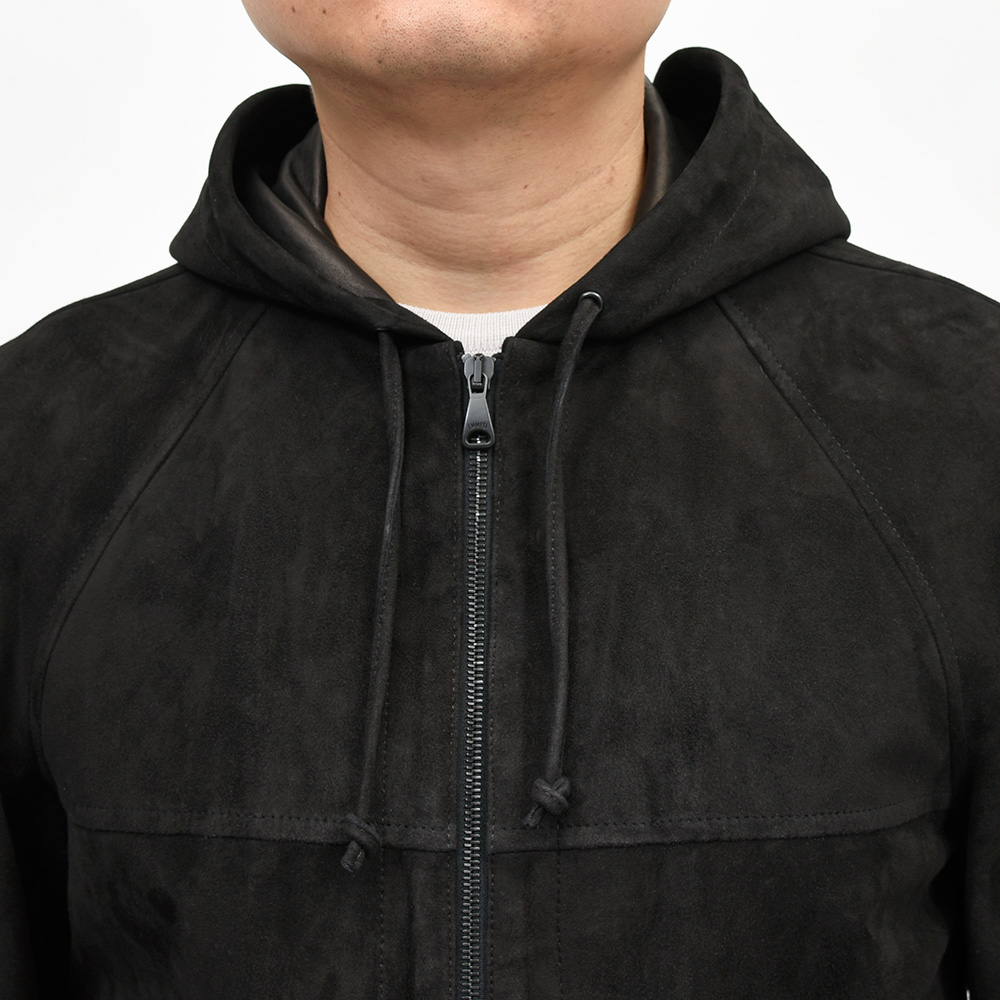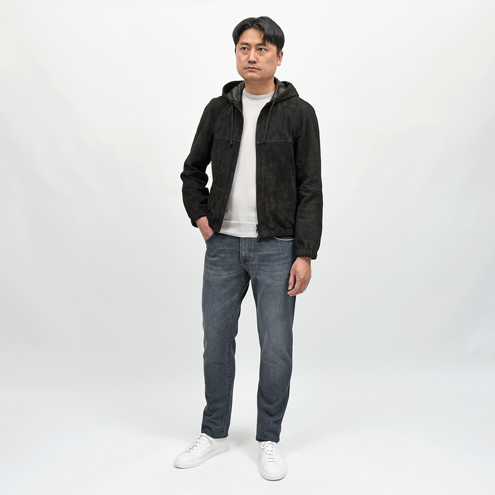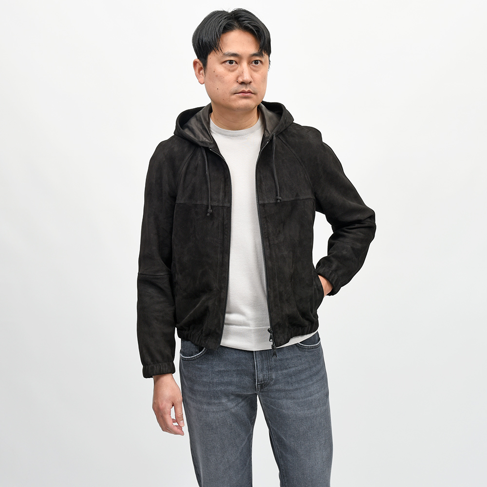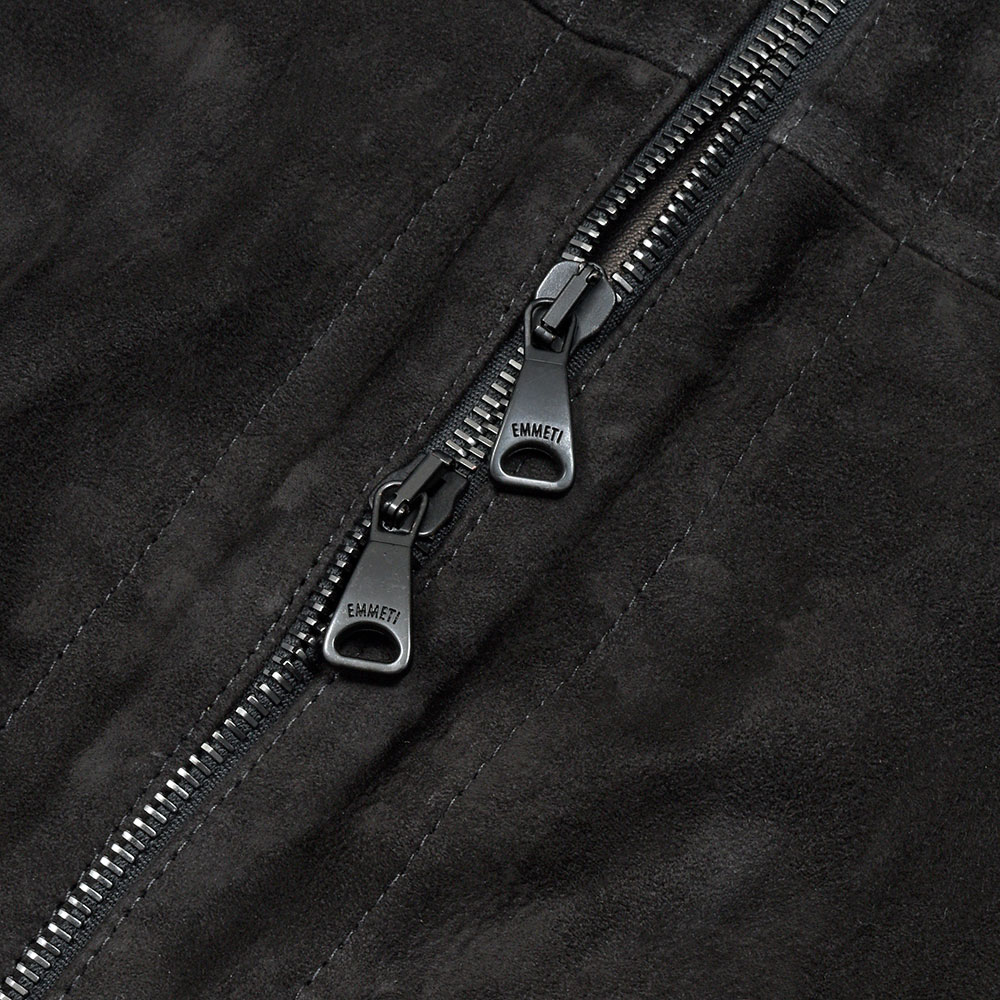 通常ラグジュアリーブランドで使用されているクオリティのレザーを、限りある着数分だけオーダーできる“SPレザー”シリーズ。こちらはEMMETI社で定番のゴートスエードよりも、少しだけ薄手なラムスエードを使用しています。滑らかで柔らかな質感に、非常にきめ細やかでしっとりとした滑りのあるタッチが高級感を漂わせています。
