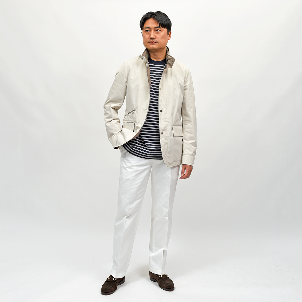 現代的な雰囲気の中に少し感じるミリタリーの香りが、大人の上品なカジュアルスタイルには丁度良い塩梅です。