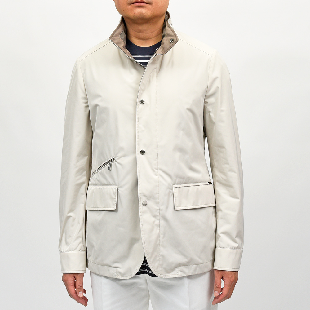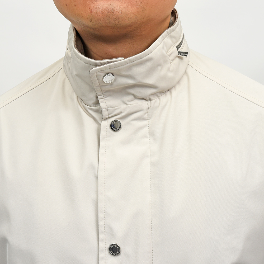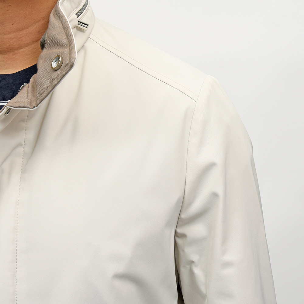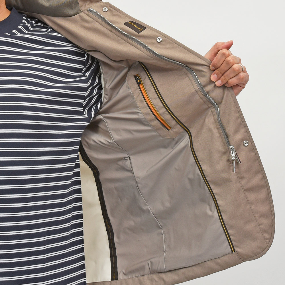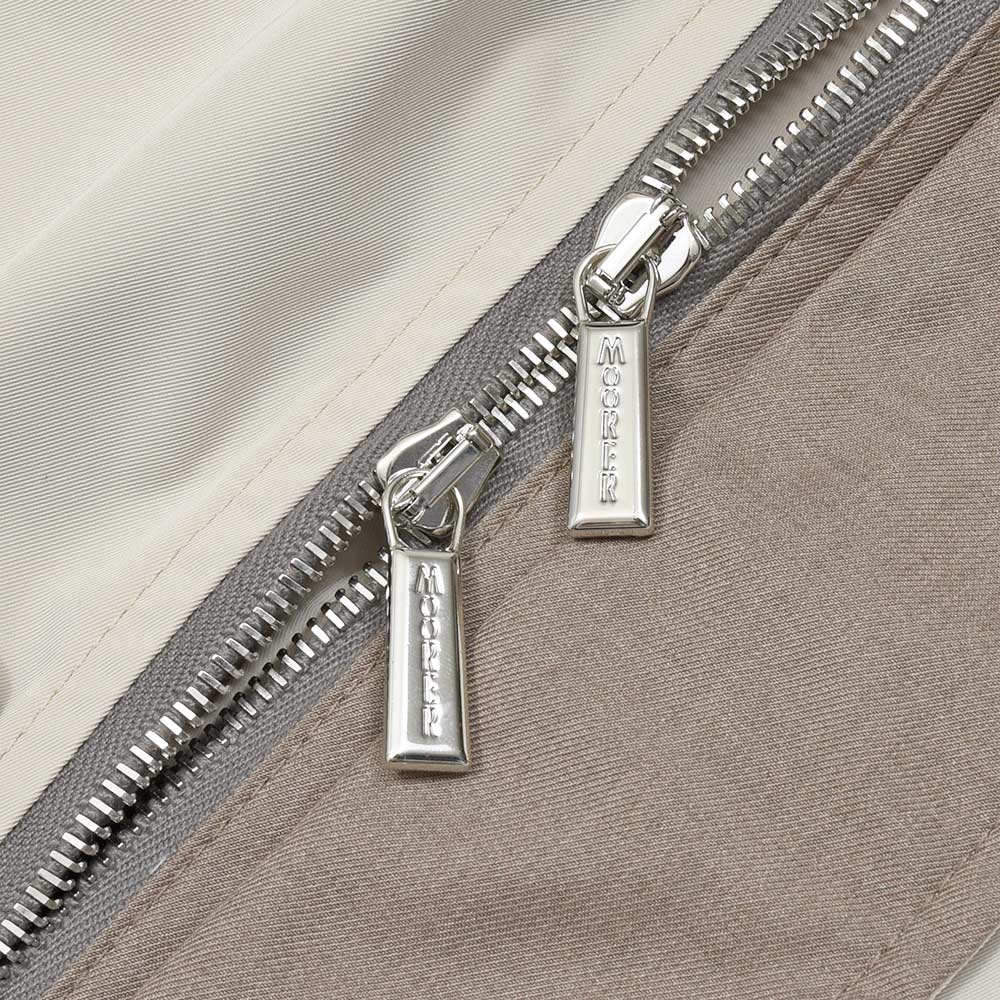 特注のスナップボタン、ファスナーやホーン釦などの拘りに、裏地のナイロン素材の美しさ加えてパイピング処理を施した丁寧な仕上げ。MooRER(ムーレー)のアウターに死角はありません。