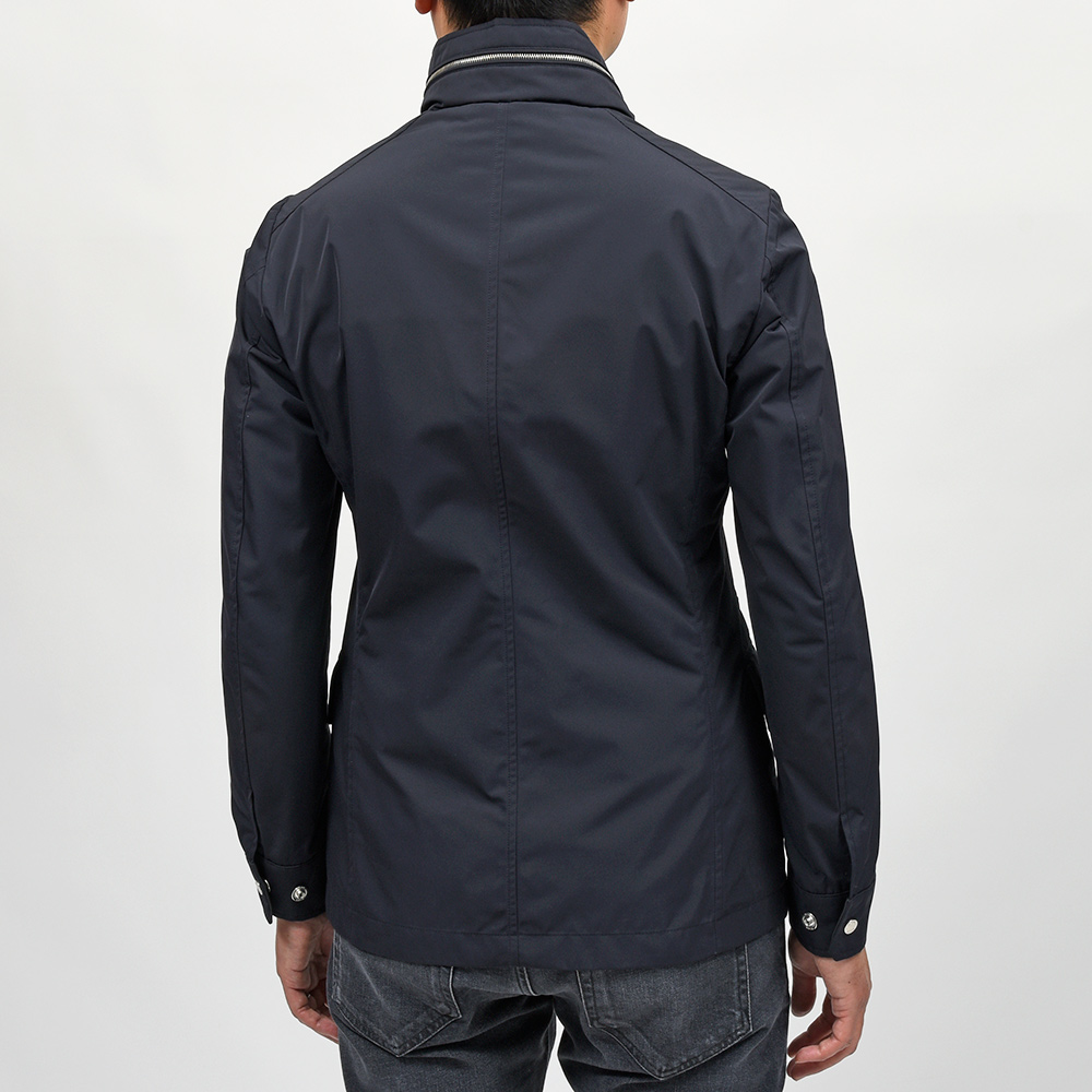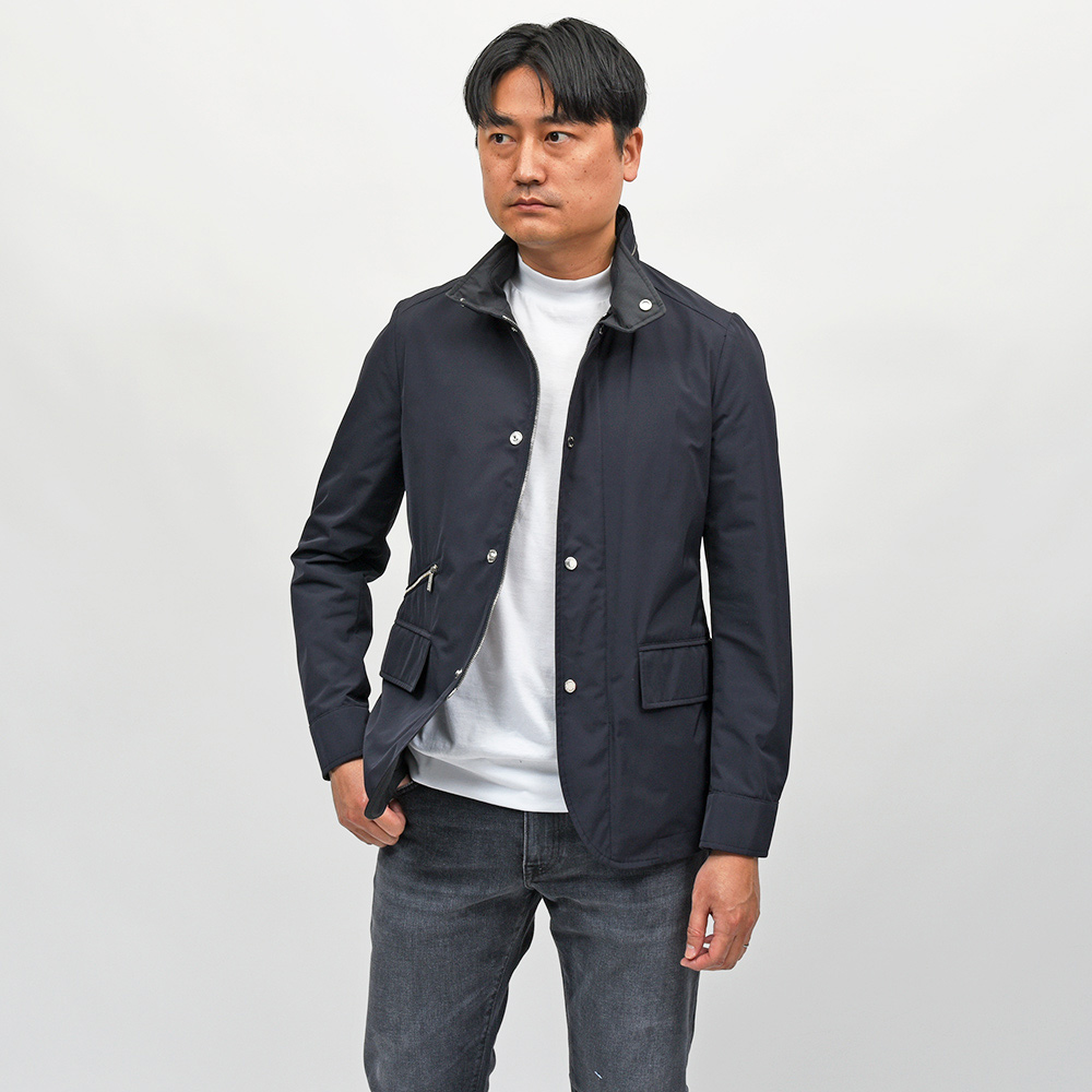 定番のフィールドジャケットモデル“PORTO”をモダンにアレンジした、ニューモデル“STEN(ステン)”。風の侵入をシャットアウトするスタンドカラーに、ジップアップとスナップボタンによるフロントの前立て。フィールドジャケットらしいスタンドカラーに収納された薄手のフードや、前身頃の裾をラウンドさせたディティールが採用されています。また、使用されているシェルはハリとコシのあるポリエステルツイル。シワになりにくく、デイリーユースでの着用に向いています。