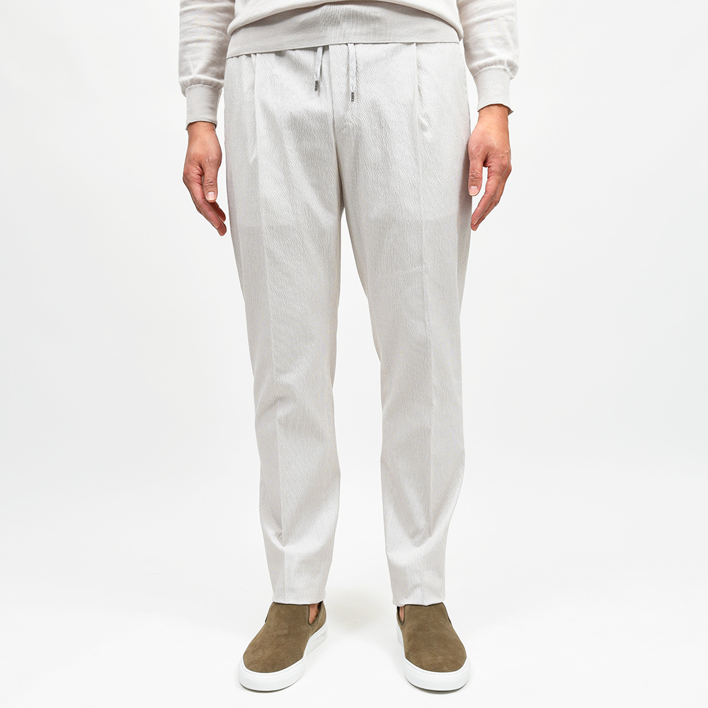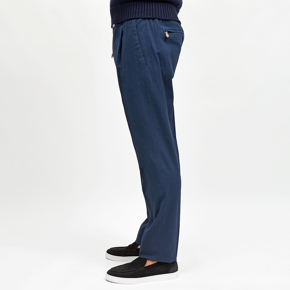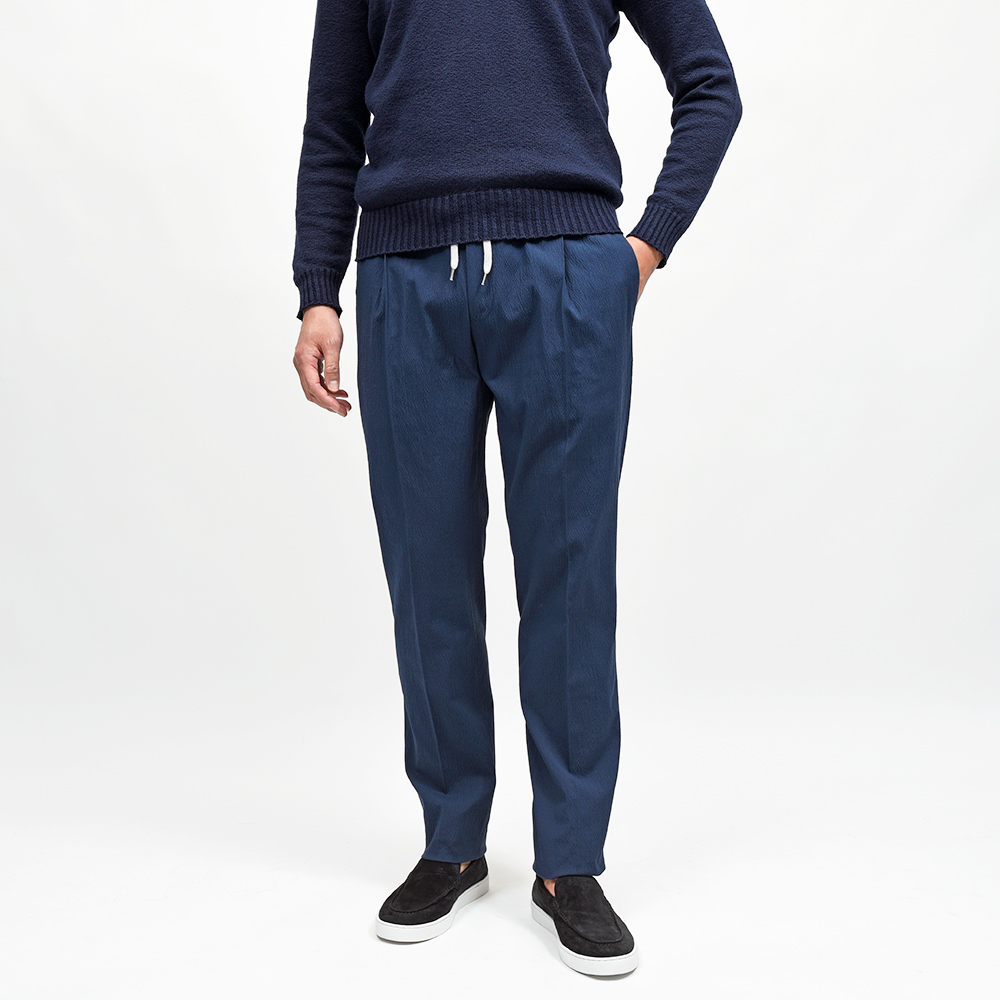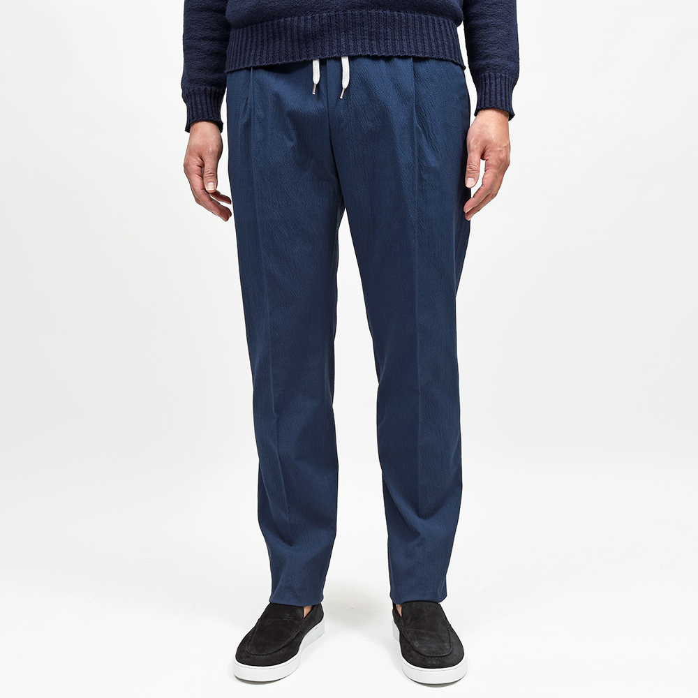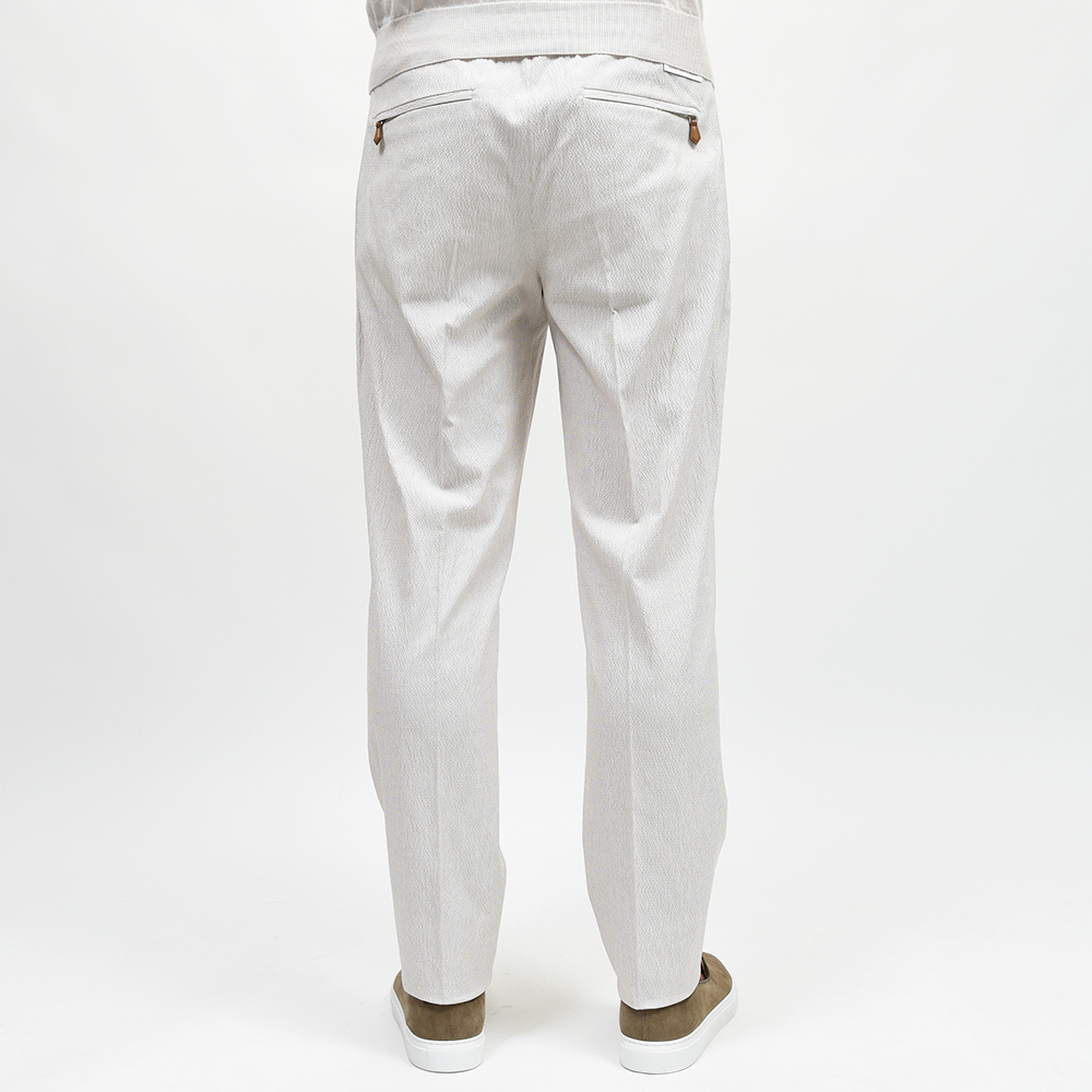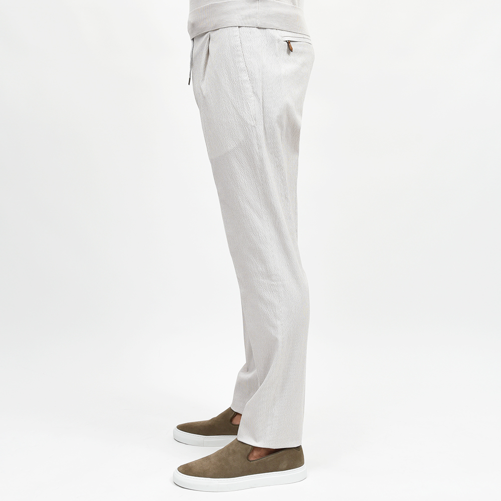しなやかで柔らかな軽い目付けのシアサッカーは、清涼感と穿き心地の良さを両立した夏場に欠かせない一本です。