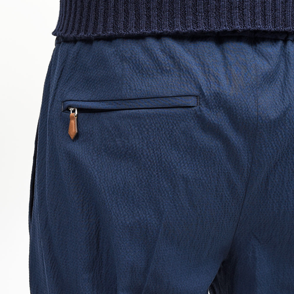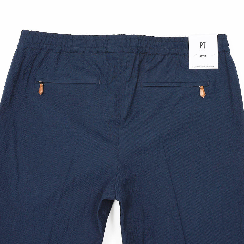 ウエスト部分がドローコード&シャーリング仕様の、程よいリラックス感あるシルエットが魅力の“SOFT FIT”。やや深めの股上に1プリーツ仕様が、程よい腰回りのゆとりを表現しています。しかしながら、テーパードを効かせることでスッキリとしたPT TORINOらしい上品なシルエット。また、バックポケットはジップ仕様となっており、レザーの持ち手が高級感をもたらせます。その為、他ではないワンランク上の雰囲気があるリラックスパンツとなっています。