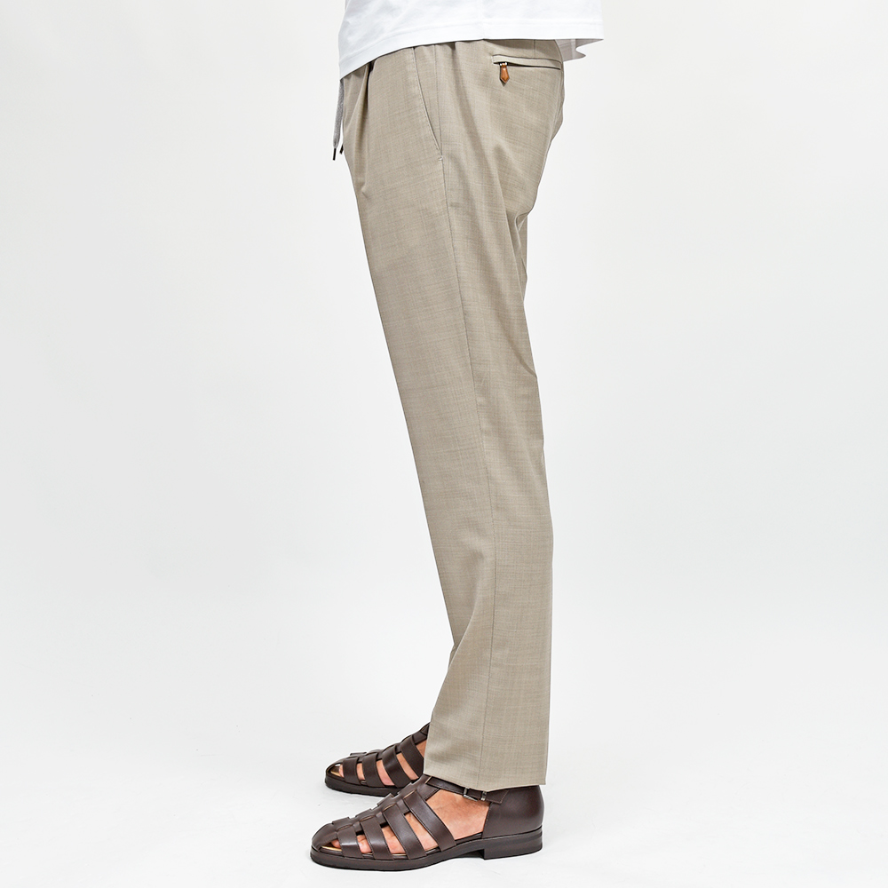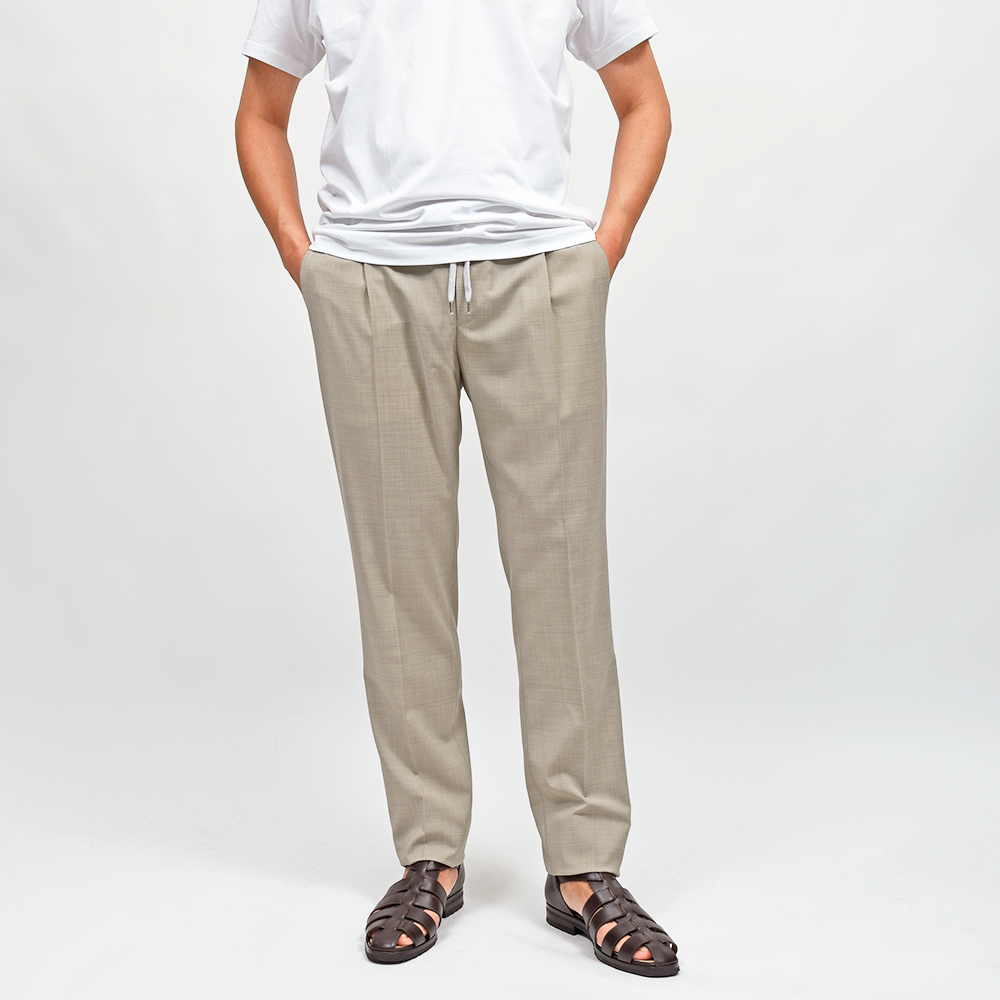 目付け260gの“WASHABLE STRETCH TECHNO WOOL”と名付けられたこちらは、一度穿くとやめられないビジネスパンツの金字塔”Travel”シリーズ。言わずもがなのストレッチが効いたバツグンの穿き心地に、トロピカルウールのドライなタッチは蒸れる日本の風土にぴったり。使用されているポリエステルとウールの混紡素材は柔らかでシワになりにくく、立ったり座ったりを繰り返すビジネスシーンにおいて必須となる機能性。そして何よりも自宅で洗濯でき、アイロンをかける事でシワもスムーズに伸びます。 また、大人のためのリラックスパンツを謳う“SOFT FIT”ですので、リラックスした雰囲気を高めてくれるストレッチ素材は好相性。トロピカル生地の上品な質感ですので、ラフなジャケットと合わせてもすんなりと馴染んでくれます。