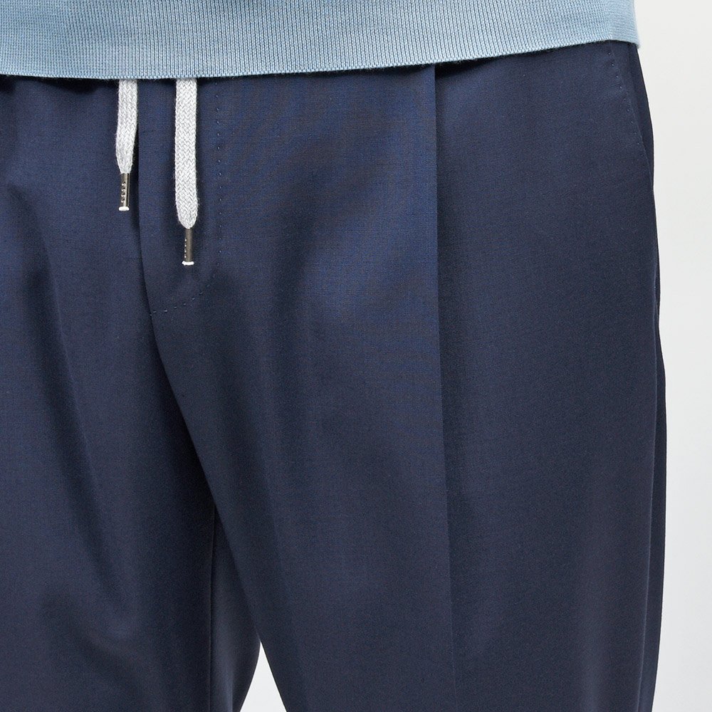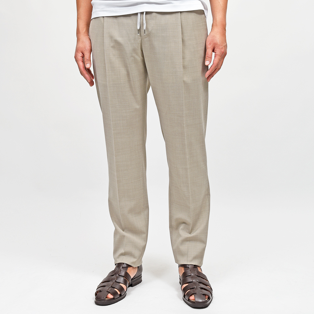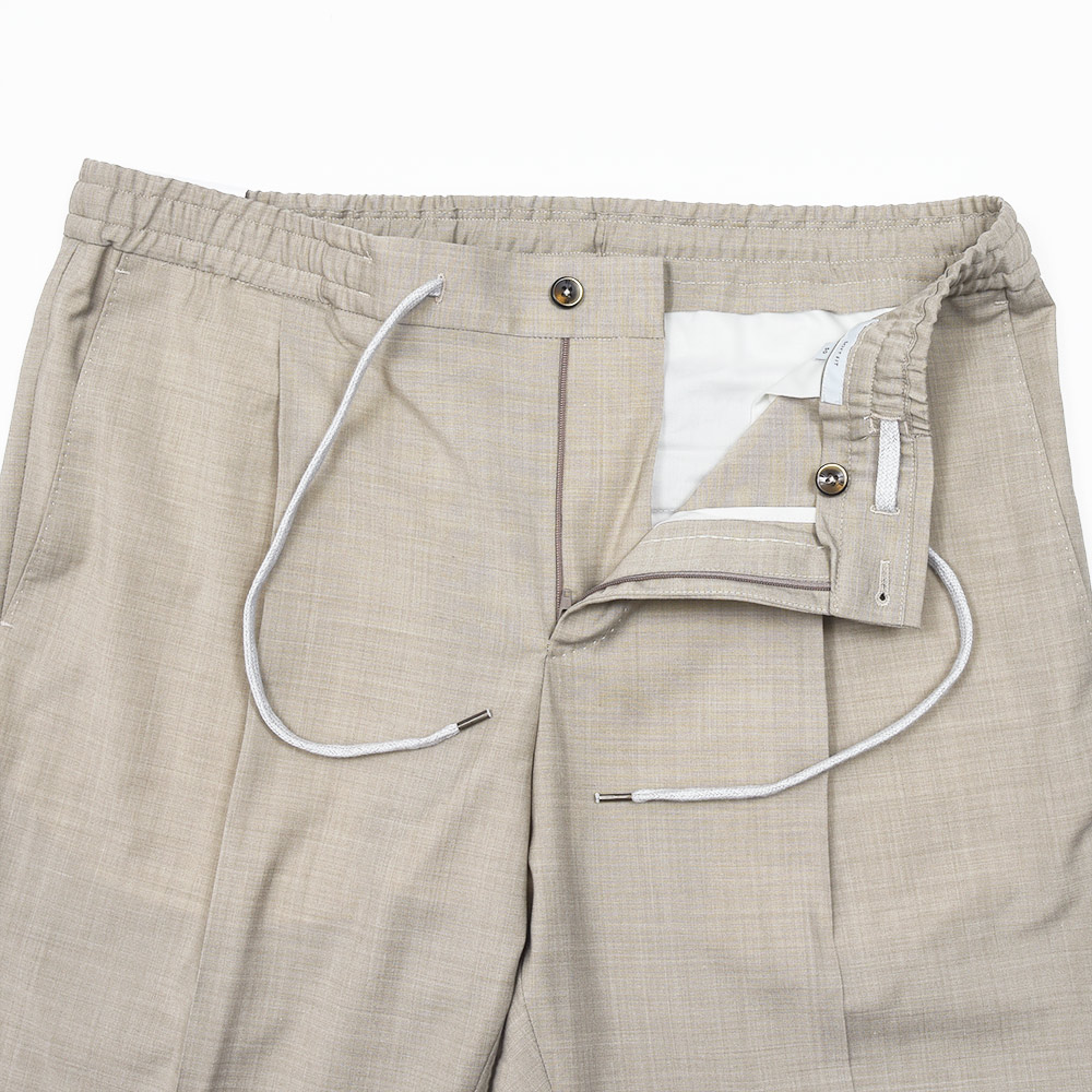 ウエスト部分がドローコード&シャーリング仕様の、程よいリラックス感あるシルエットが魅力の“SOFT FIT”。やや深めの股上に1プリーツ仕様が、程よい腰回りのゆとりを表現しています。しかしながら、テーパードを効かせることでスッキリとしたPT TORINOらしい上品なシルエット。また、バックポケットはジップ仕様となっており、レザーの持ち手が高級感をもたらせます。その為、他ではないワンランク上の雰囲気があるリラックスパンツとなっています。