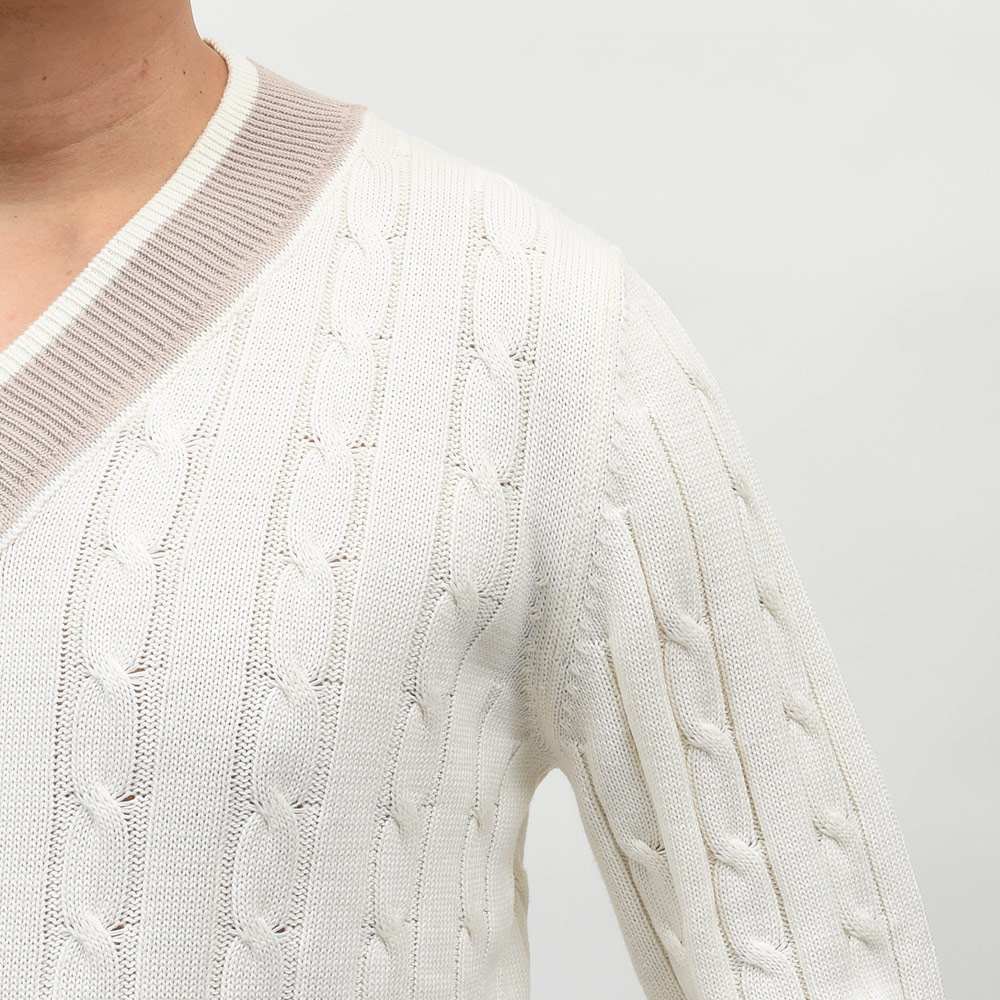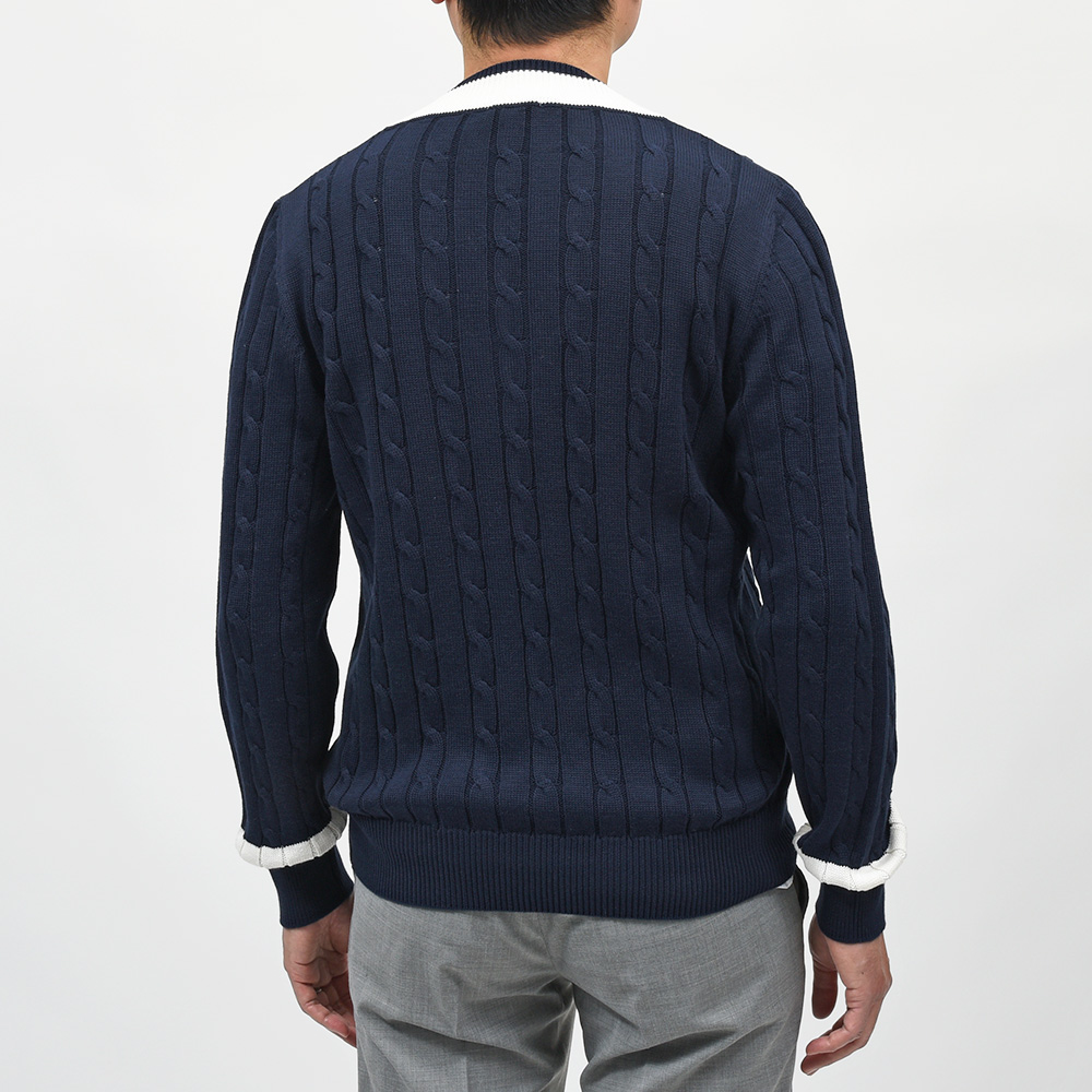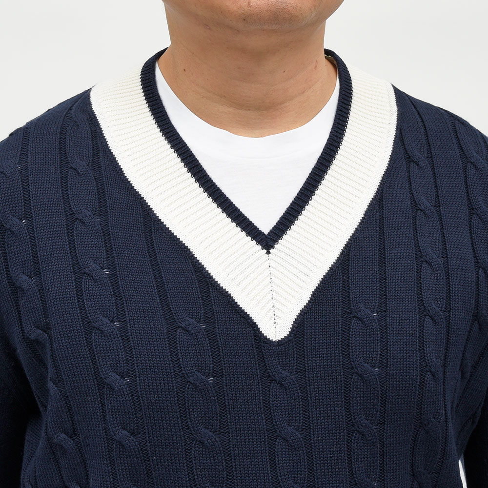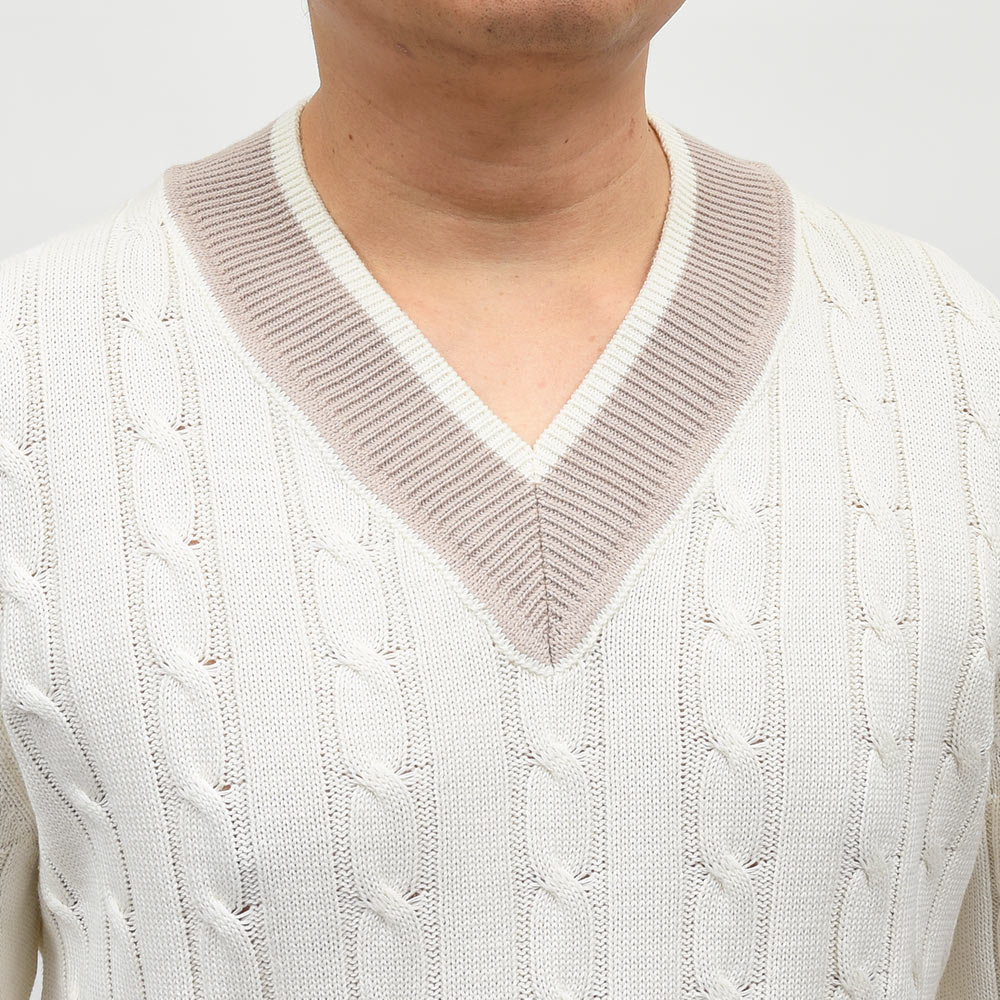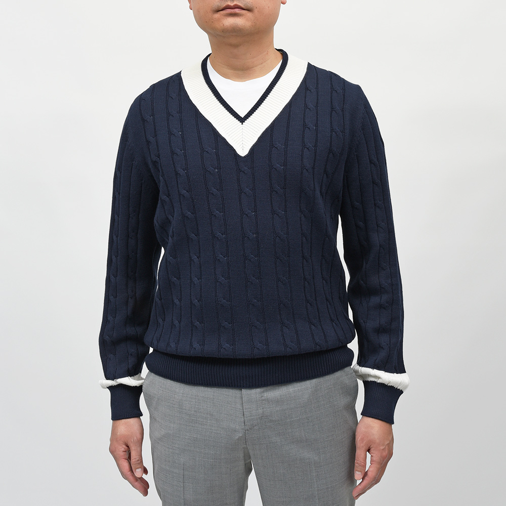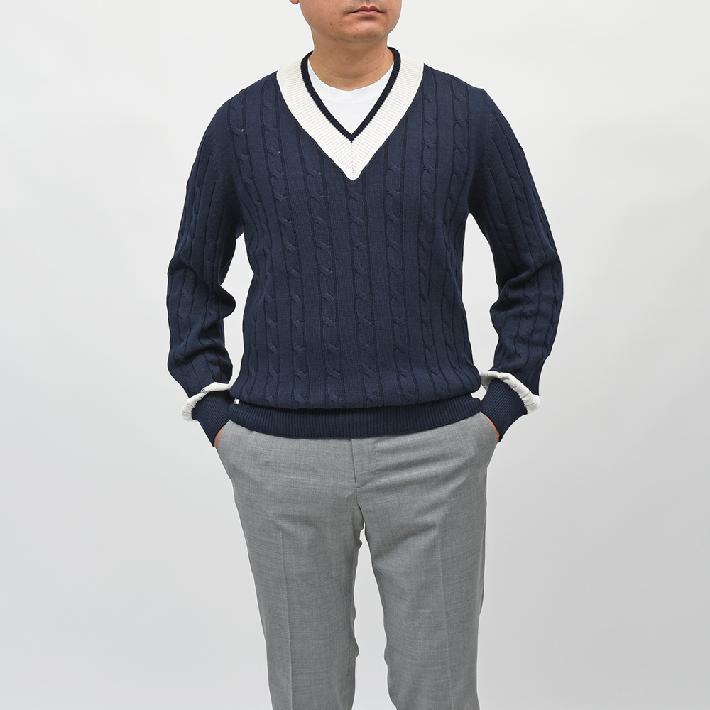 コットン ケーブル Vネック チルデンニット
