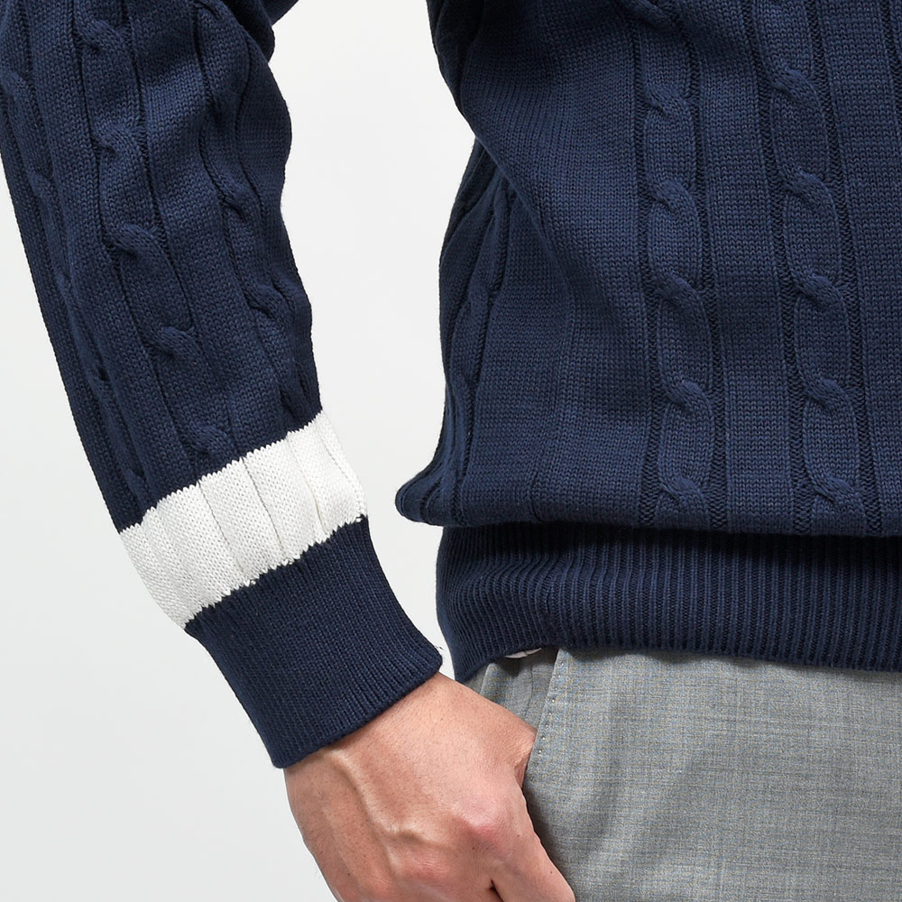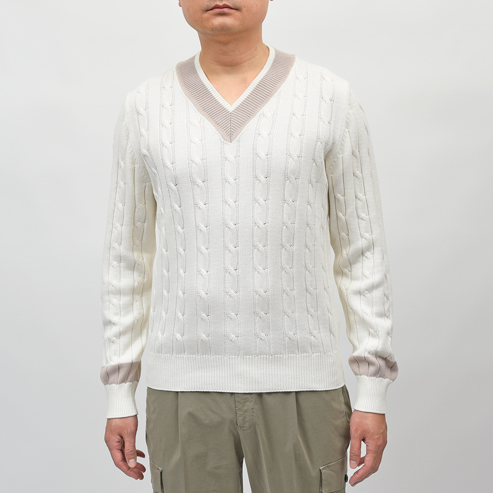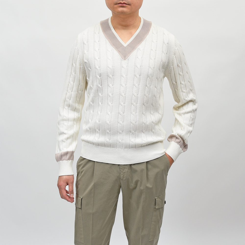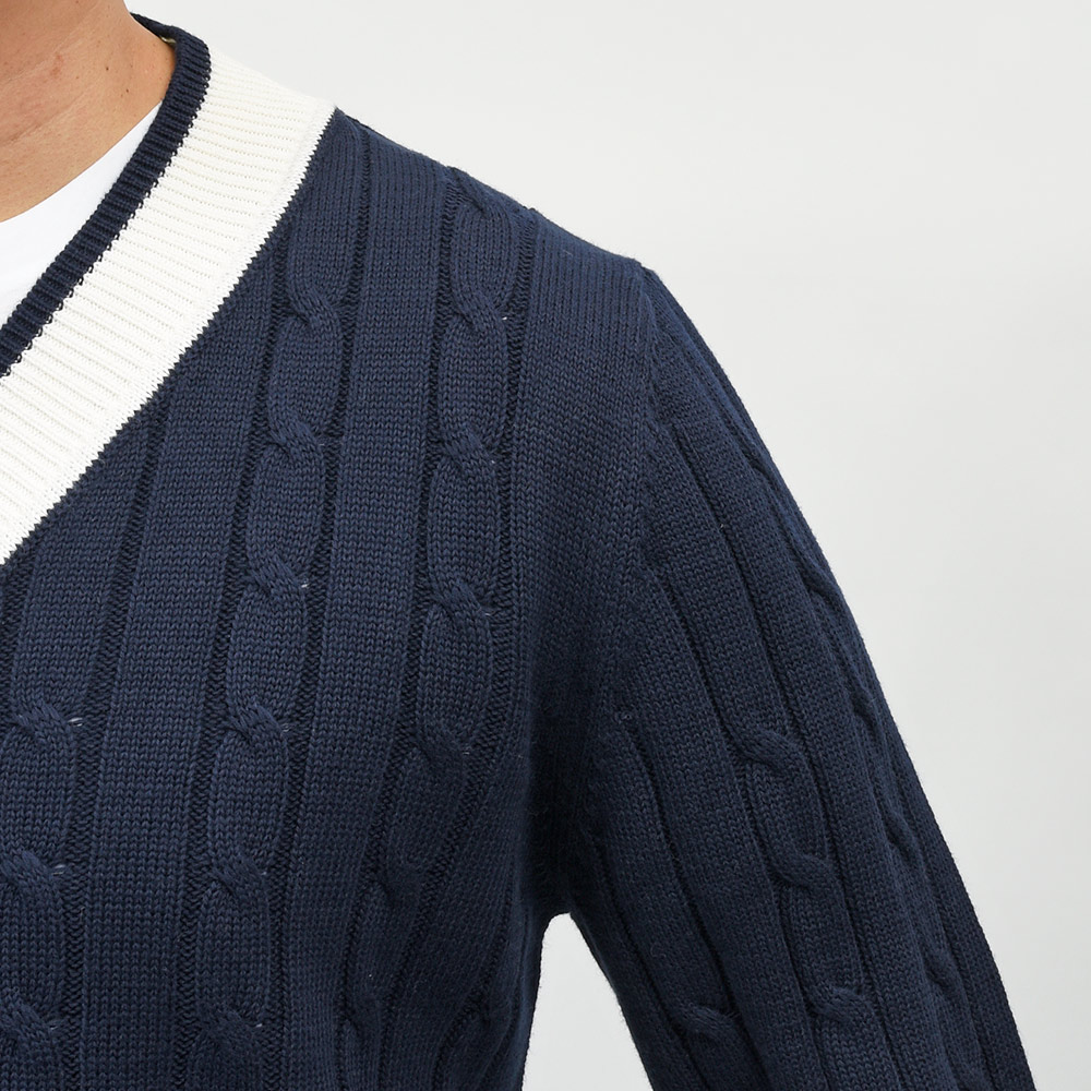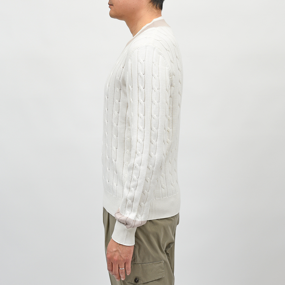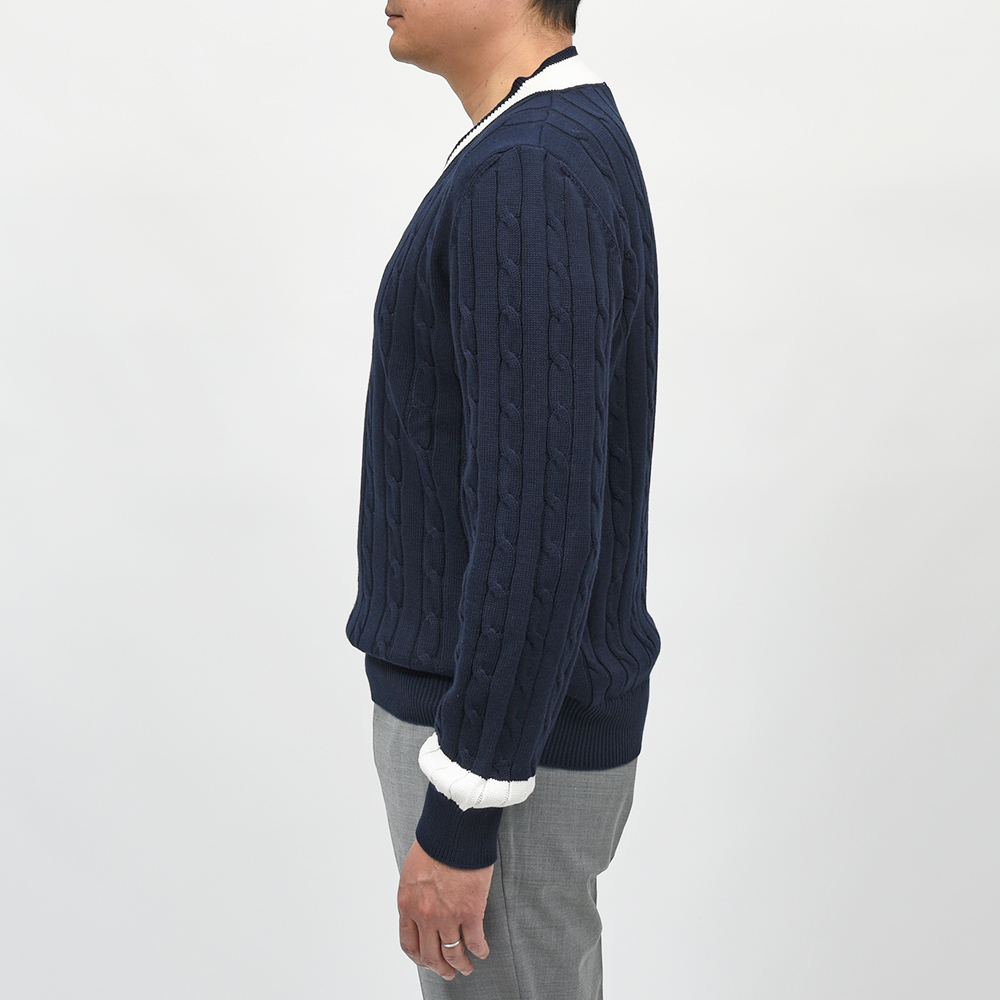 コットン ケーブル Vネック チルデンニット