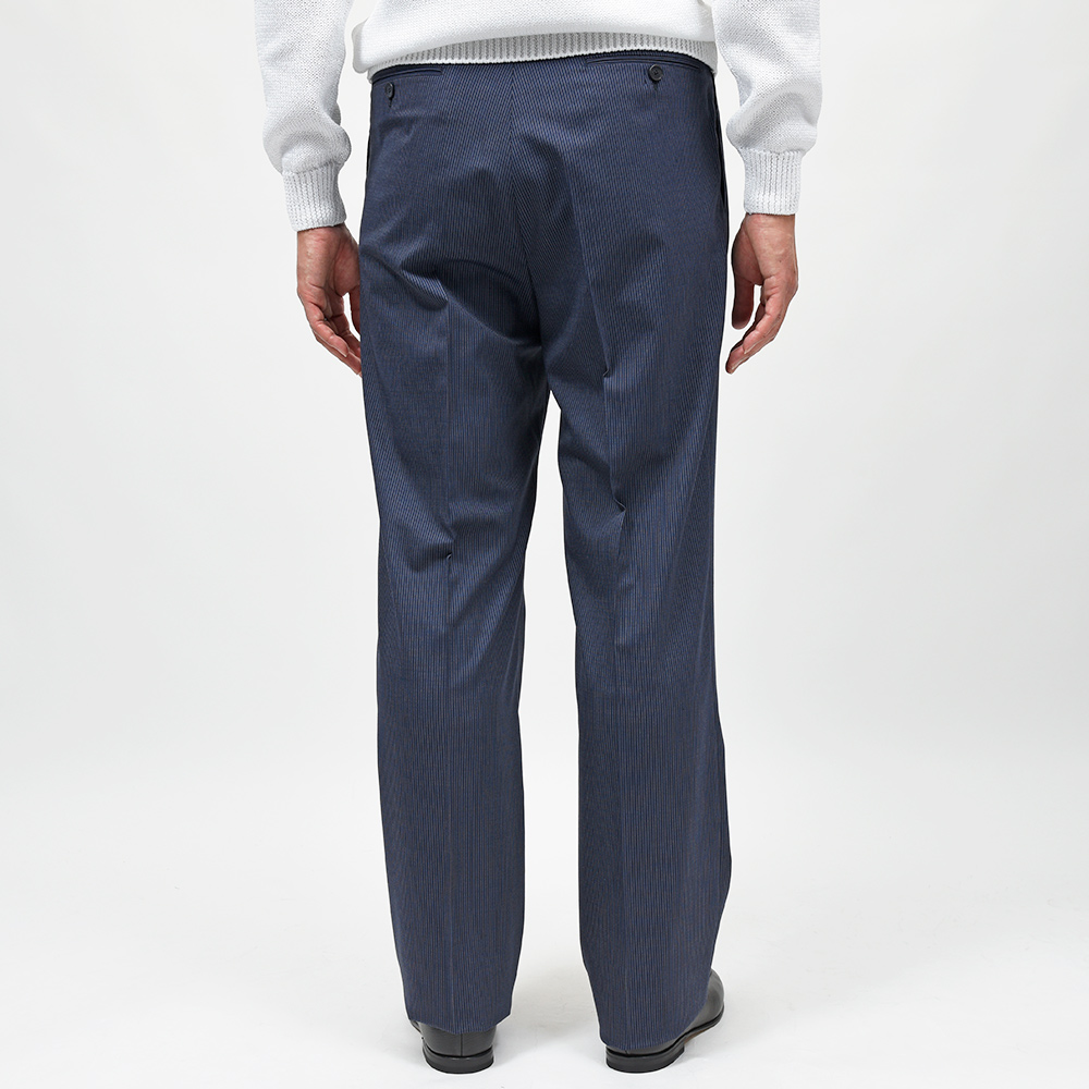 目付け230gの軽くなめらかなトロピカル生地は、“VOYAGE TRAVELWEAR”シリーズのファブリックになります。ストレスのない程よくストレッチが効いた穿き心地に、撥水・防シワ・防汚といった機能を兼ね備えています。その名の通り旅行や出張で長時間のフライトはもちろんの事、日常生活でも非常に役立つ一本となっています。