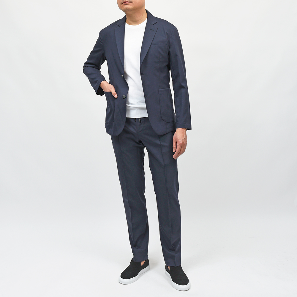ウール見えするテクノウールだからこそ、ジャケット単体はもちろんセットアップでも活躍してくれる頼りになる名品です。