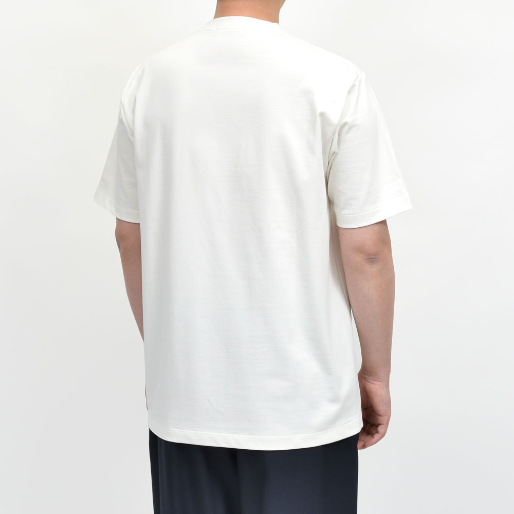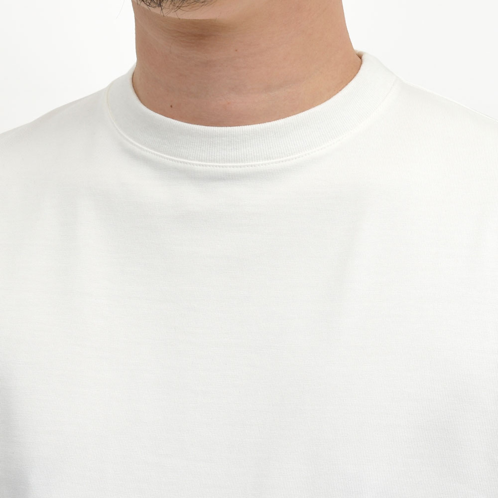 ジャケットやアウターのインにゴワつくことなく着られますし、一枚着としても様になる仕上がりで、ドレスとカジュアルを垣根なく愛する小山氏らしいカットソーと言えるのではないでしょうか。