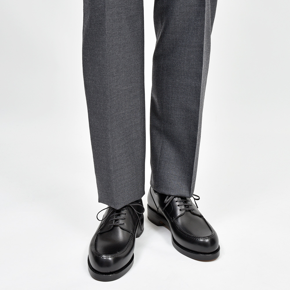Uチップシューズのモデル“FG584”。ハンドソーンウェルテッド製法で仕上げられており、ダブルソールながら側面の湾曲とコバのバランスが秀逸な一品。カーゴパンツやワークパンツといったアイテムは勿論ですが、ジャケットにウールスラックスといったドレススタイルにもハマる汎用性があります。