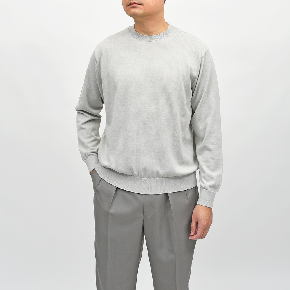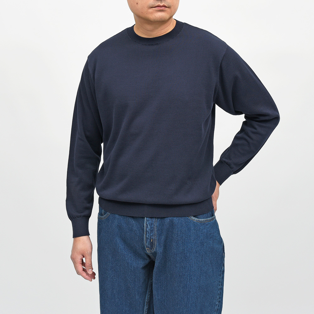 オールシーズン着用できる、新たな定番ニットとして開発されたクルーネックニット。毛羽立ちを抑えたコンパクトスピンコットン糸を使用することで、程よくハリのあるさらりとした風合いに。加えて、洗濯に強く自宅で手洗いできる、ワードローブに一枚は欲しい便利なベーシックニットになります。