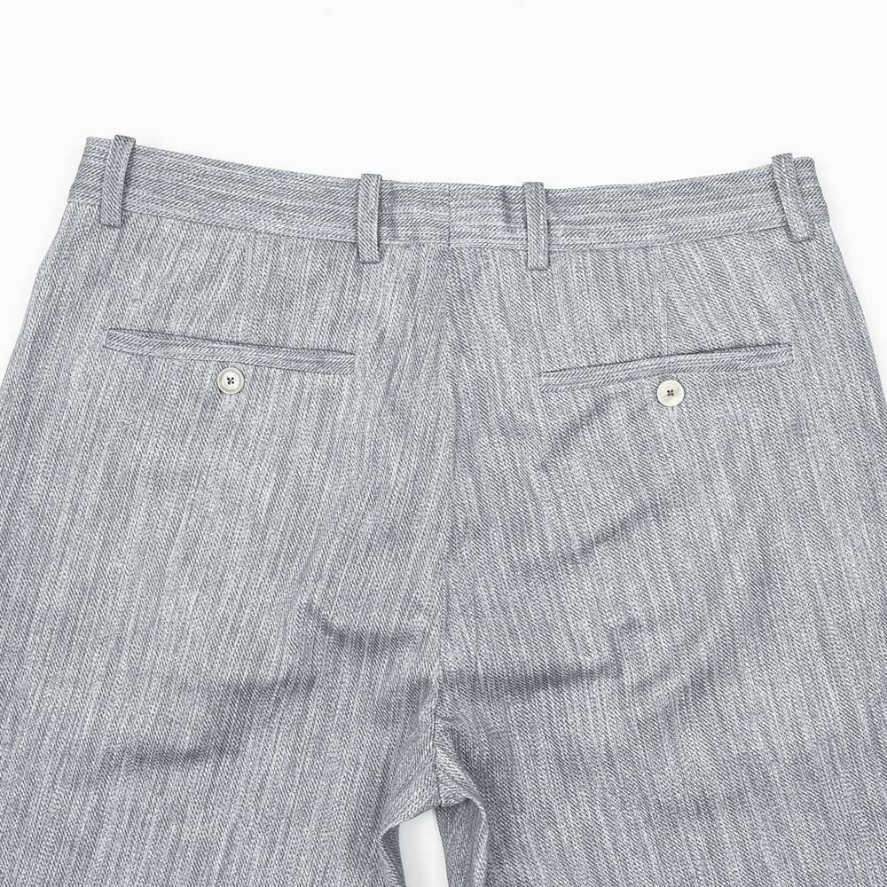 こちらはベルトループ付きのノープリーツスラックス。定番のモデルに比べて股上や渡りを少しだけ大きくし、テーパードを少し緩やかにしたモデルになります。