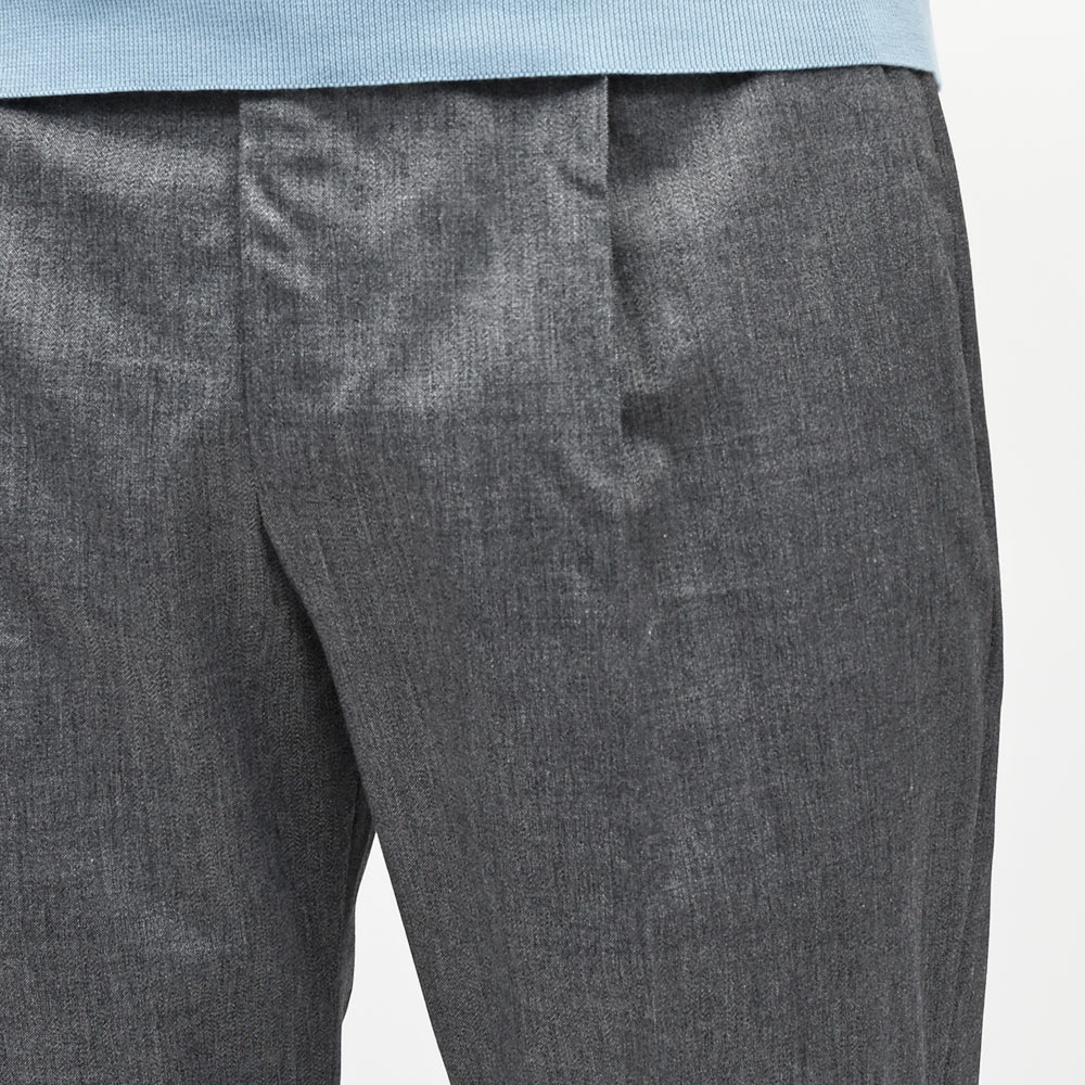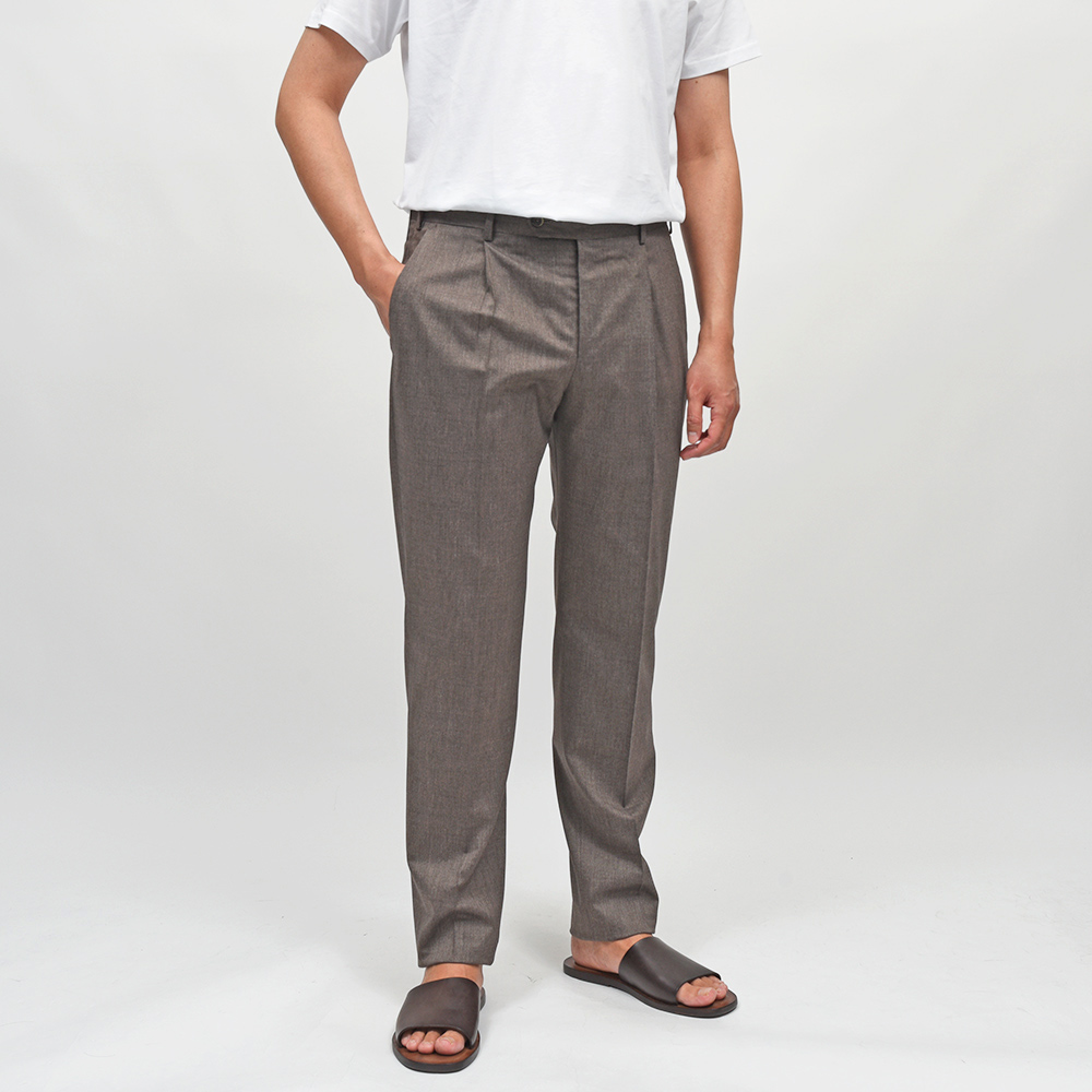 程よく個性のある生地の風合いがスタイリングを盛り立ててくれつつも、程よい清涼感があることで実用性にも隙のない一本です。