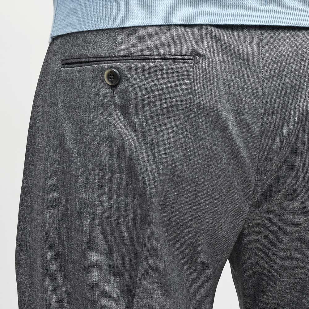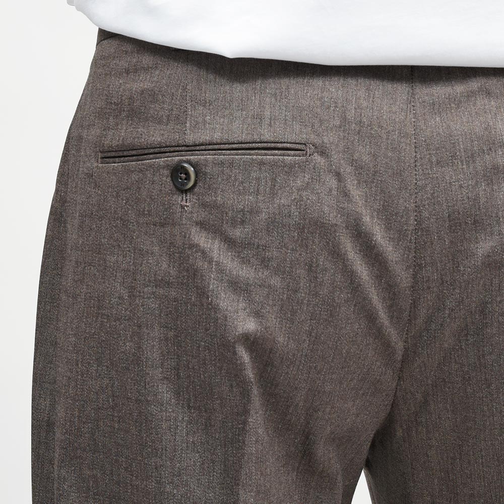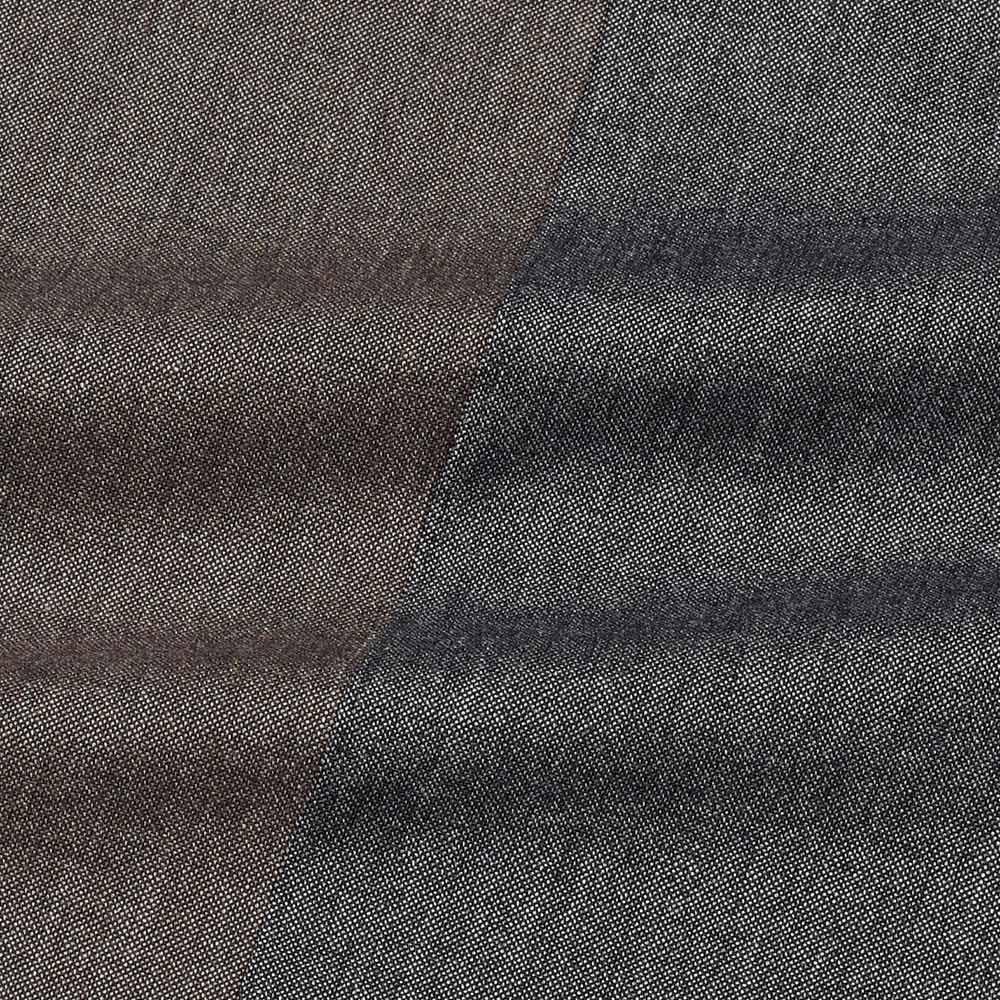 ヴァージンウールをメインに、コットンとレーヨンを混紡したオックスフォード生地。目付けは250gと軽く、オックスフォードの特徴である通気性と柔らかさを兼ね備えています。ヴァージンウールの上品な艶感を持ちながら、しなやかさとストレッチ性があることで、キレイめにもカジュアルにも合わせられる雰囲気を持っています。