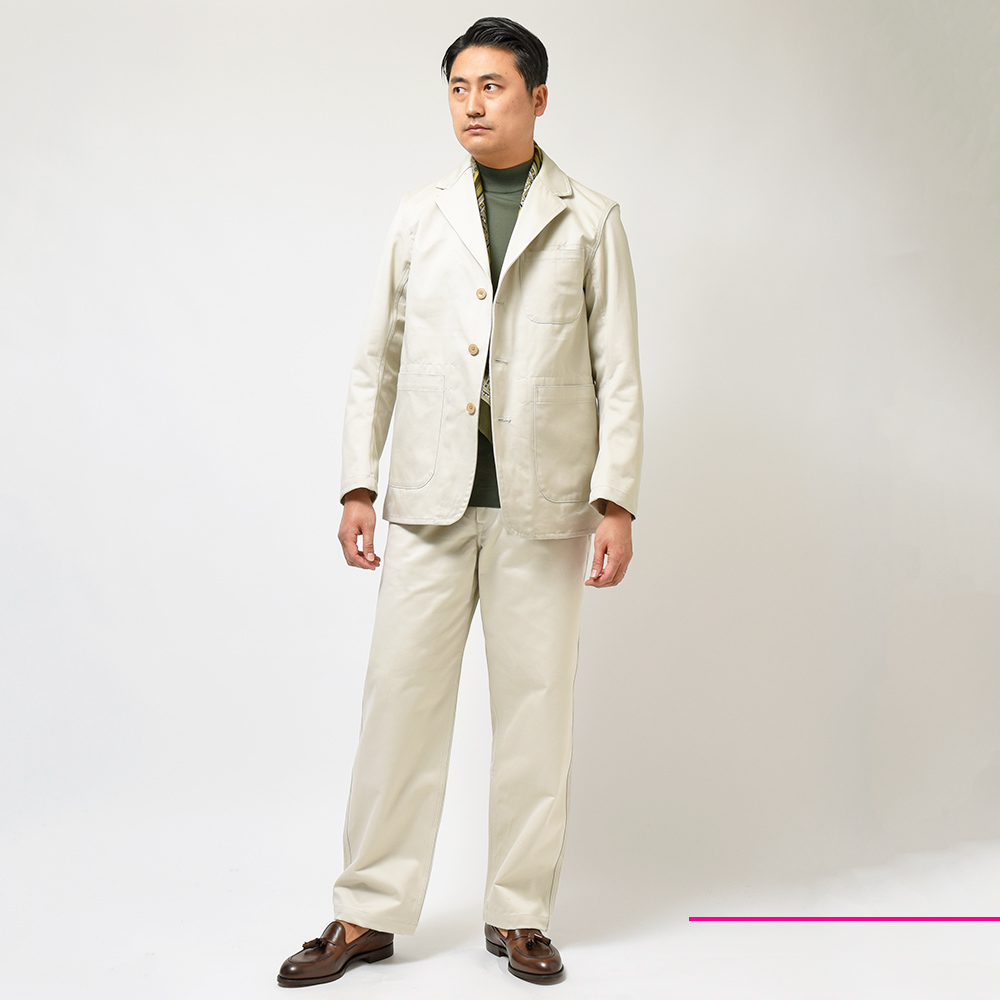 こちらのジャケットは、SCYE BASICSのチノパンツ(別売)とセットアップでお使いいただけます。