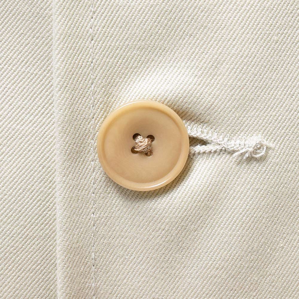 ワークジャケットをベースとした、ウエストの絞りが少ないボックスに近いシルエットのこちら。カリフォルニアSan Joaquin Valley(サンホアキンバレー)産のコットンを使用した、Scyeのオリジナルファブリックになります。アメリカ綿特有のドライな質感とハリがあるチノクロスは、洗濯や着用を繰り返すことでパッカリングが生まれ、よりワークな雰囲気のある一着へと育っていきます。