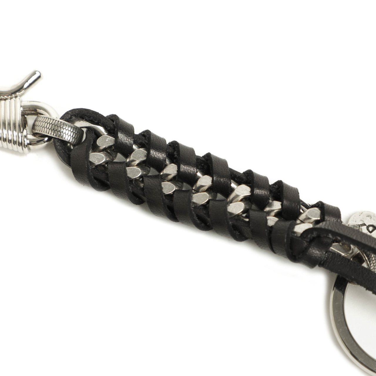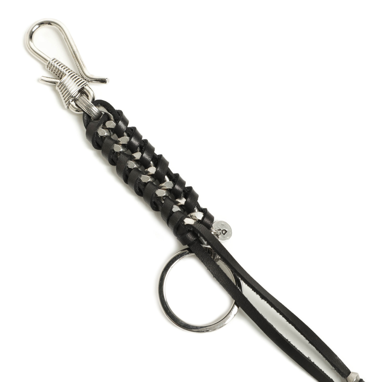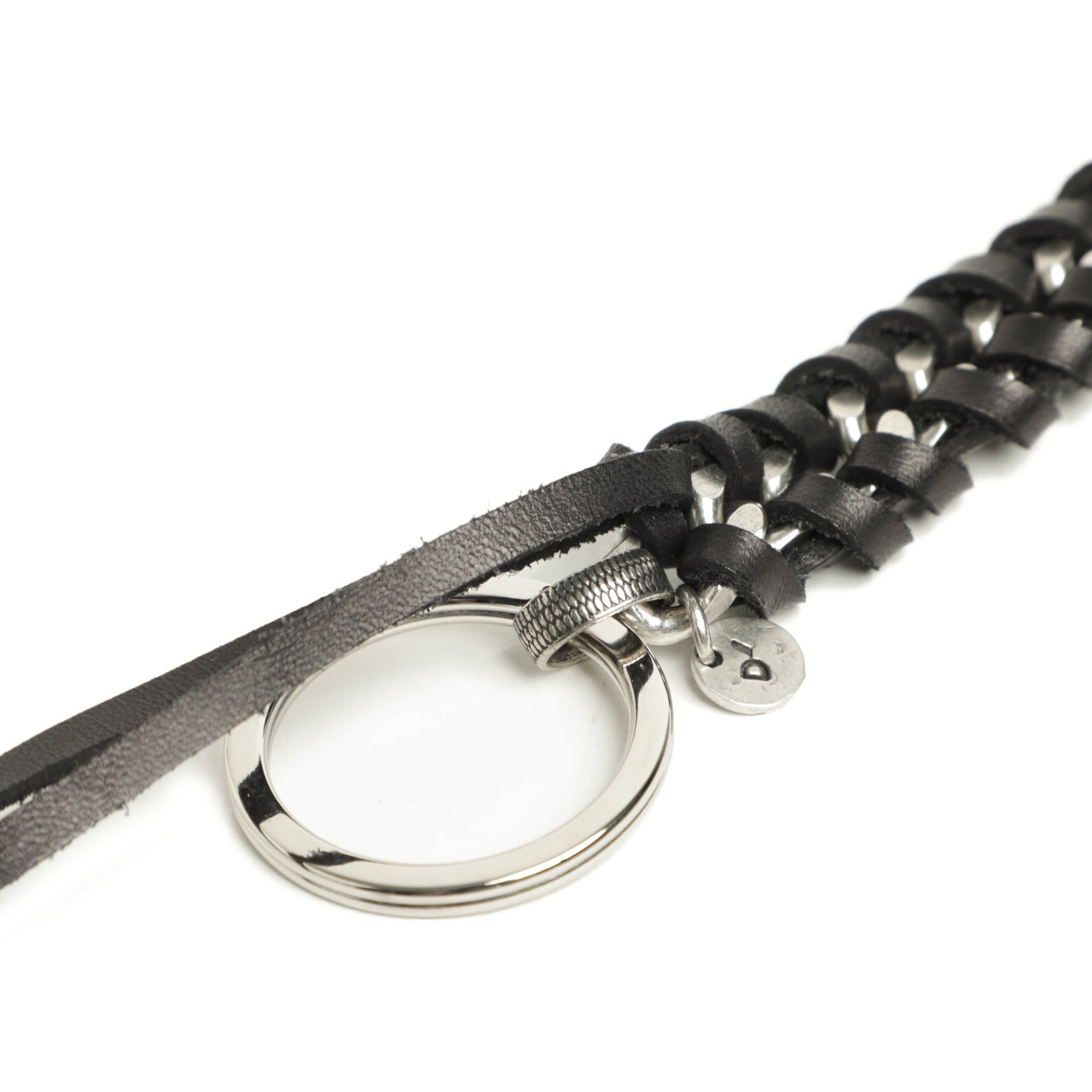 フック部分、チェーンとフック、キーリングを繋ぐ部分のパーツに施されたデザインなど細かなところまでぬかりなく仕上げられ、D’AMICOらしい武骨さとエレガントさを共存させた逸品となっております。