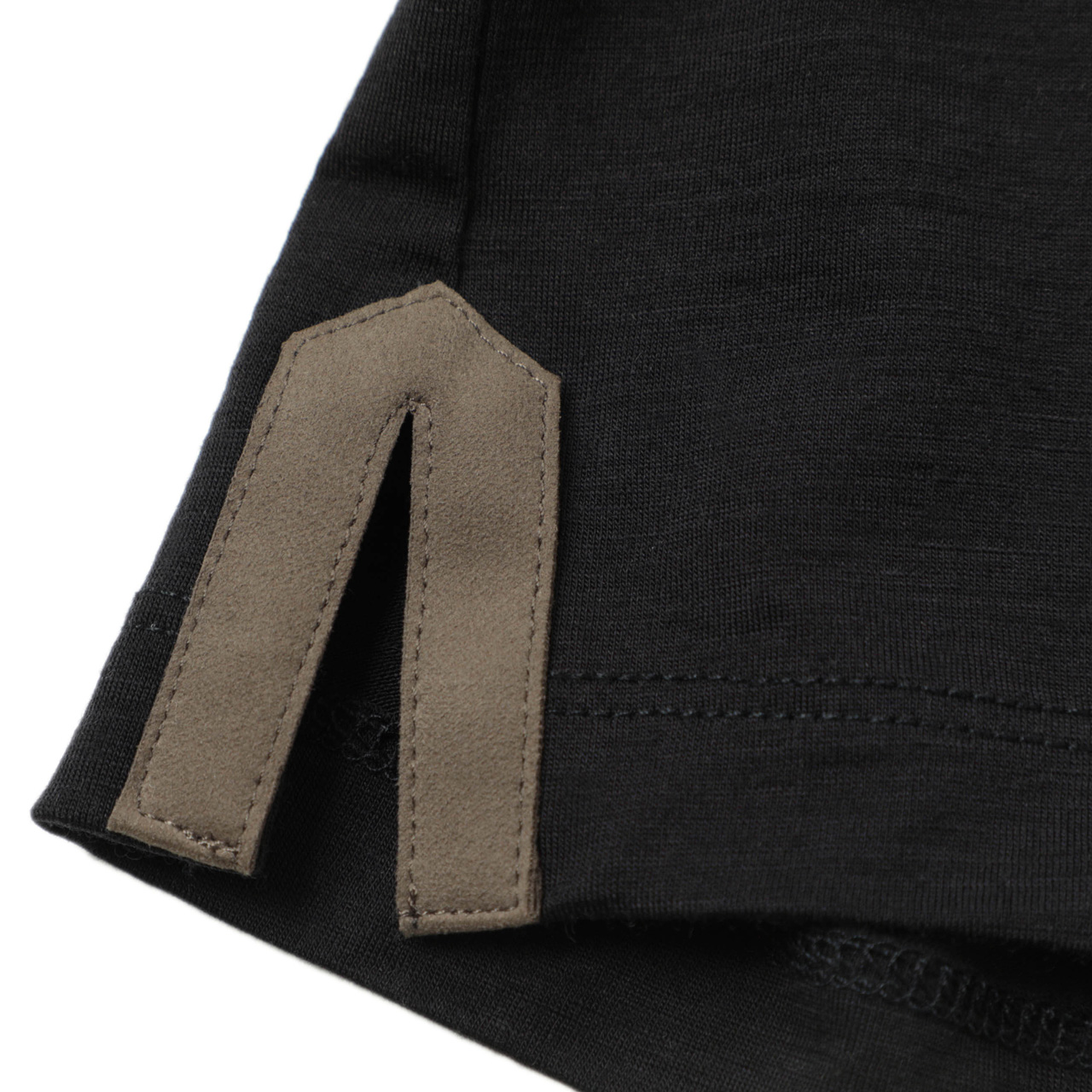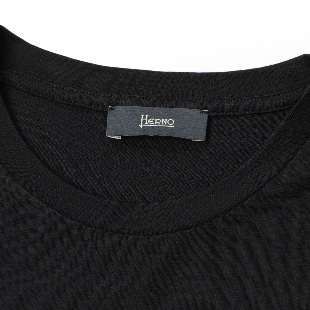 シンプルなデザインですので一枚で着るのは勿論、この快適・上品な着心地、見ためを活かしてジャケットやレザー、ライトアウターのインナーにもOK。裾スリット部分のトリミング、背面のHERNOのロゴプレートが後ろ姿にワンポイント加えてくれます。