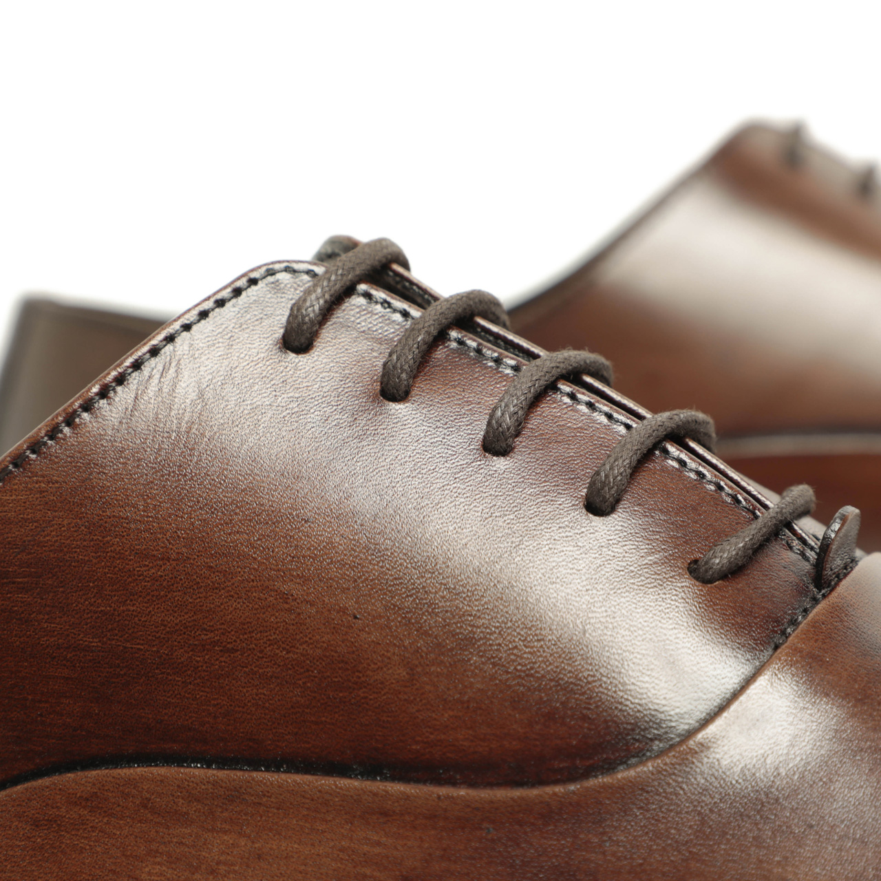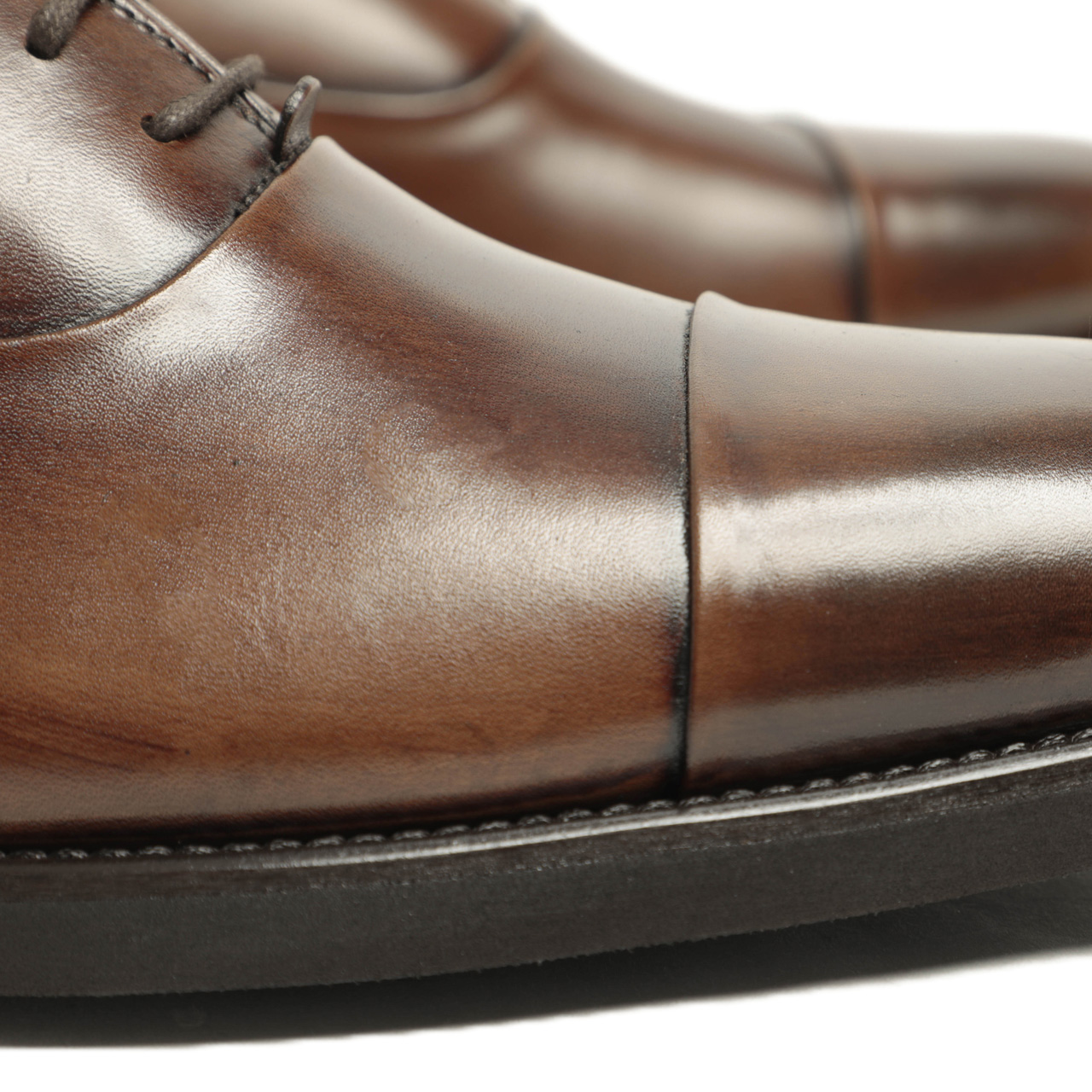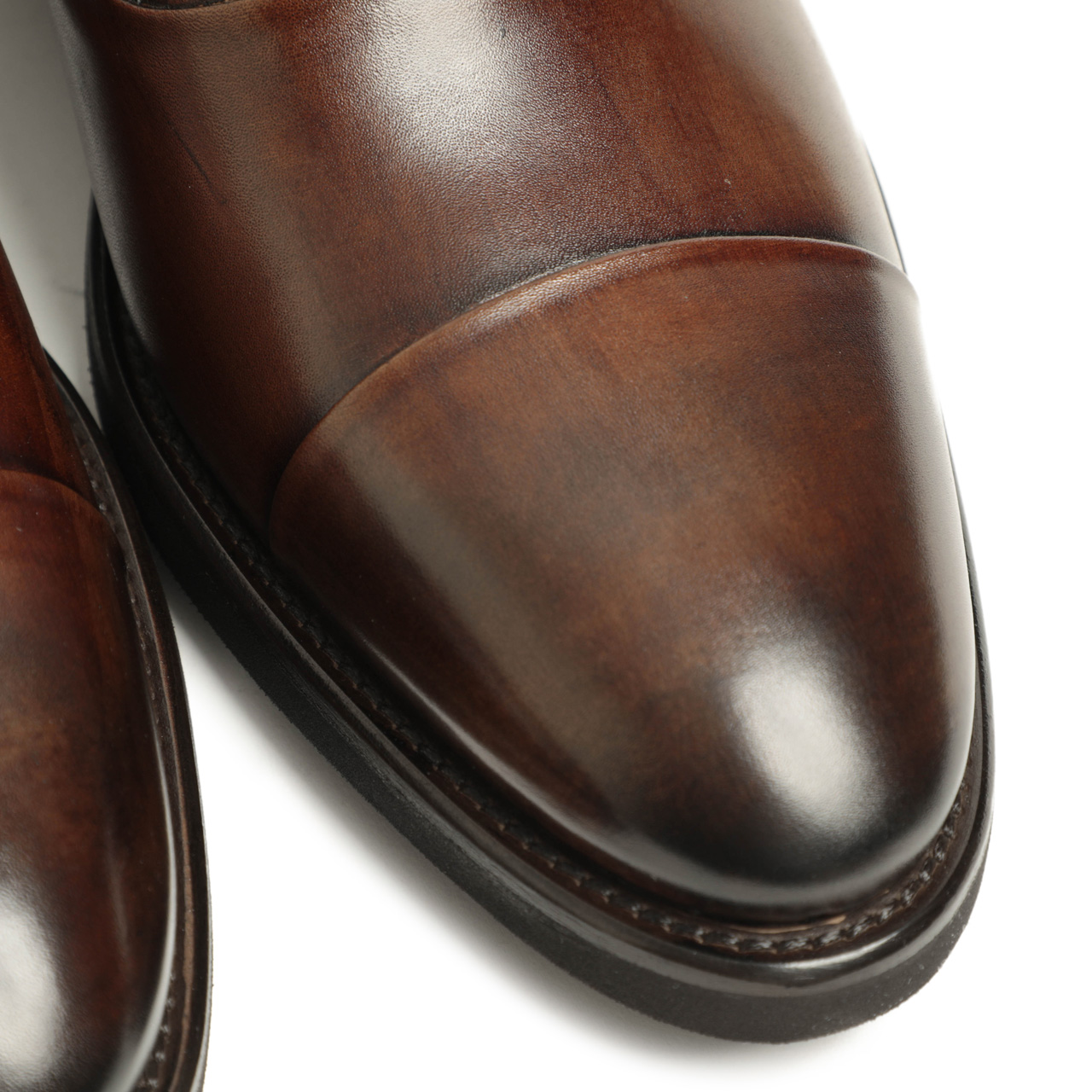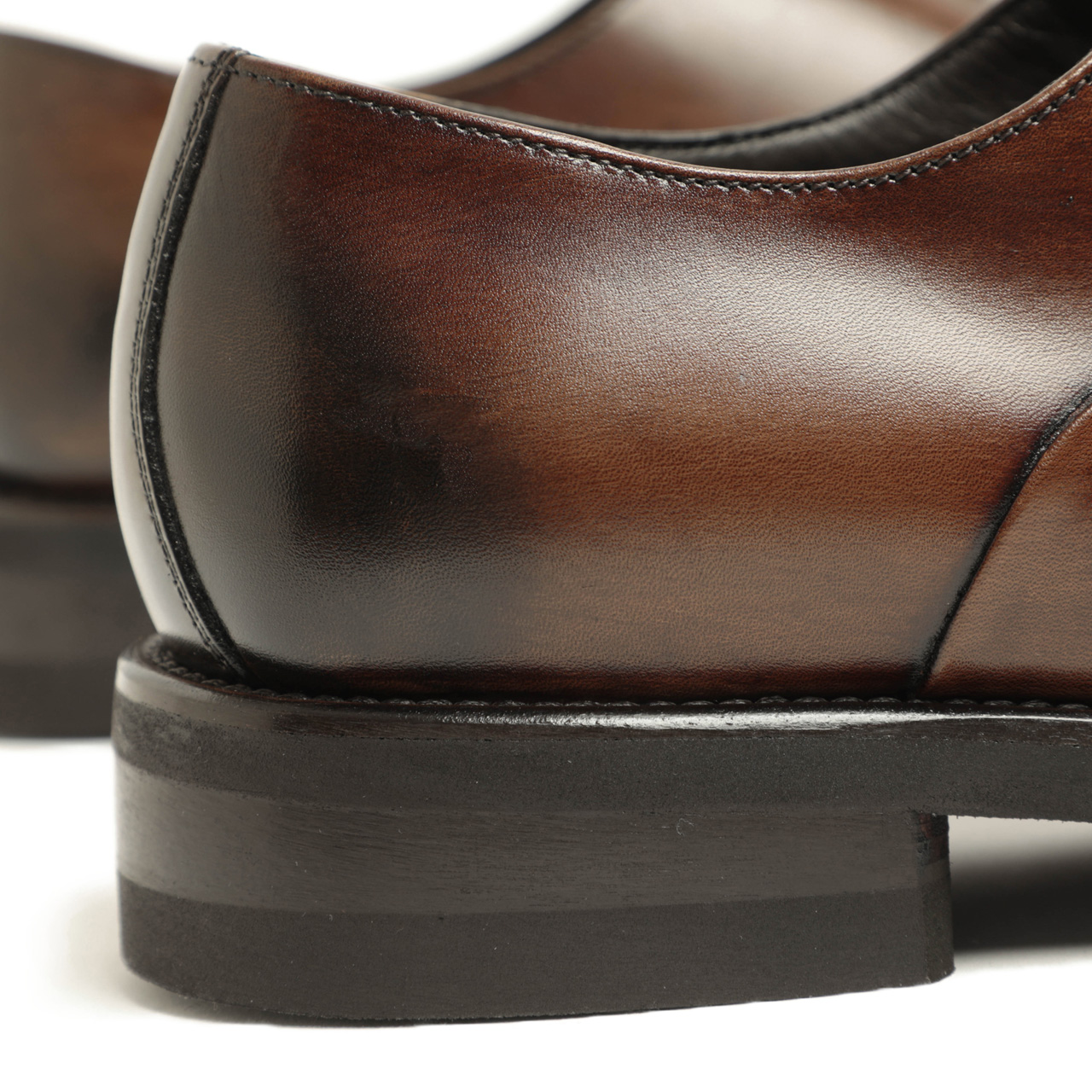 アッパーには張りがありつつもすぐに馴染んでくれるソフトさを持っているレザーを使用。ライトブラウンのカラーは職人が手作業でカラーリングを施し、トゥとヒールにアンティーク仕上げを施しました。
