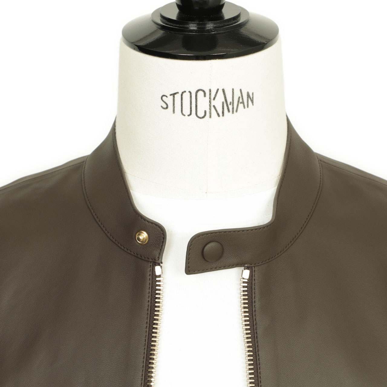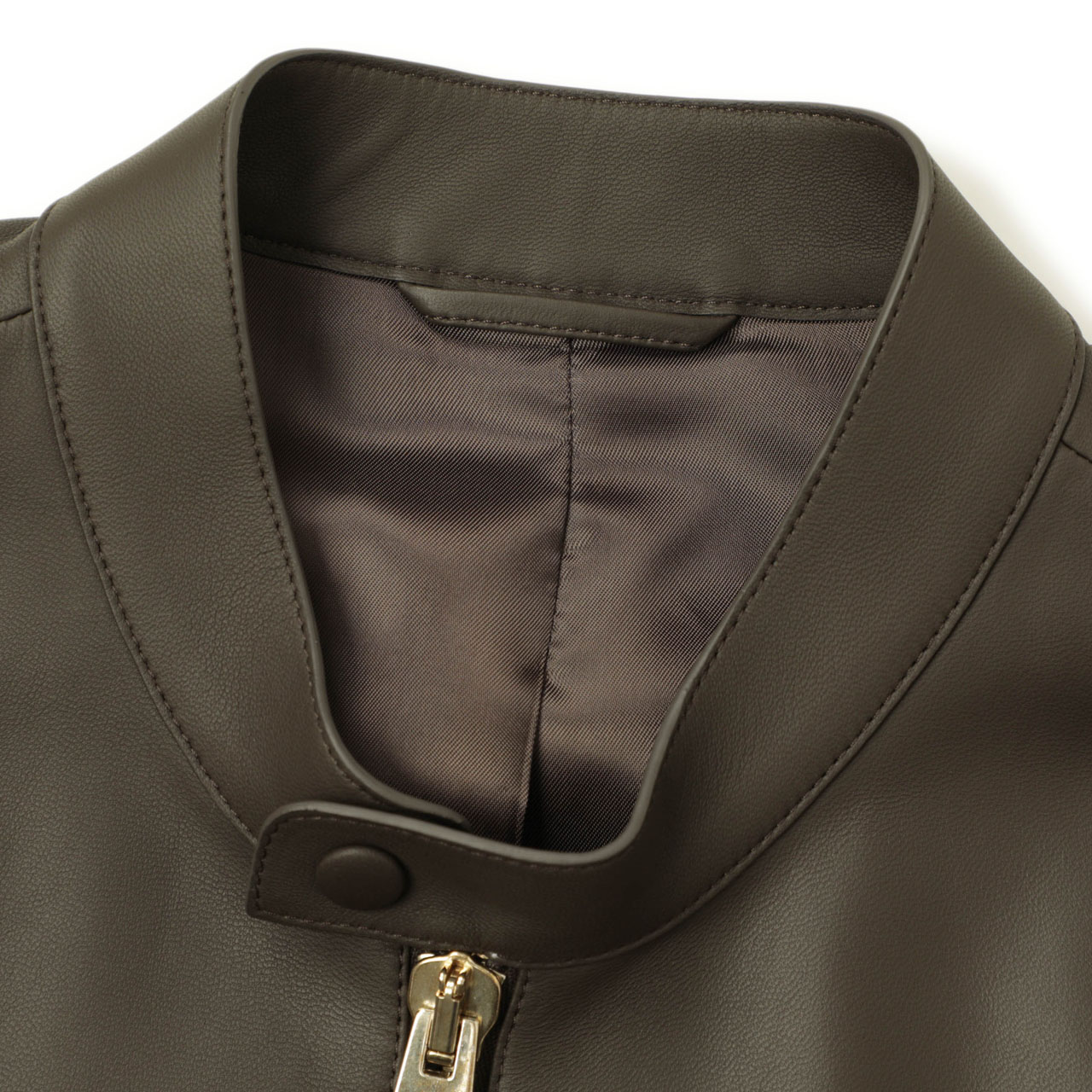 カットソー、ニット、襟付きのシャツ、モードテイストな変形のアイテムなどなど、どんなアイテムが着ても対応できる懐の深さもあり、これまでのレザーにはなかったスタイリングを楽しめそうな一着です。
